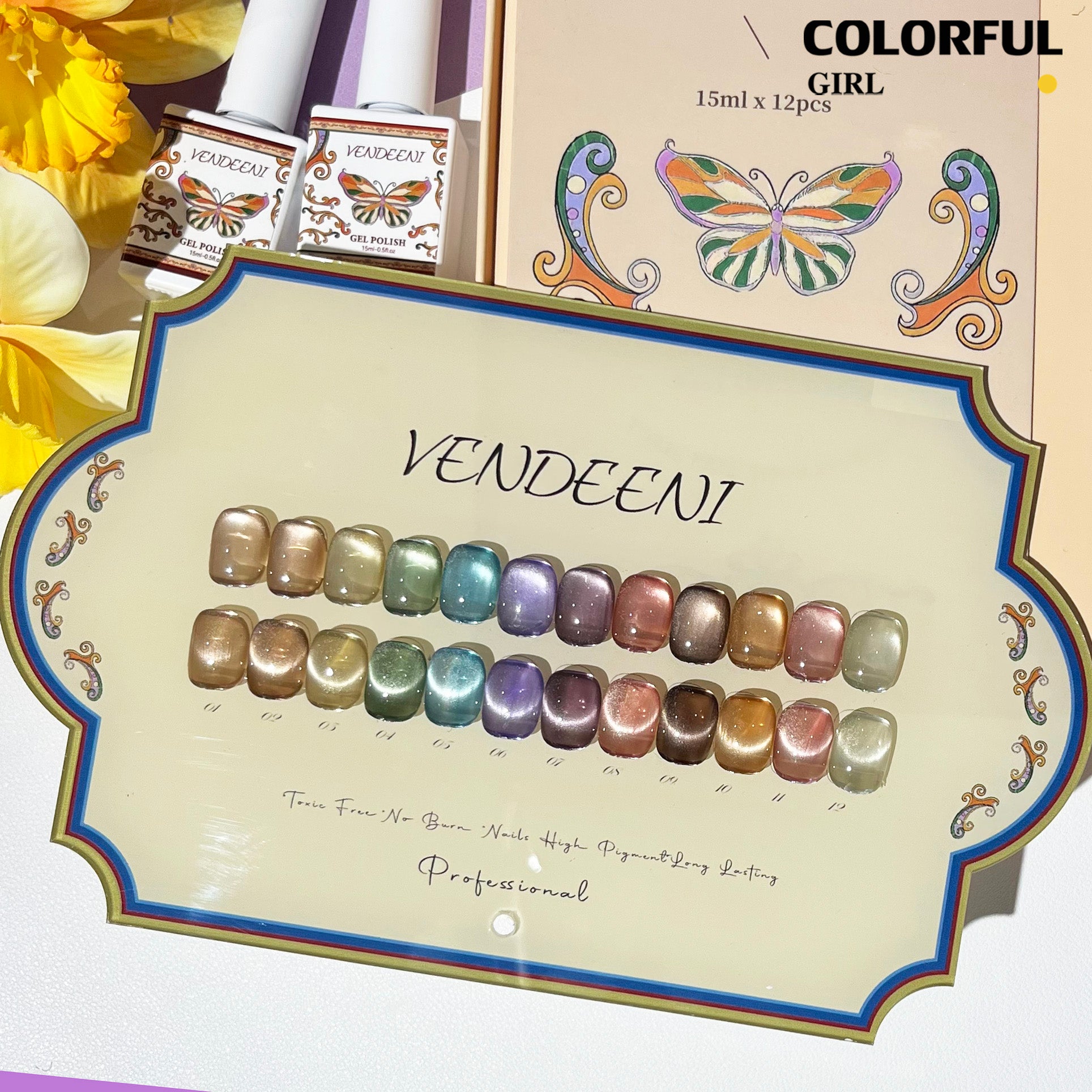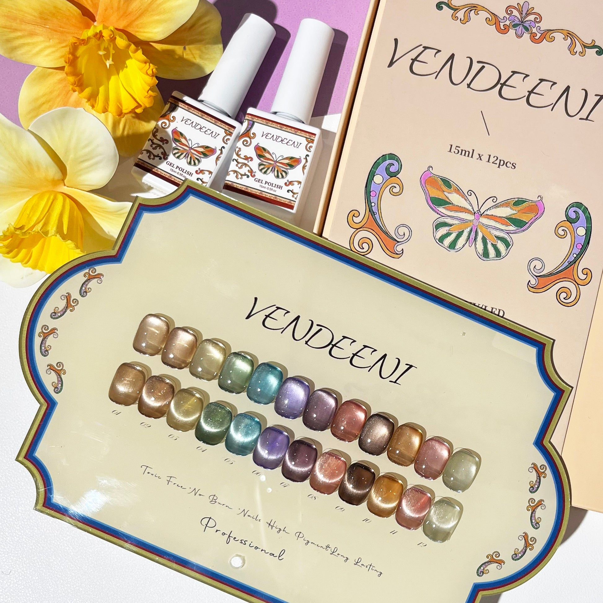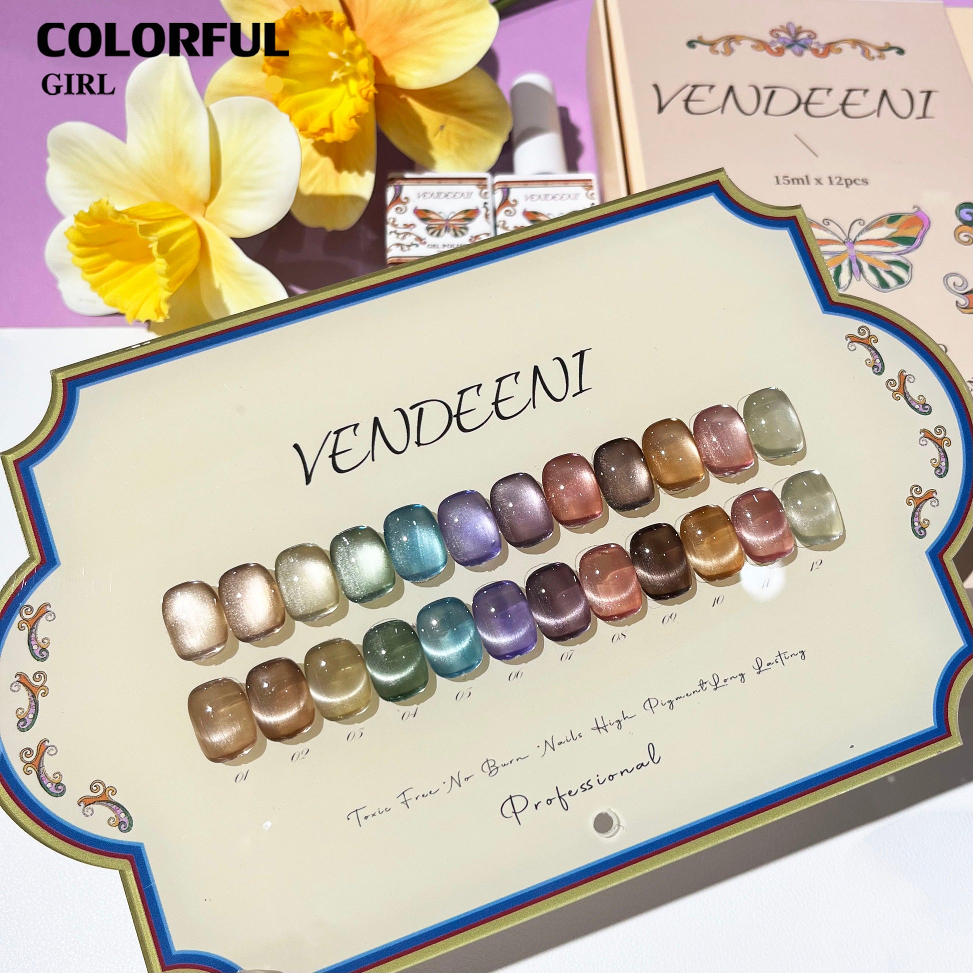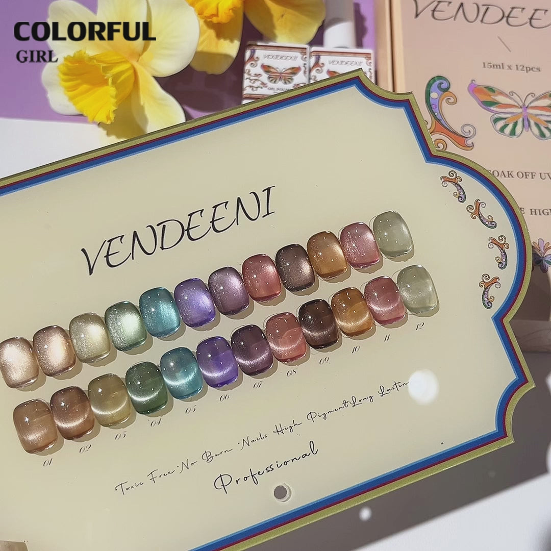 พร้อมส่งในไทยสีเจลแคทอายเนื้อซาติน สีเจลทาเล็บแคทอาย《 VENDEENI 》12สี สีลูกแก้วแคทอาย สีลูกแก้ว ส่งไว! แถม ชาร์ทสี✨