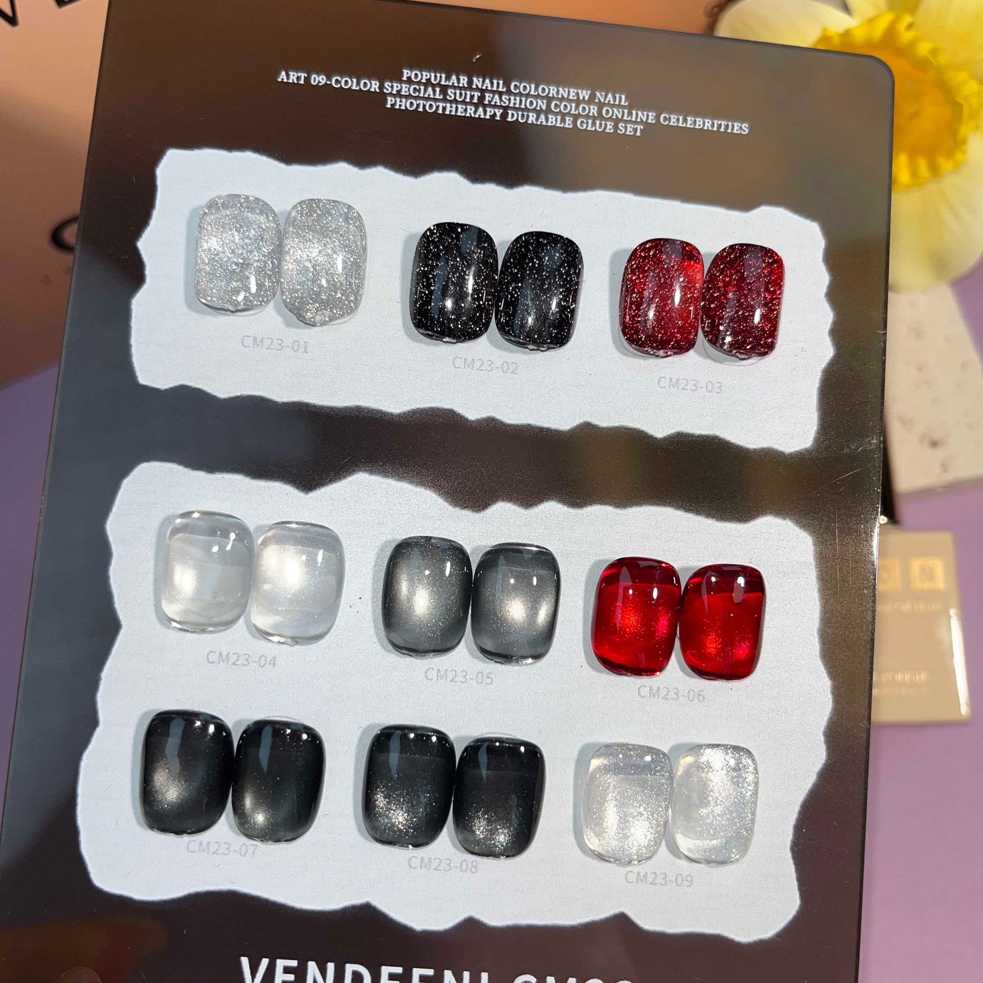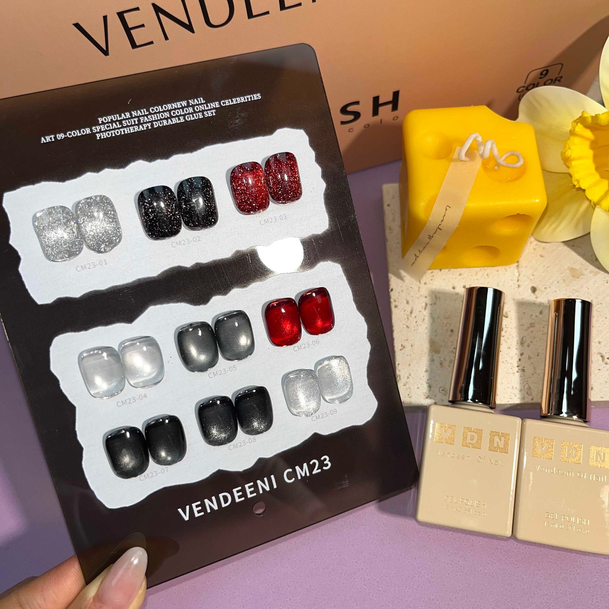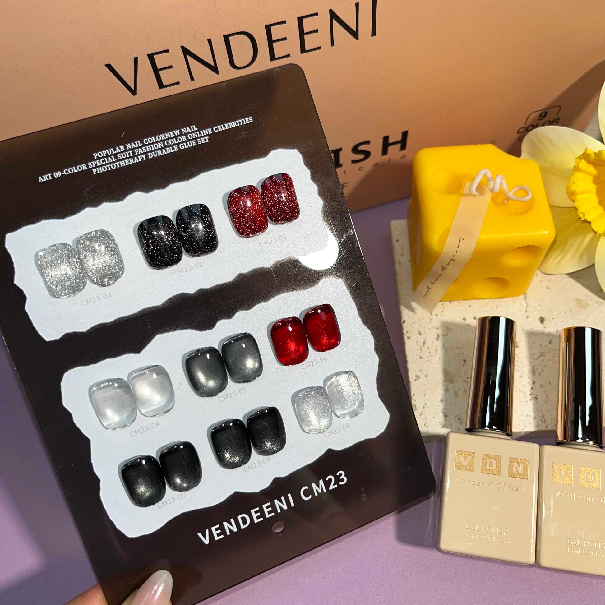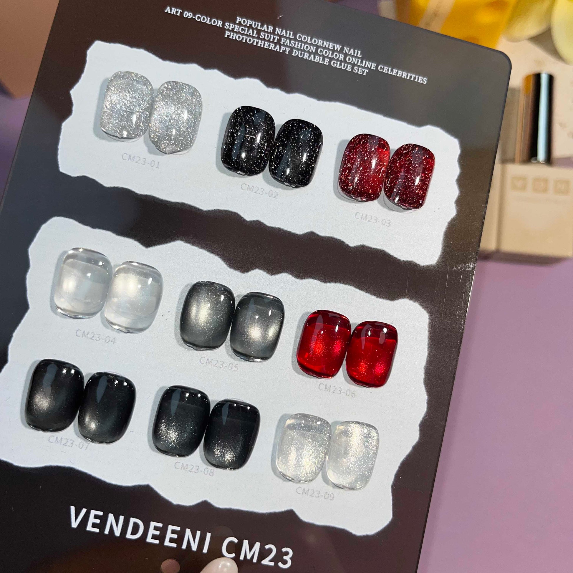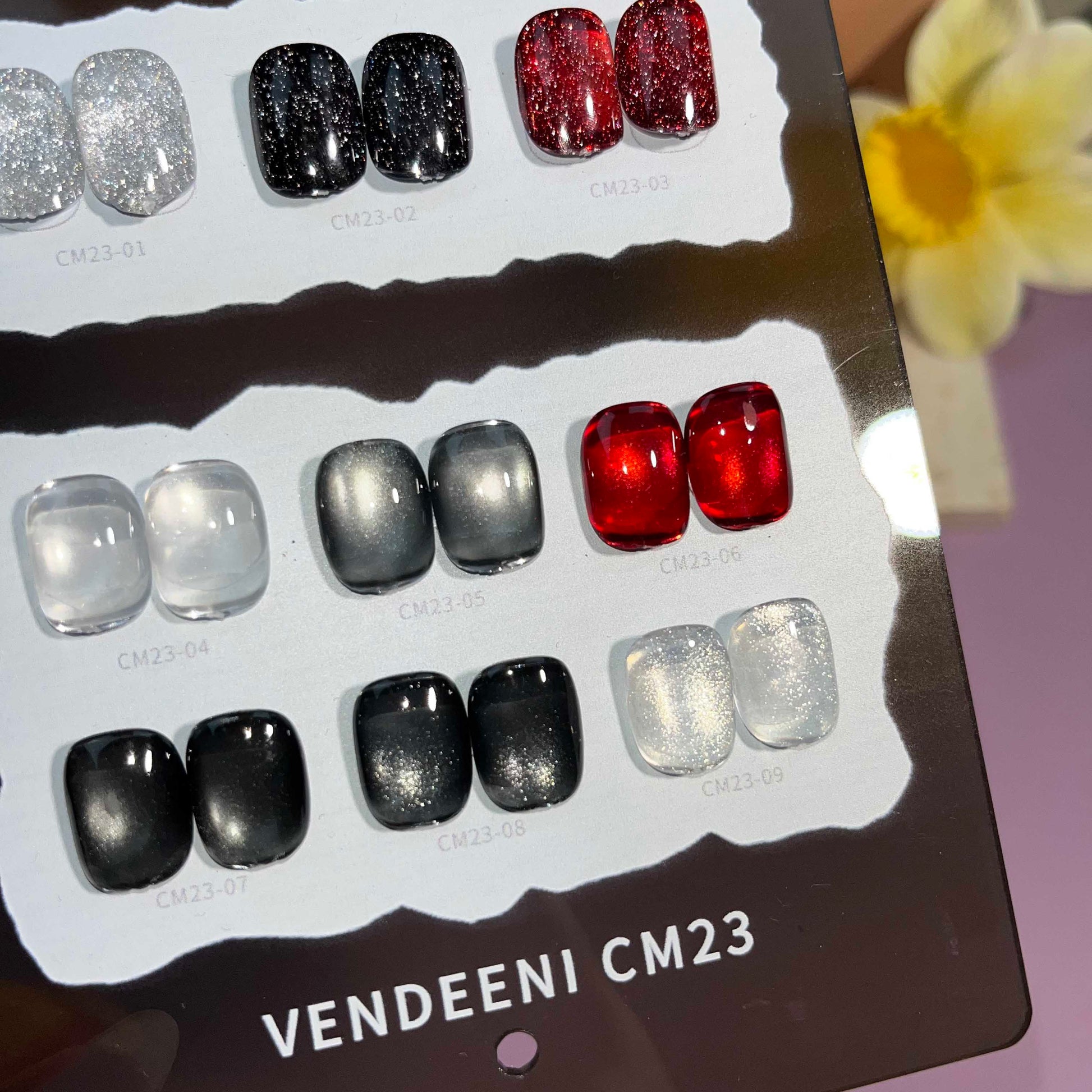 พร้อมส่งในไทย สีลูกแก้ว ฟรีชาร์ทสี Cat eye +สีเจลแฟลช《 VENDEENI CM-23》9สี สีลูกแก้วแคทอาย สีลูกแก้ว ส่งไว! พร้อมชาร์ทสีค่ะสีแน่นสวยมากเลยนะคะ เอฟเฟกต์มันเงามาก