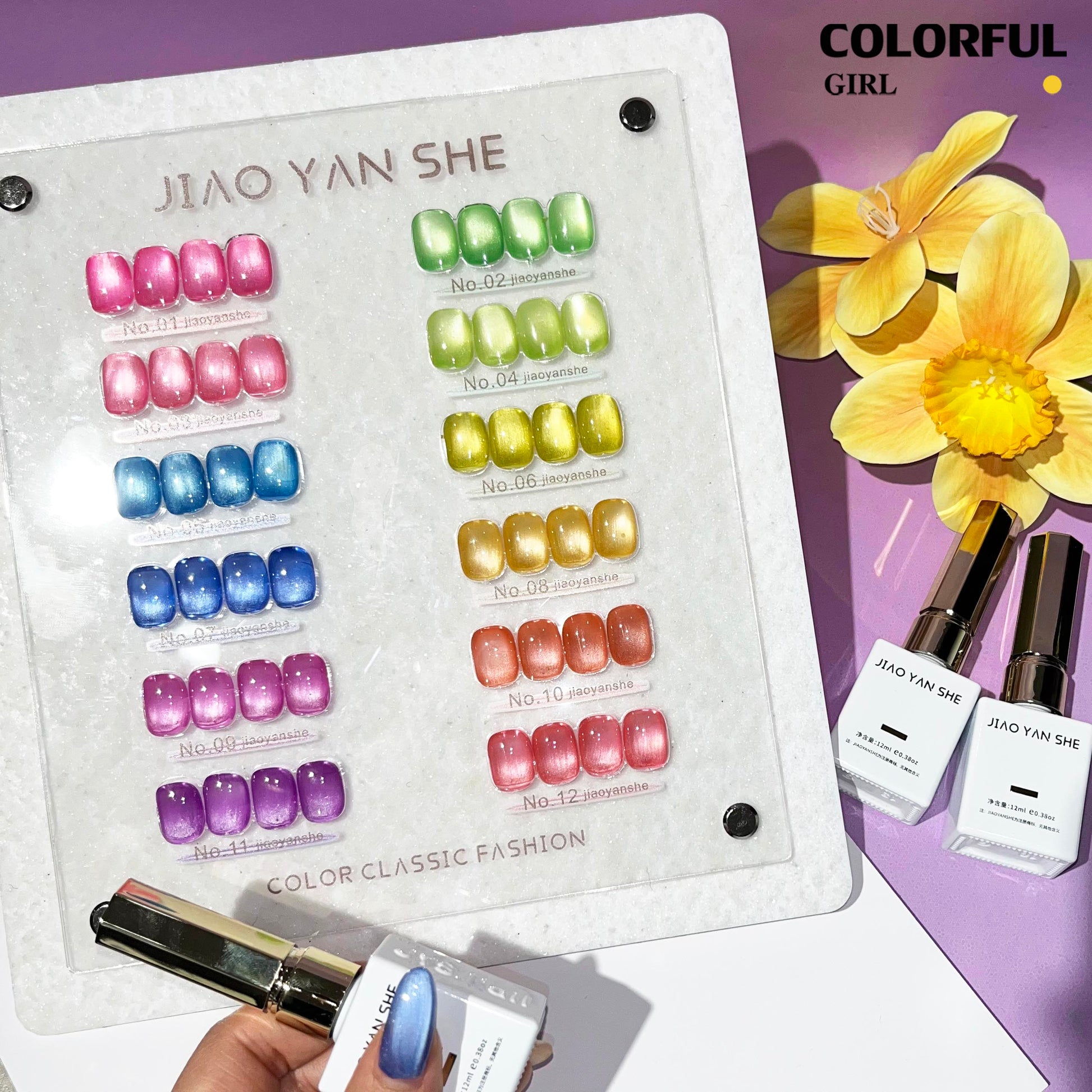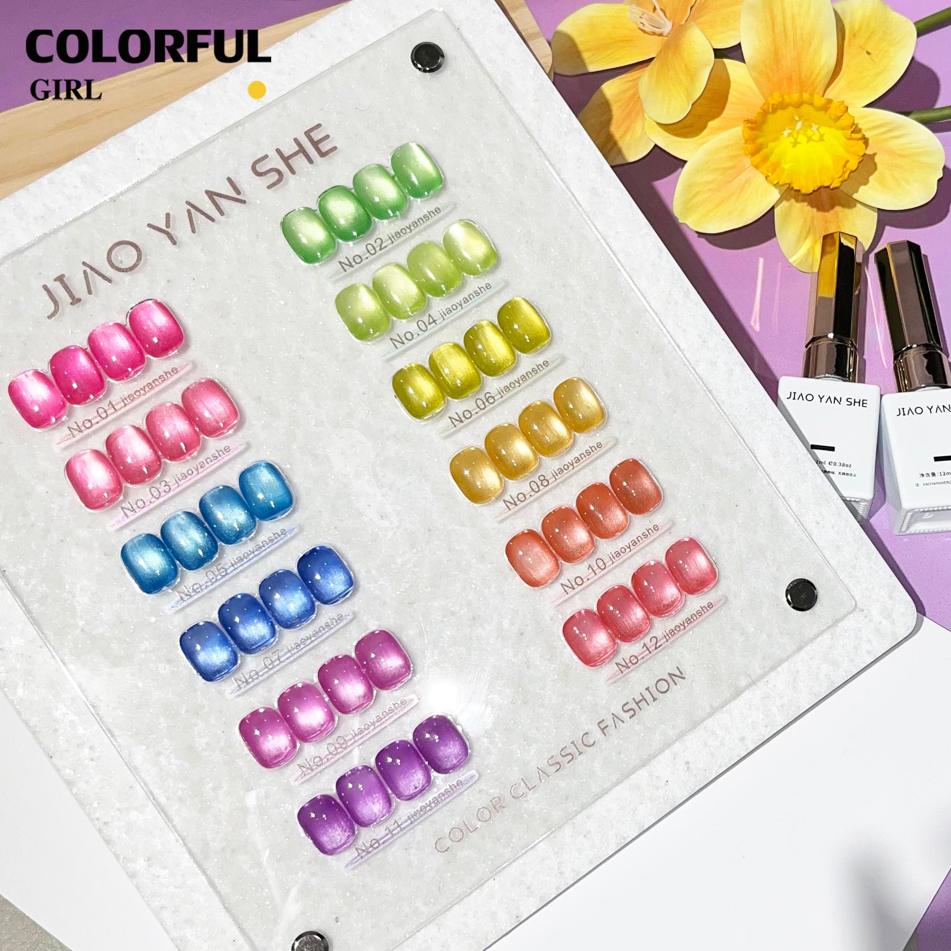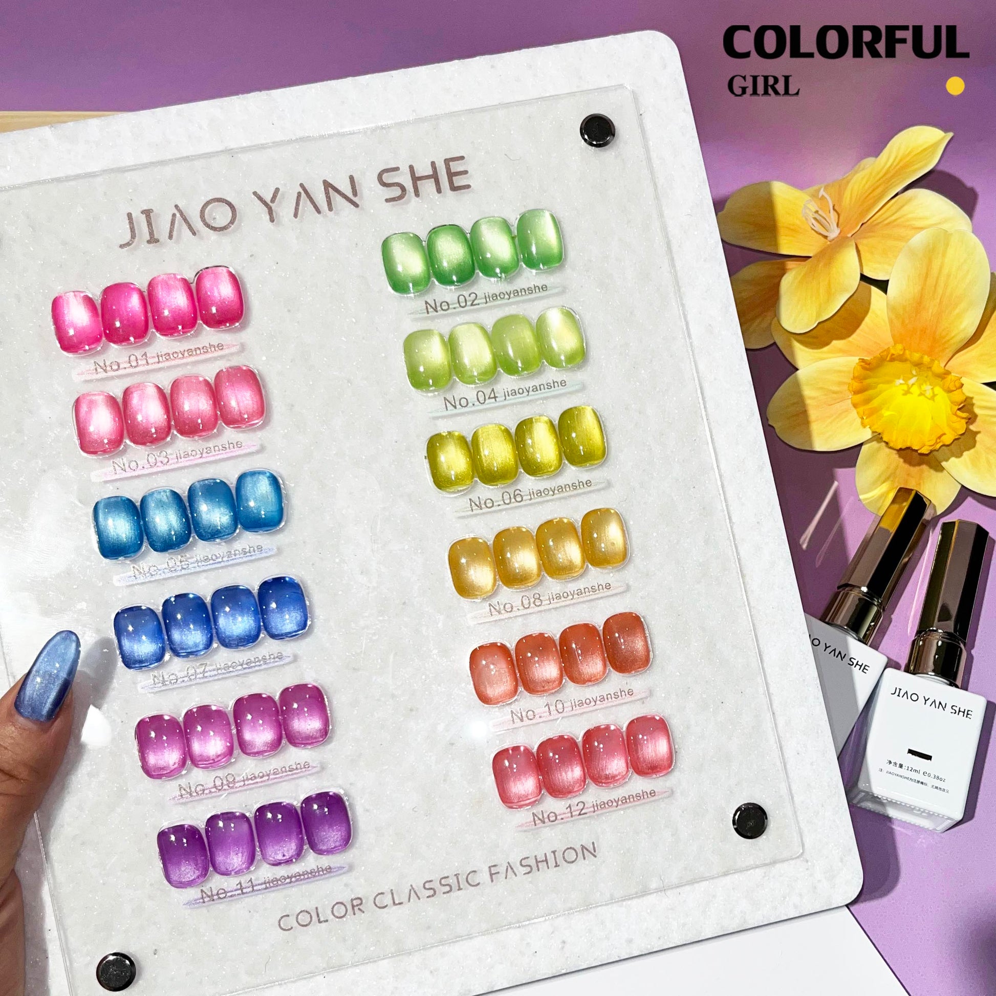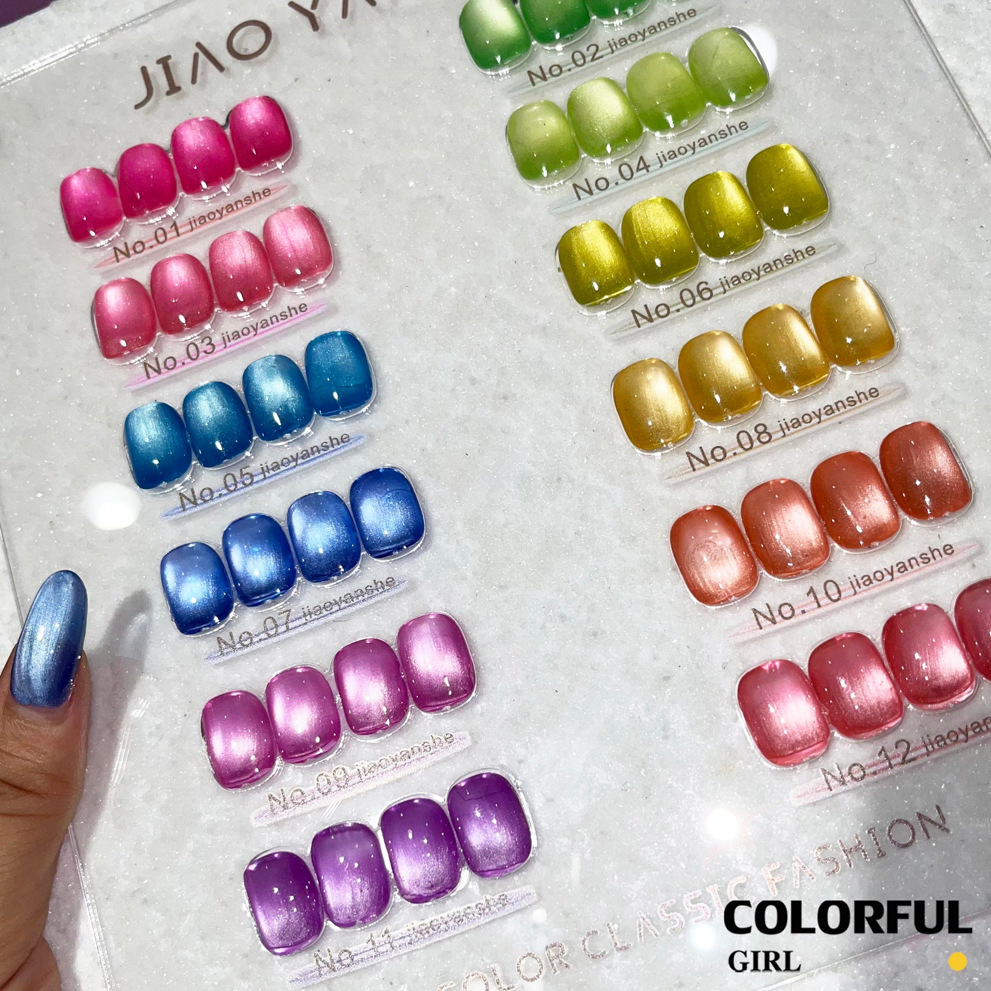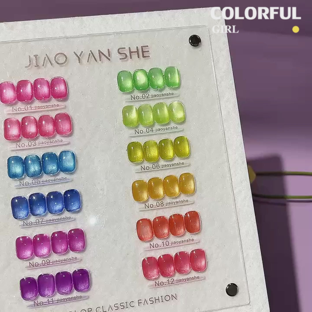 พร้อมส่งในไทย 《 JIAOYANSHE 》12 สี สีเจลแคทอายเนื้อซาติน สีเจลทาเล็บแคทอาย สีลูกแก้วแคทอาย สีลูกแก้ว ส่งไว!