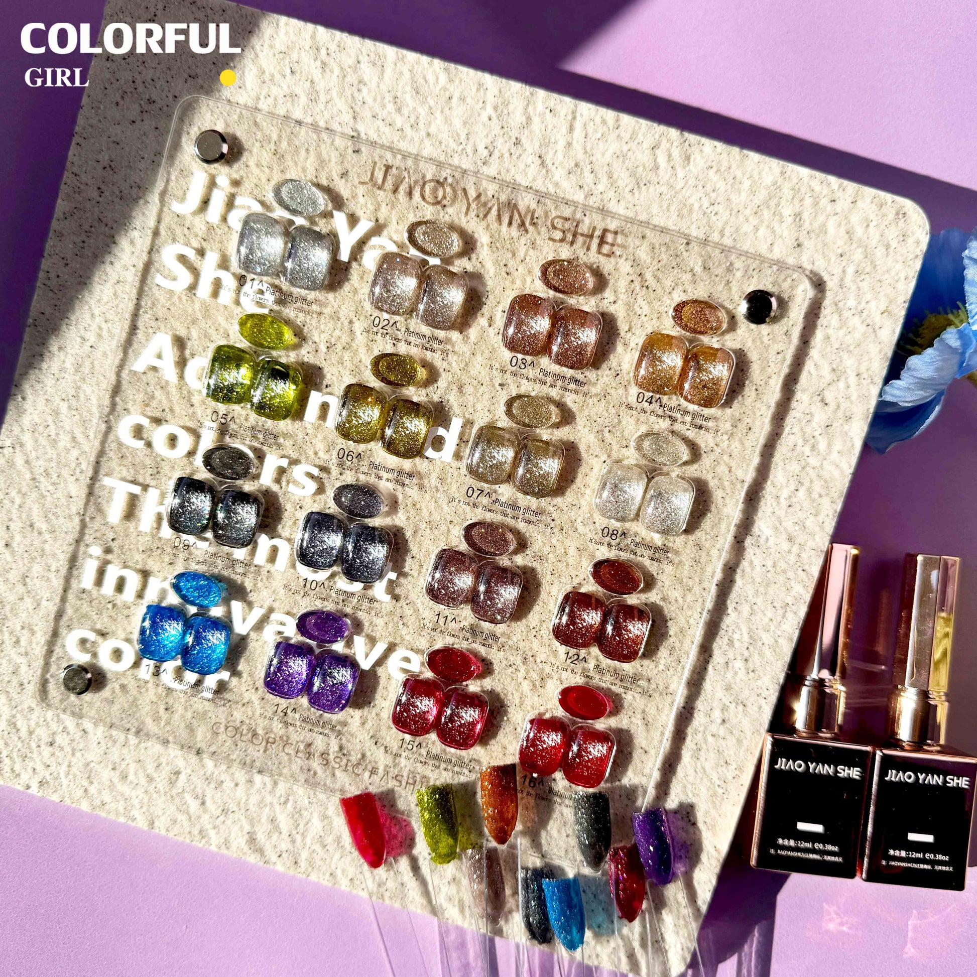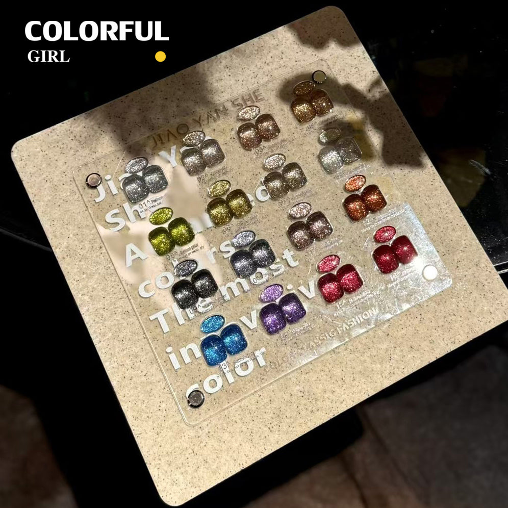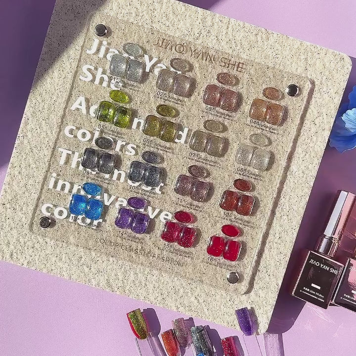 พร้อมส่งในไทย 《 JIAOYANSHE 》16สี สี พร้อมชาร์ทสีค่ะสีแน่นสวยมากเลยนะคะ สีเจลแฟลชกลิตเตอร์ แพลตติมันแฟลช+ประกายออโรร่า กากเพชรชัด แน่น