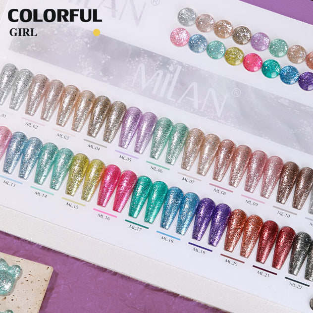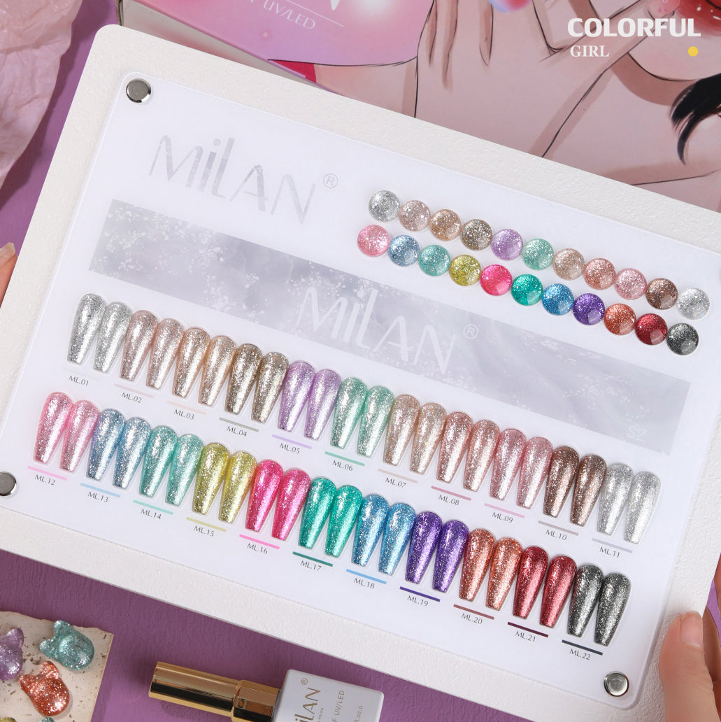 พร้อมส่งในไทย 《 milan 》22สี สี พร้อมชาร์ทสีค่ะสีแน่นสวยมากเลยนะคะ สีเจลแฟลชกลิตเตอร์ แพลตติมันแฟลช+ประกายออโรร่า กากเพชรชัด แน่น