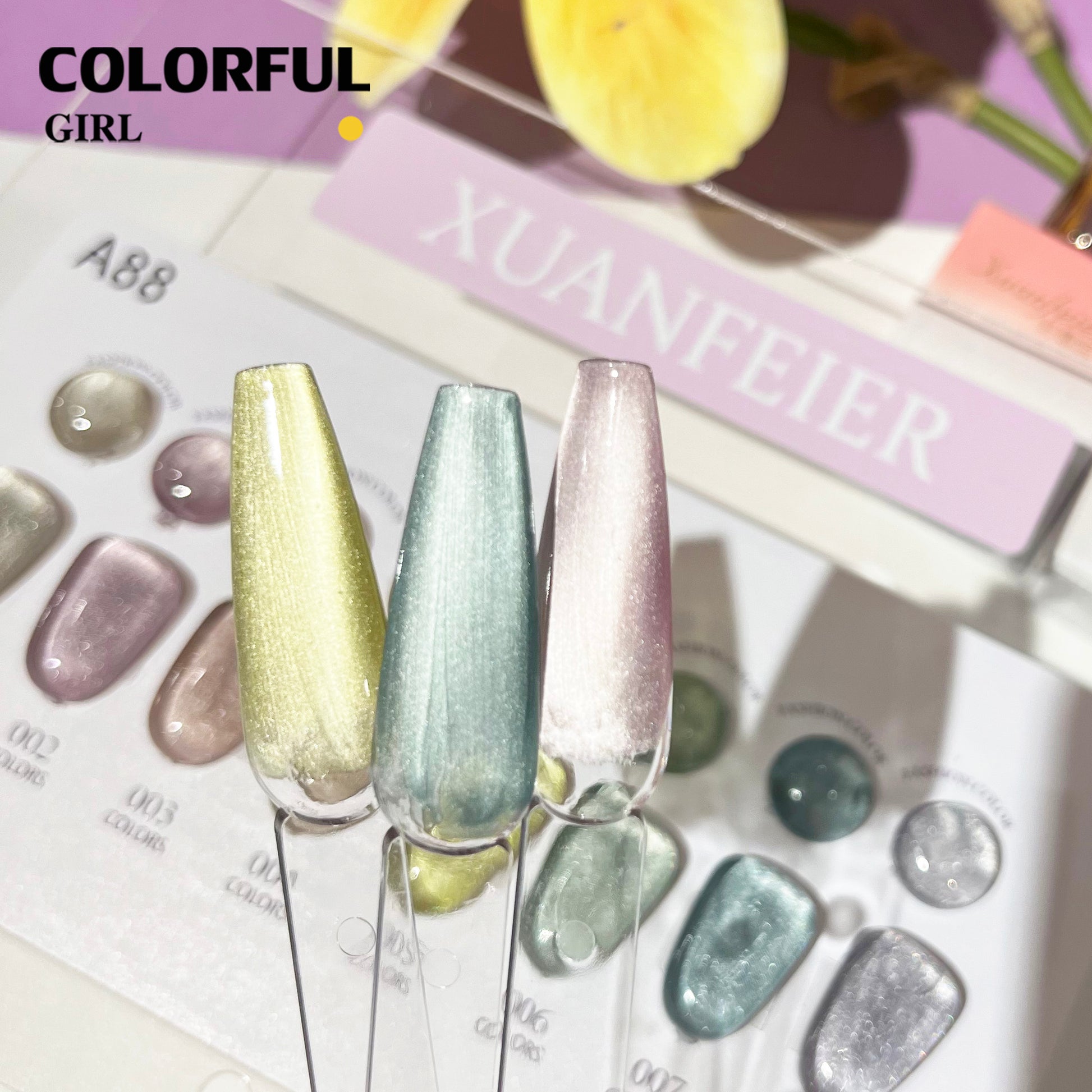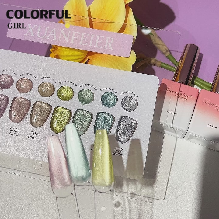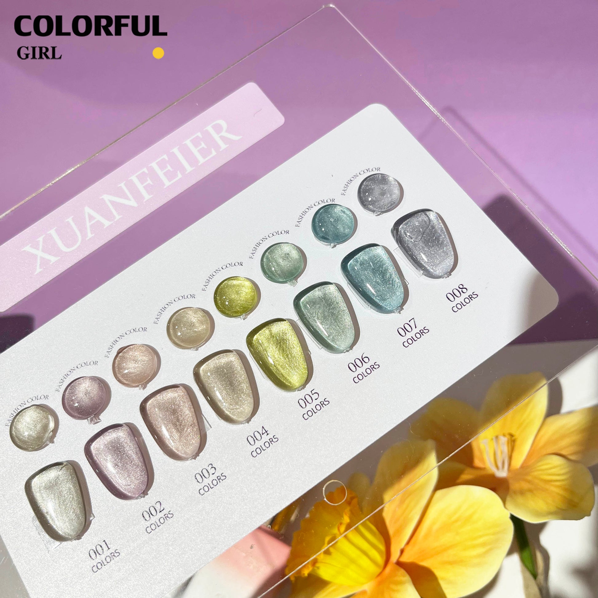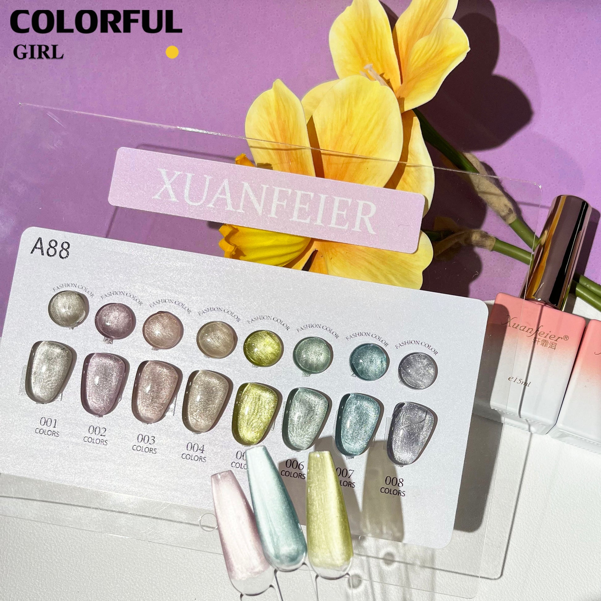 พร้อมส่งในไทย 《 XUANFEIER 》8 สี สีเจลแคทอายเนื้อซาติน สีเจลทาเล็บแคทอาย สีลูกแก้วแคทอาย สีลูกแก้ว ส่งไว!แผนภูมิอะคริลิคพร้อมสต็อก