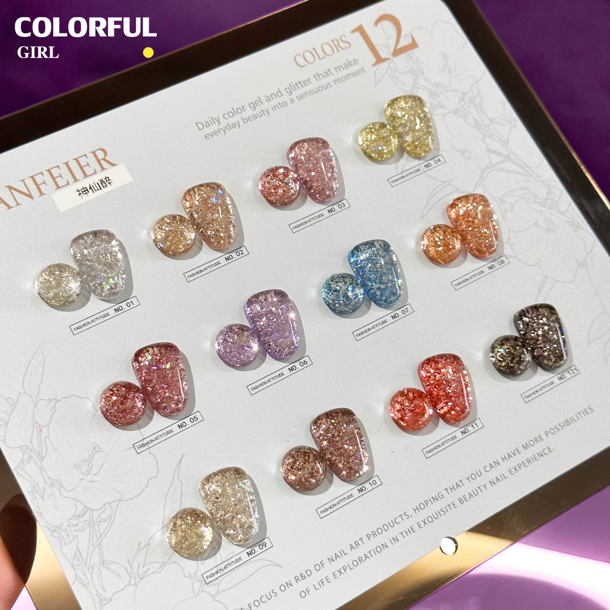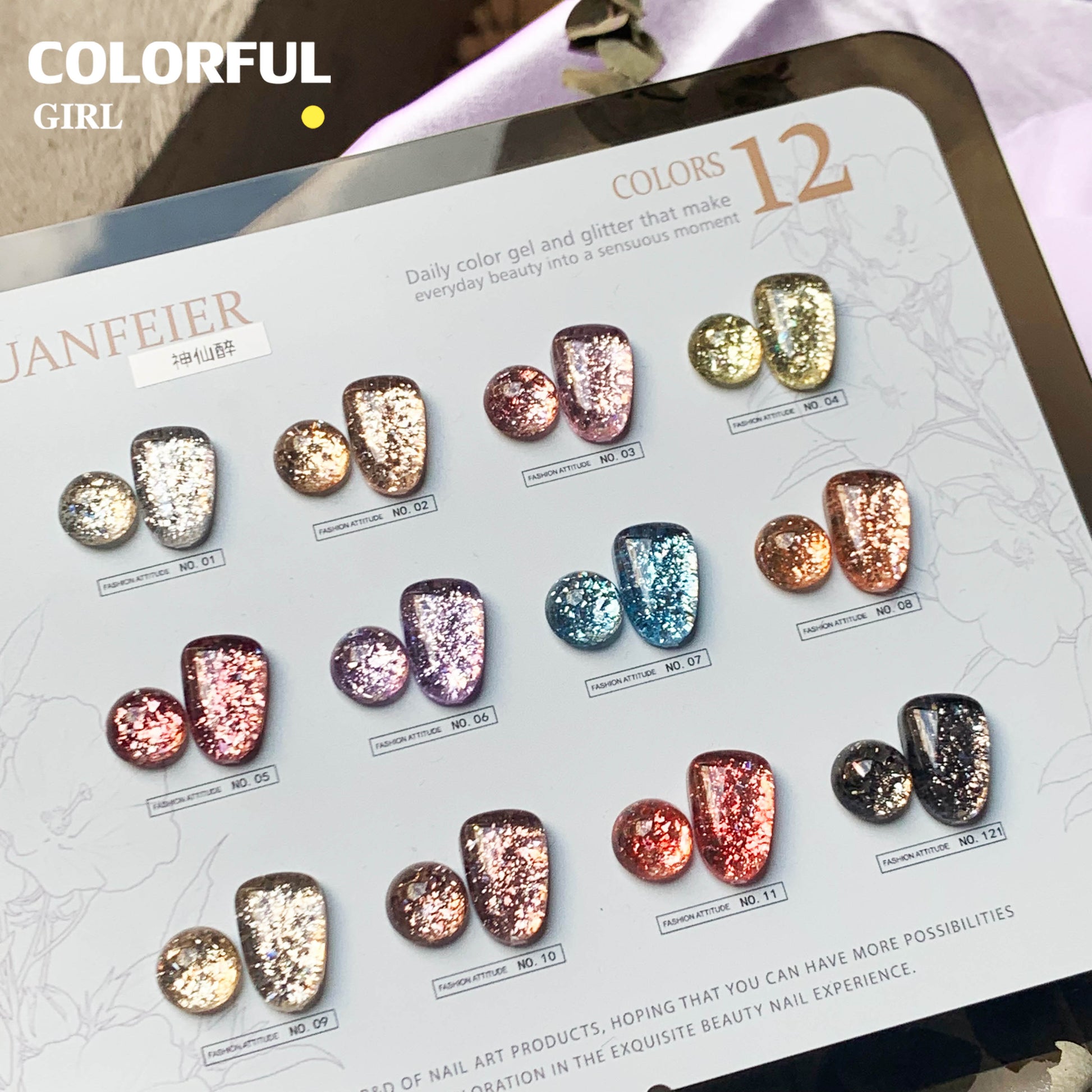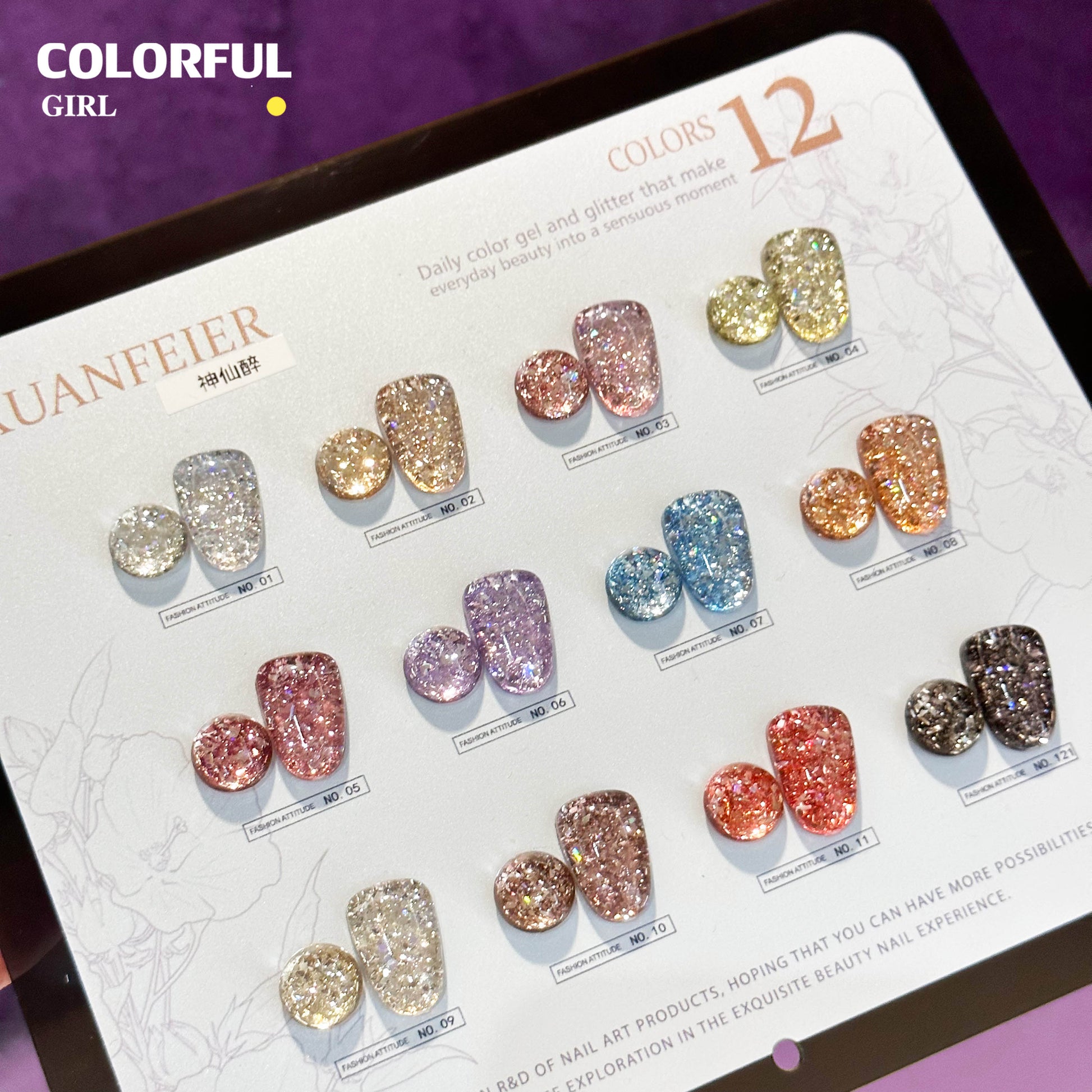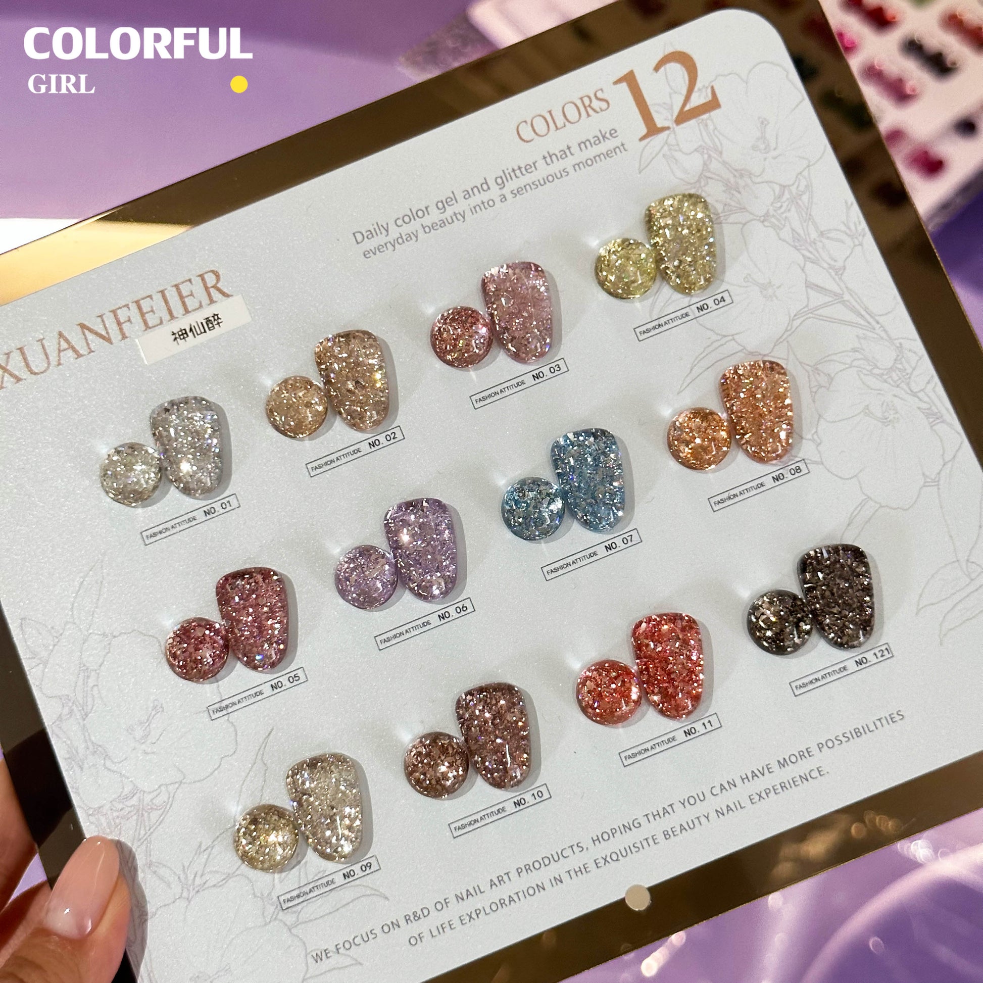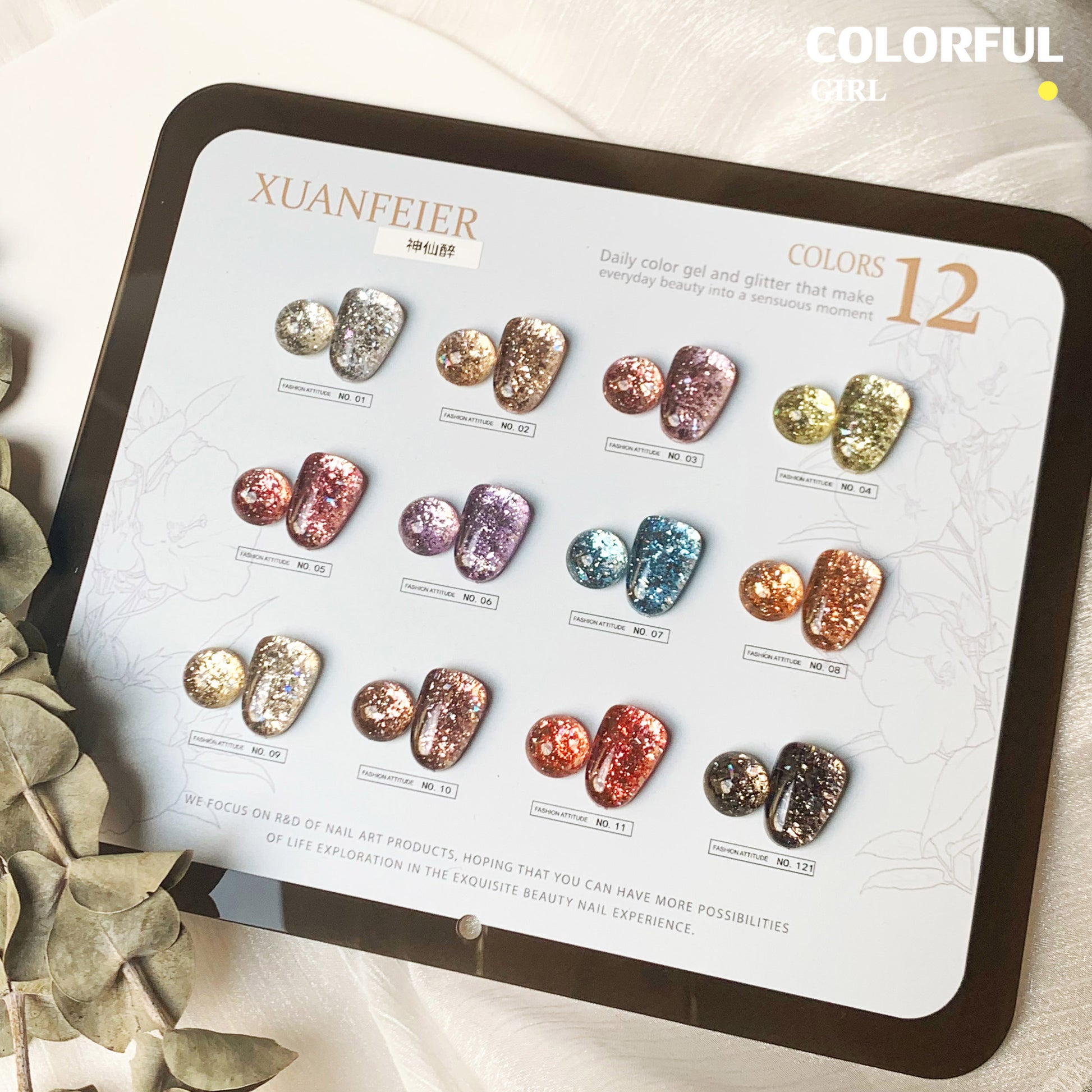 【พร้อมส่ง】สสีเจล XUANFEIER สีกากเพชร+เลเซอร์แฟลช 12 สี แถม ชาร์ทสี(XUANFEIER ) สีเจลแฟลช ฟรีชาร์ทสี