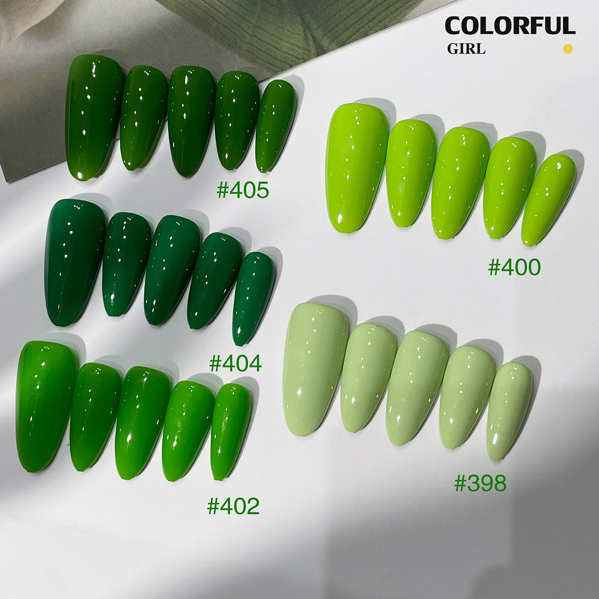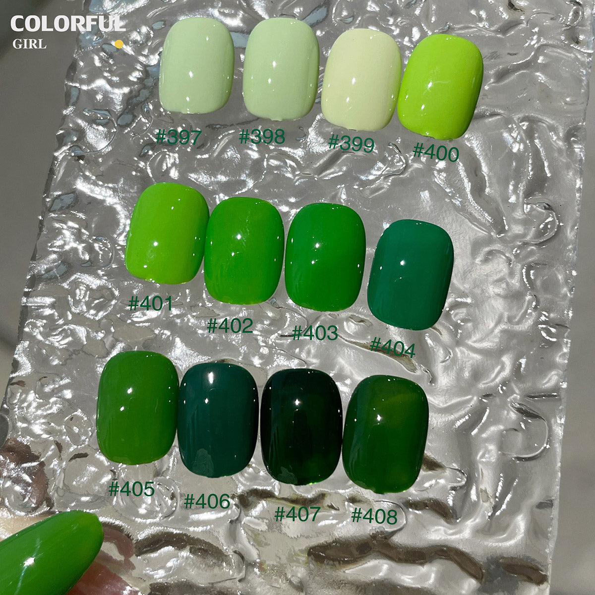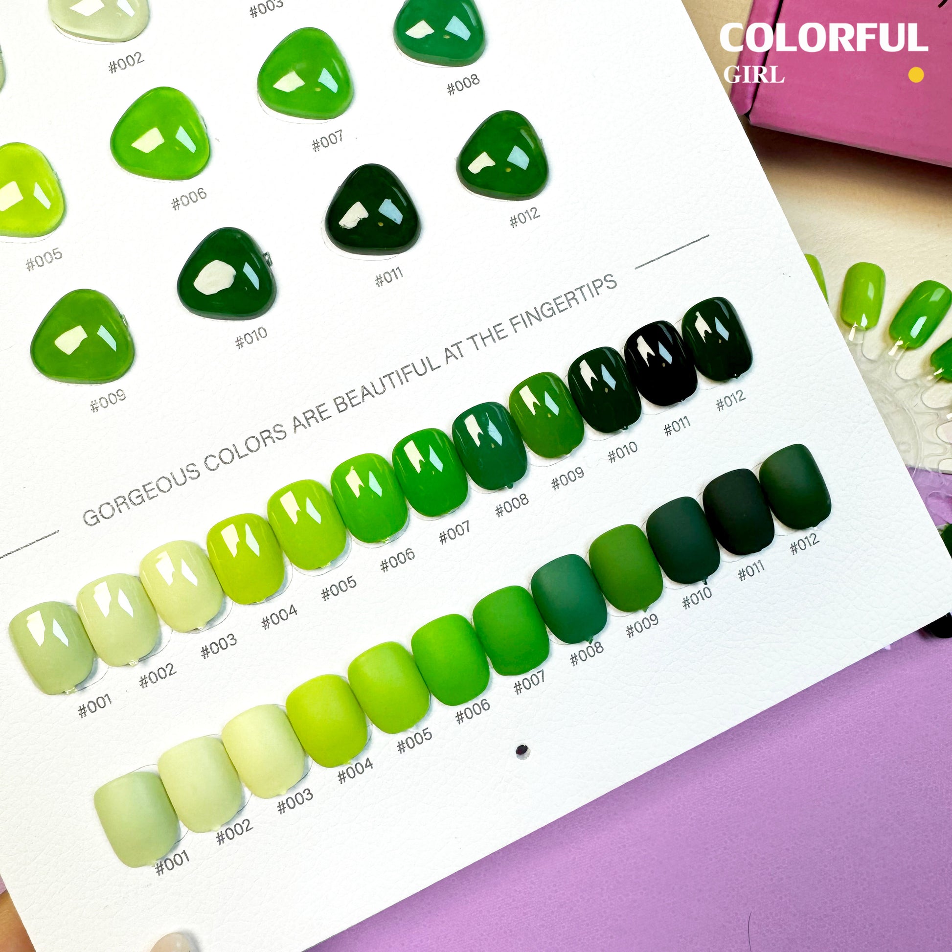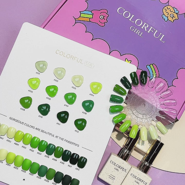 【พร้อมส่ง】 สีทาเล็บเจล Colorful girl สี( Colorful girl) สีเจล ชุดเจลสีเขียว 12สี ชุดเจลสีเขียว สีเจลสีพื้น+แถมชาทสีฟร