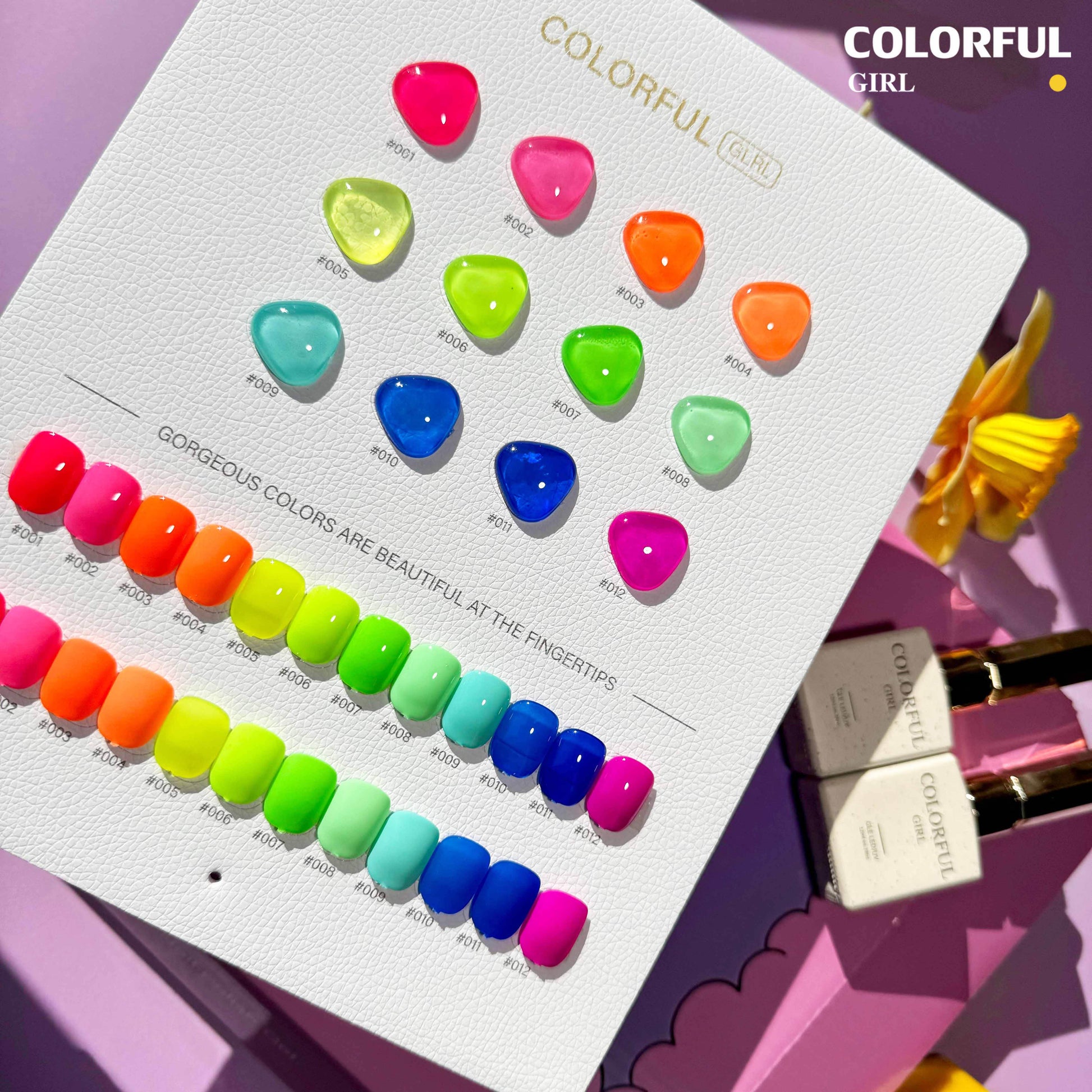 【พร้อมส่ง】 สีทาเล็บเจล Colorful girl สี( Colorful girl) สีเจล นีออน 12สี แถมชาทสีฟร +แถมชาทสีฟร