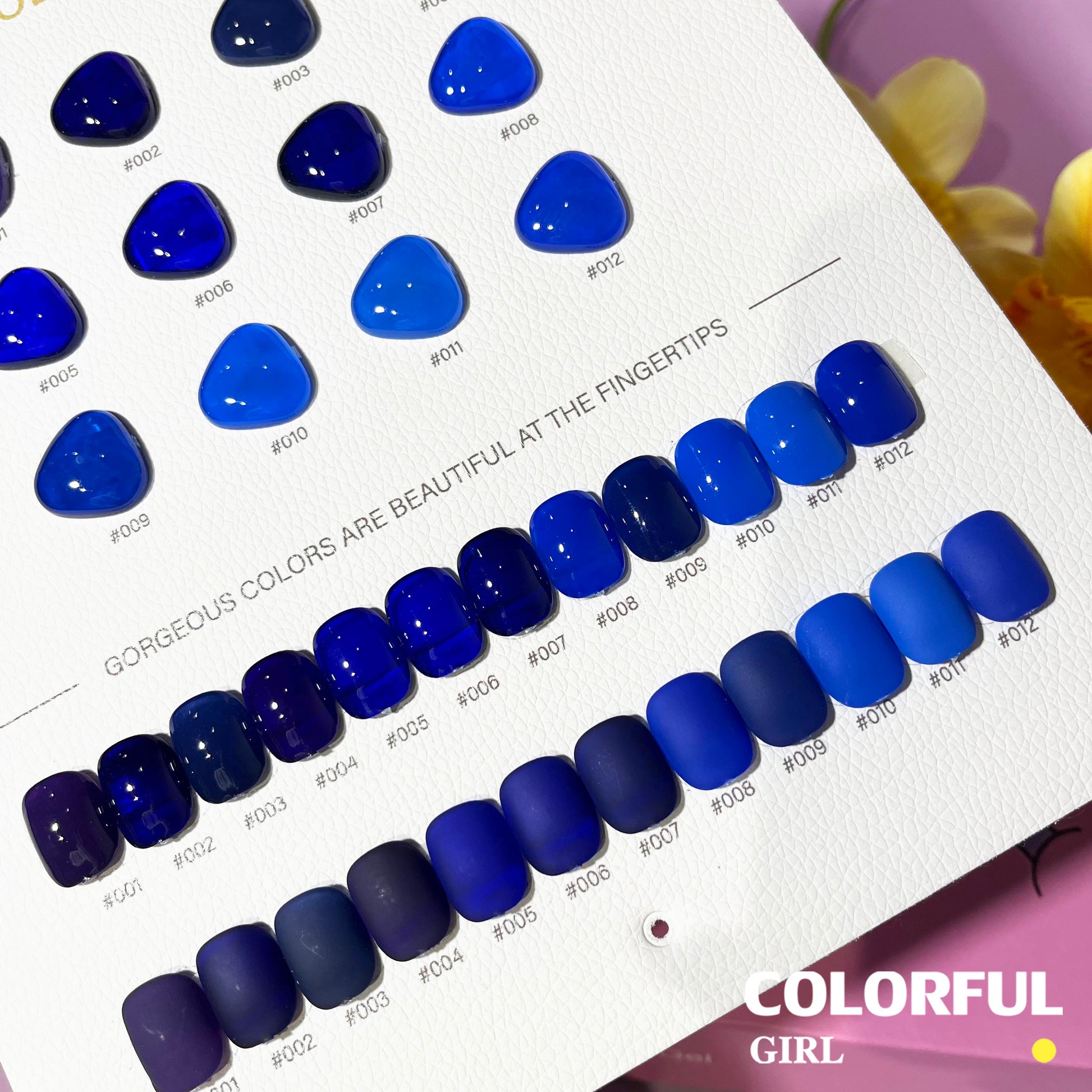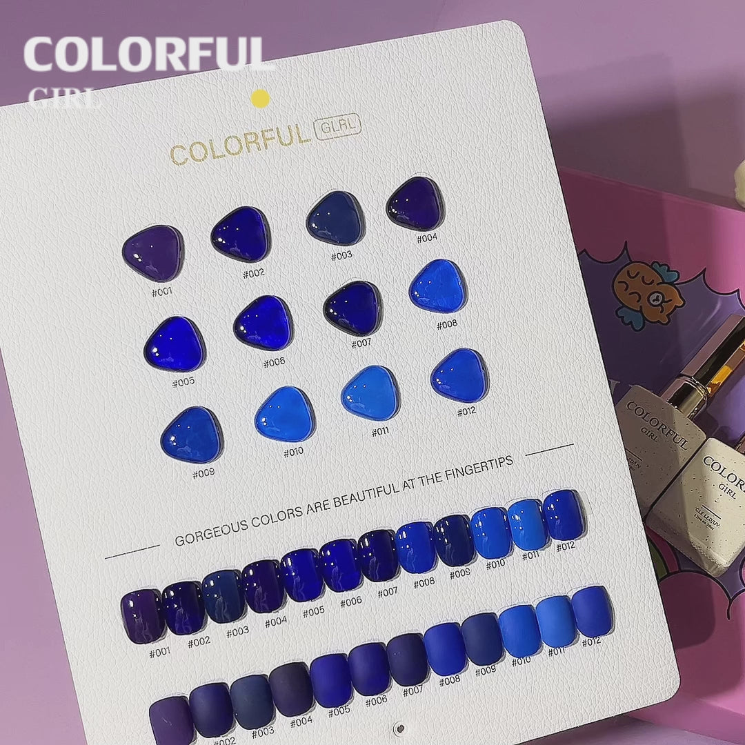 【พร้อมส่ง】 สีทาเล็บเจลColorful girl สี( Colorful girl) สีเจล สีเจลสีพื้น 12สีชุดเจลสีฟ้า แถม ชาร์ทสี