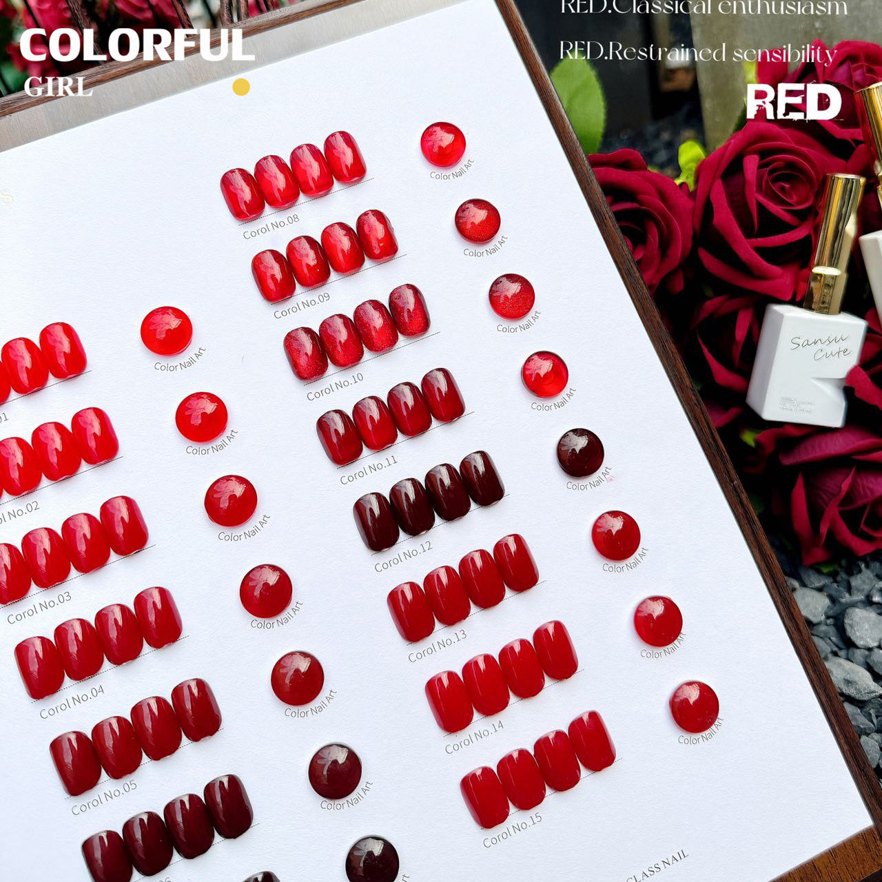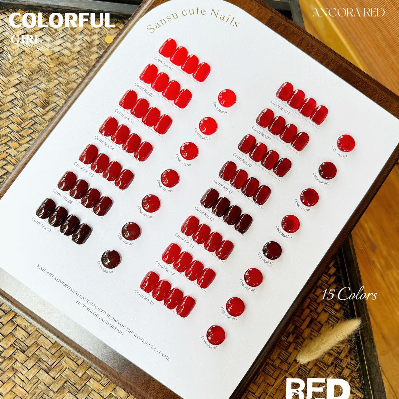 【พร้อมส่ง】 สีทาเล็บเจล SANSU สี( SANSU) สีเจล สีเจลสีพื้น 15สีชุดเจลสีแดง แถมชาร์ทสี 11สีเจลสีพื้น+2สีเจลแคทอาย+2สีเจลไซรัป