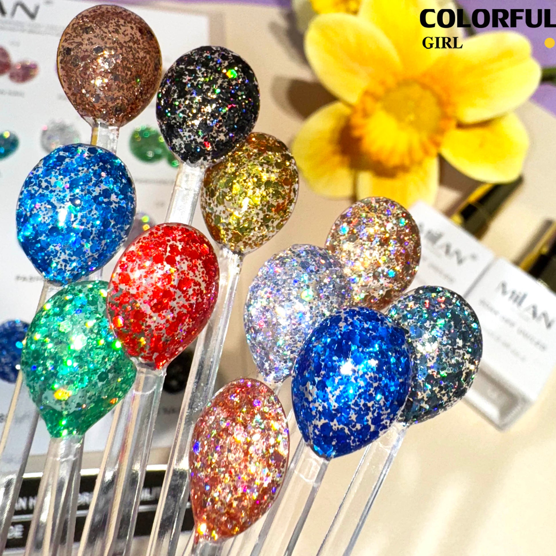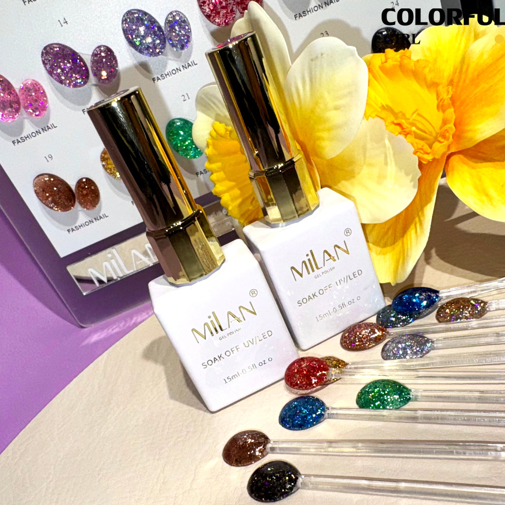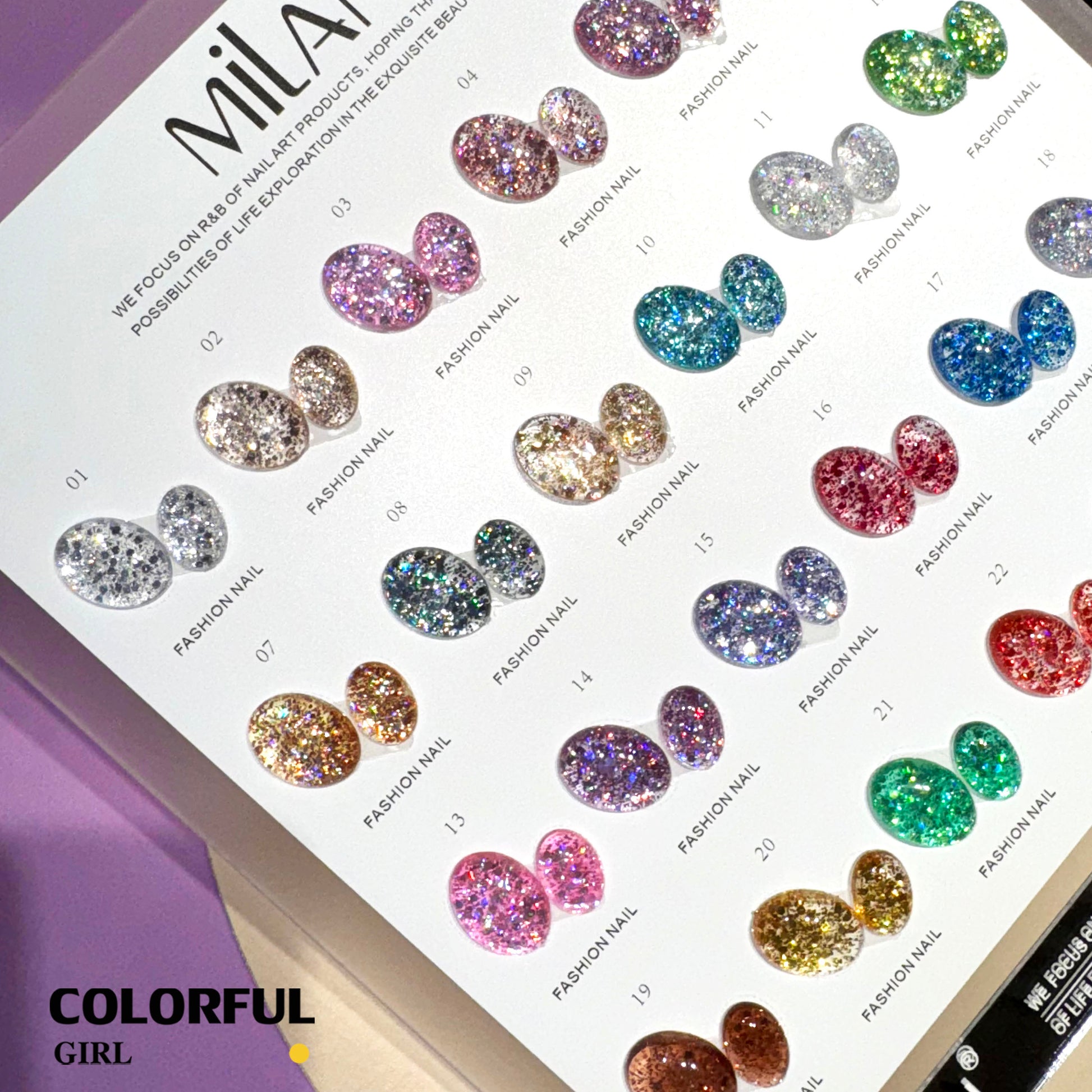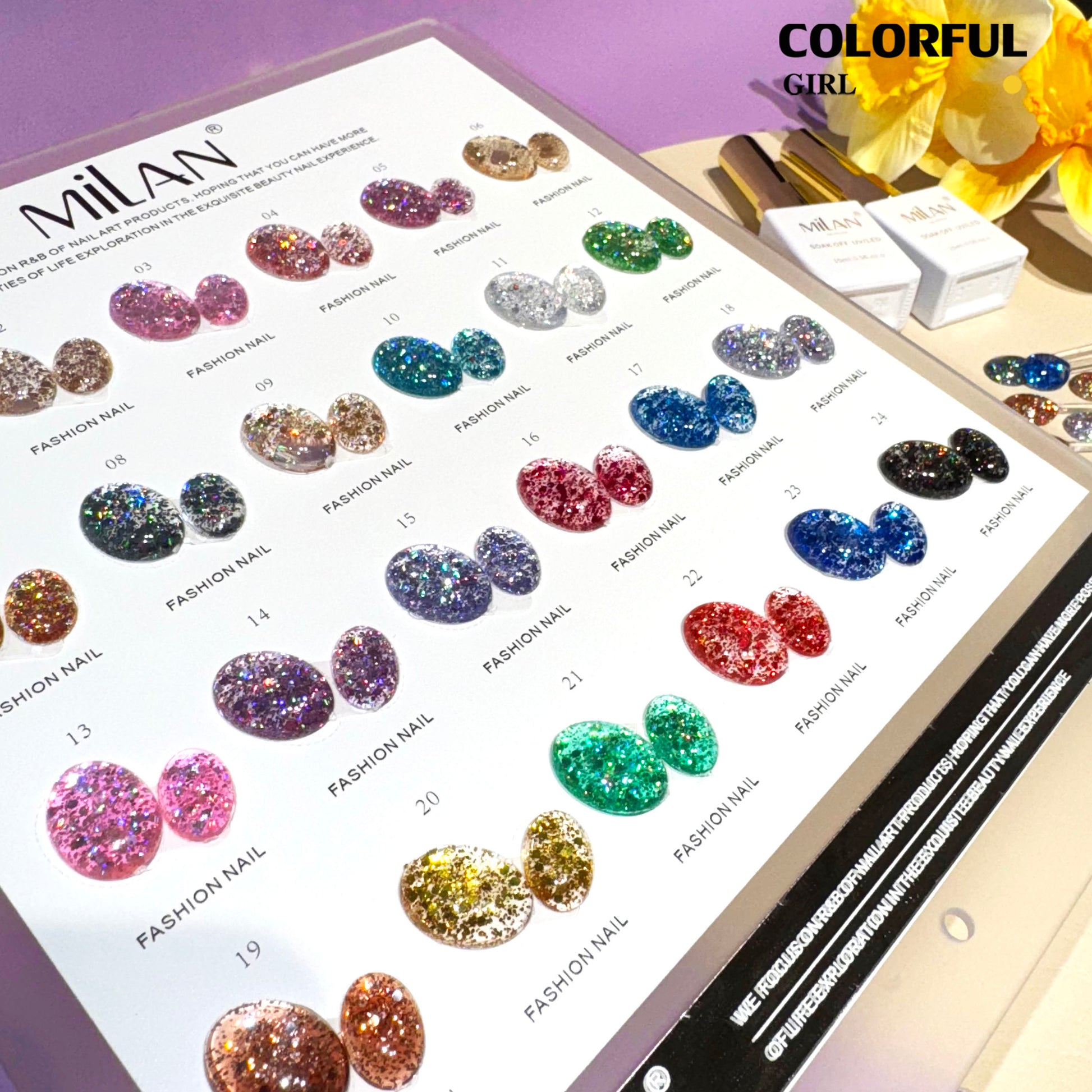 【พร้อมส่ง】สีสีเจล MILANสีกากเพชร สีเจลกลิซเตอร์ 24 สี แถม ชาร์ทสี(milan) สีเจลกลิซเตอร์