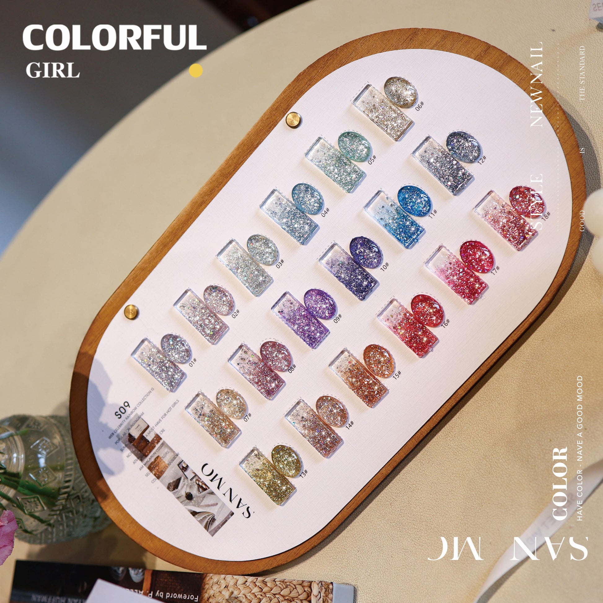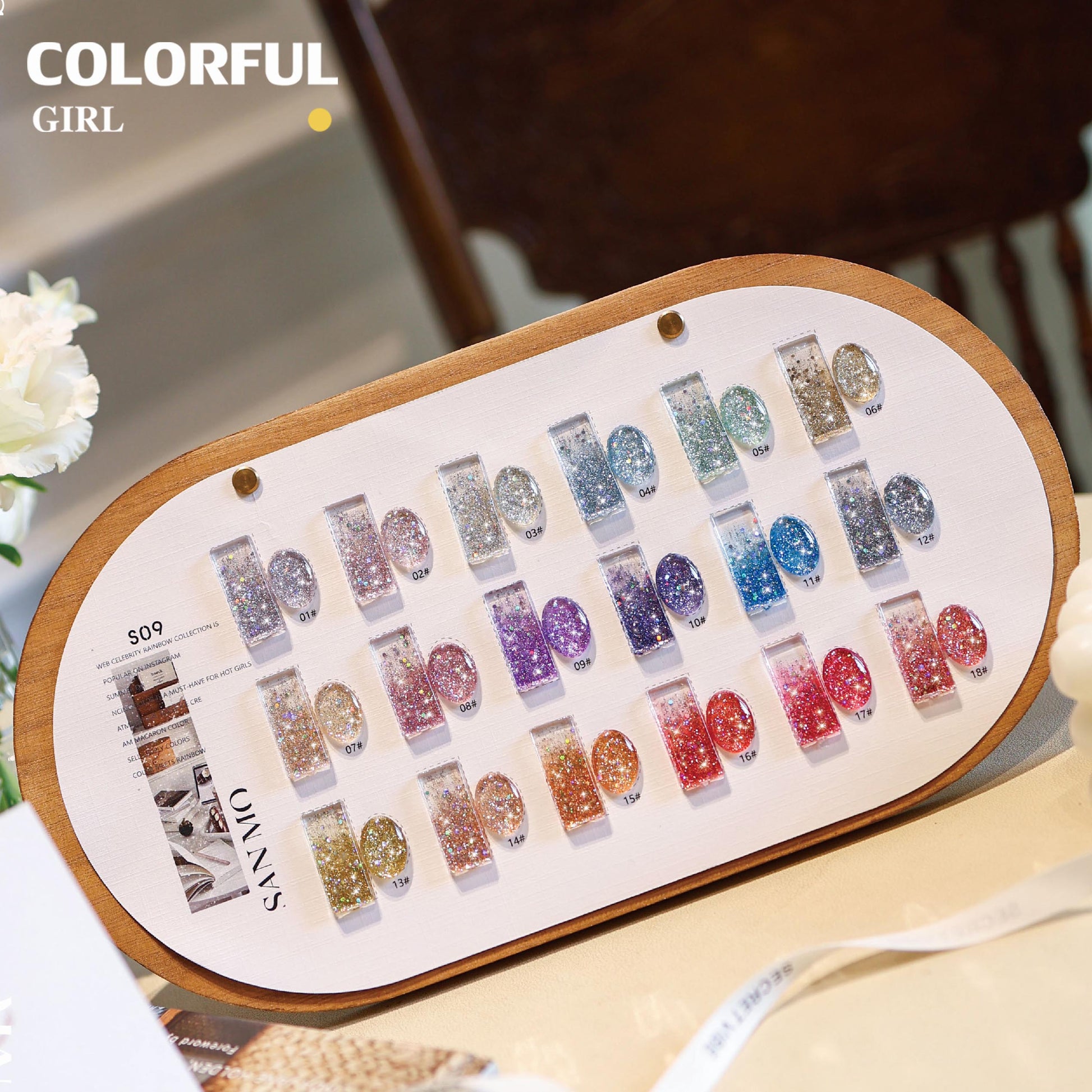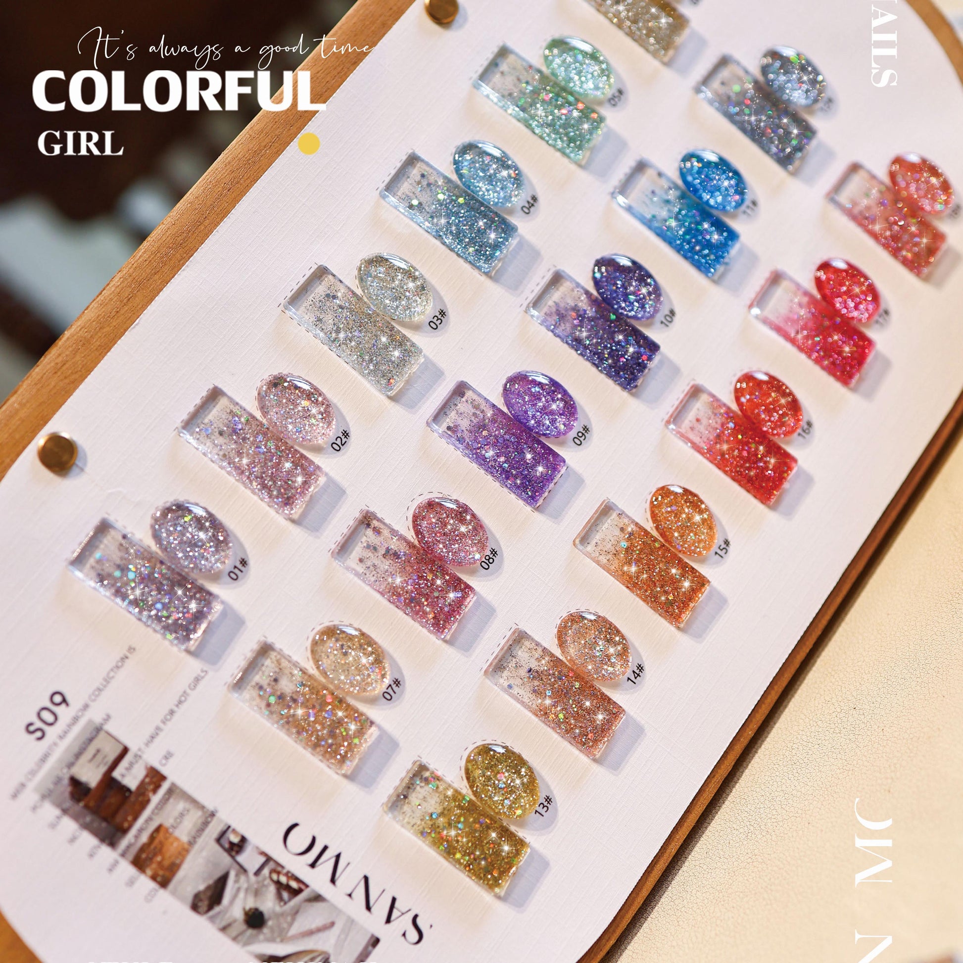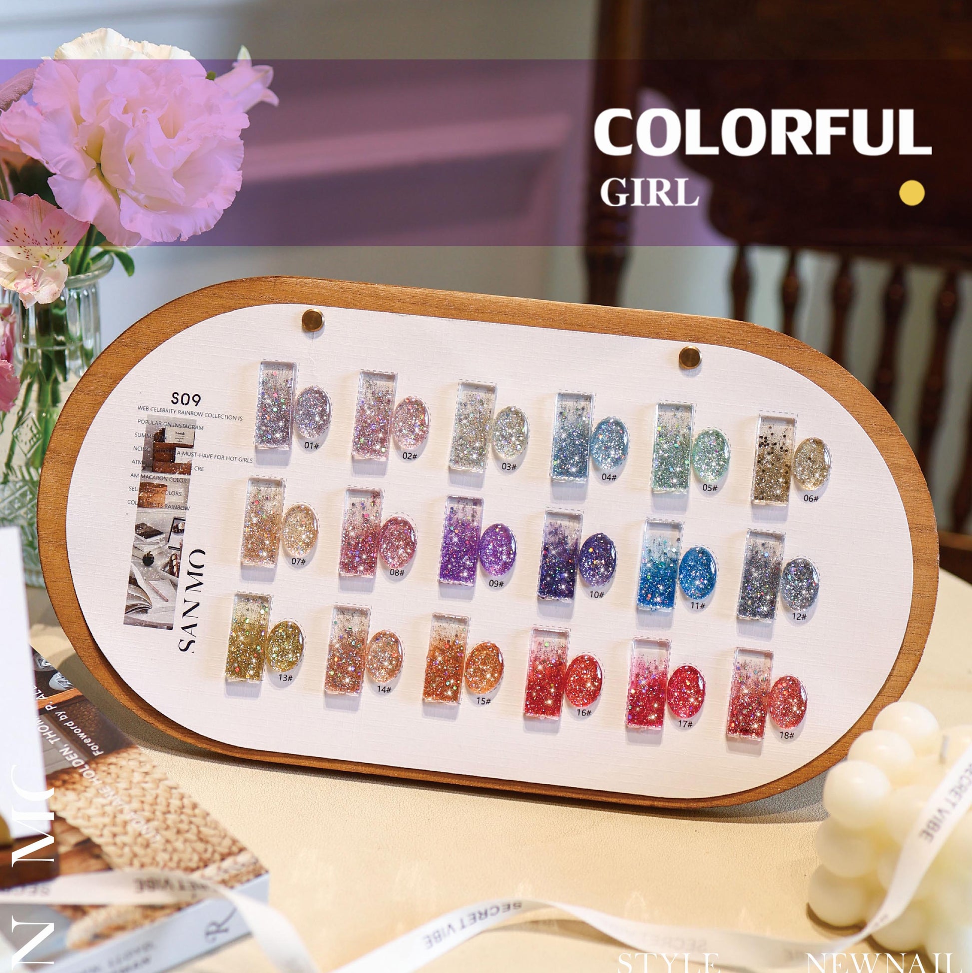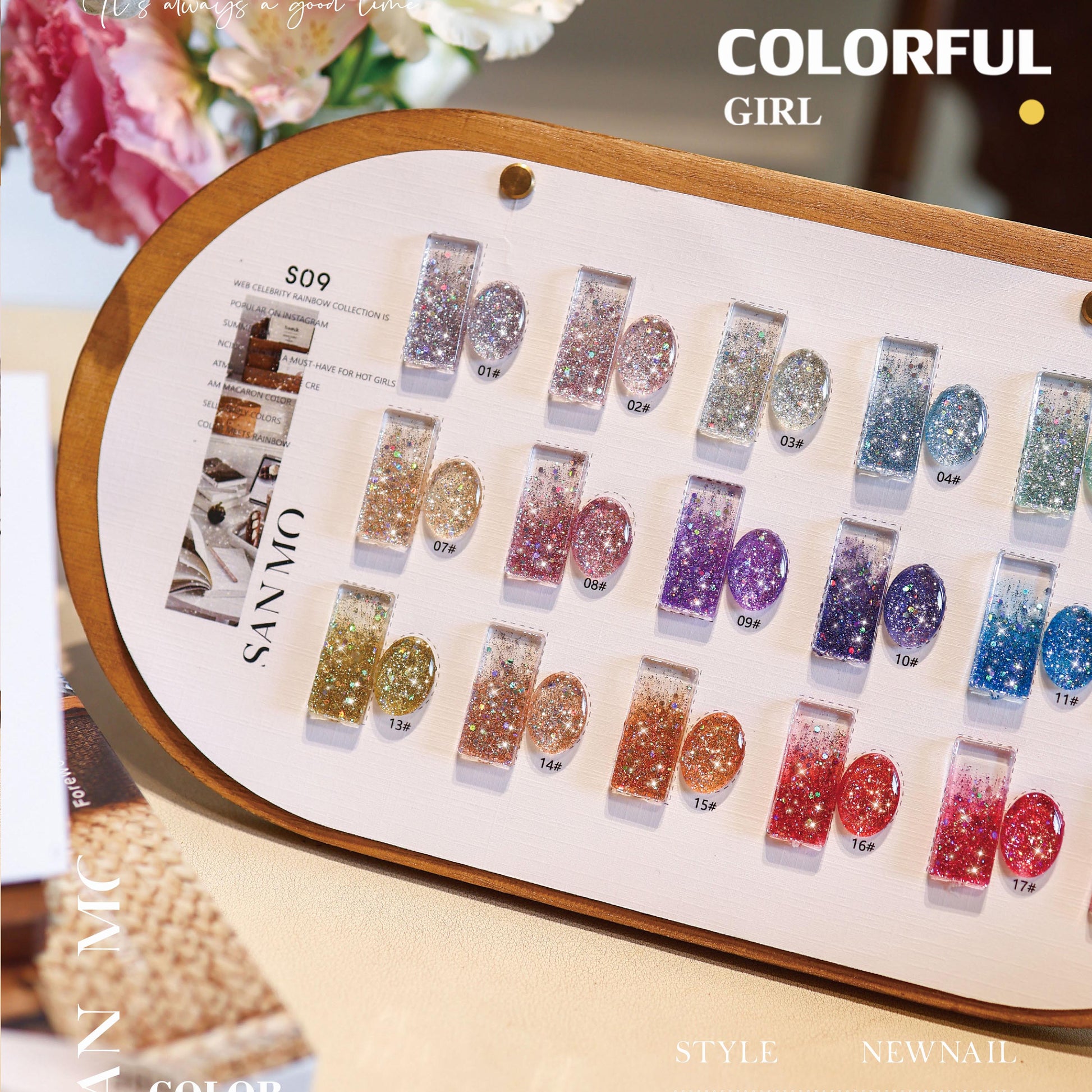 【พร้อมส่ง】สีเจลกากเพชรวิ้งแน่น 18 สี (SANMO)สีสวย แถมชาทสีฟร แถม ชาร์ทสี กลิตเตอร์สีรุ้งวิบวับ