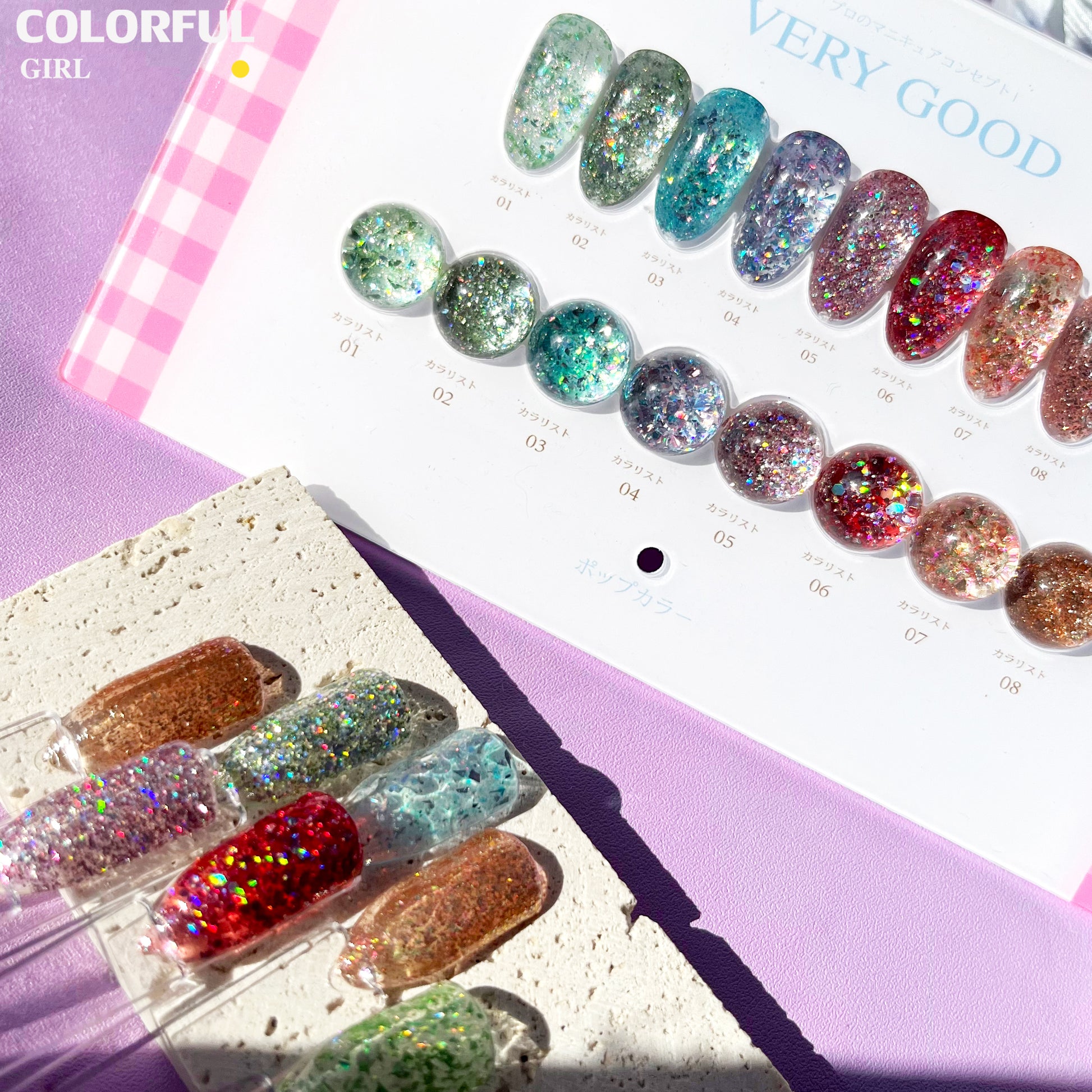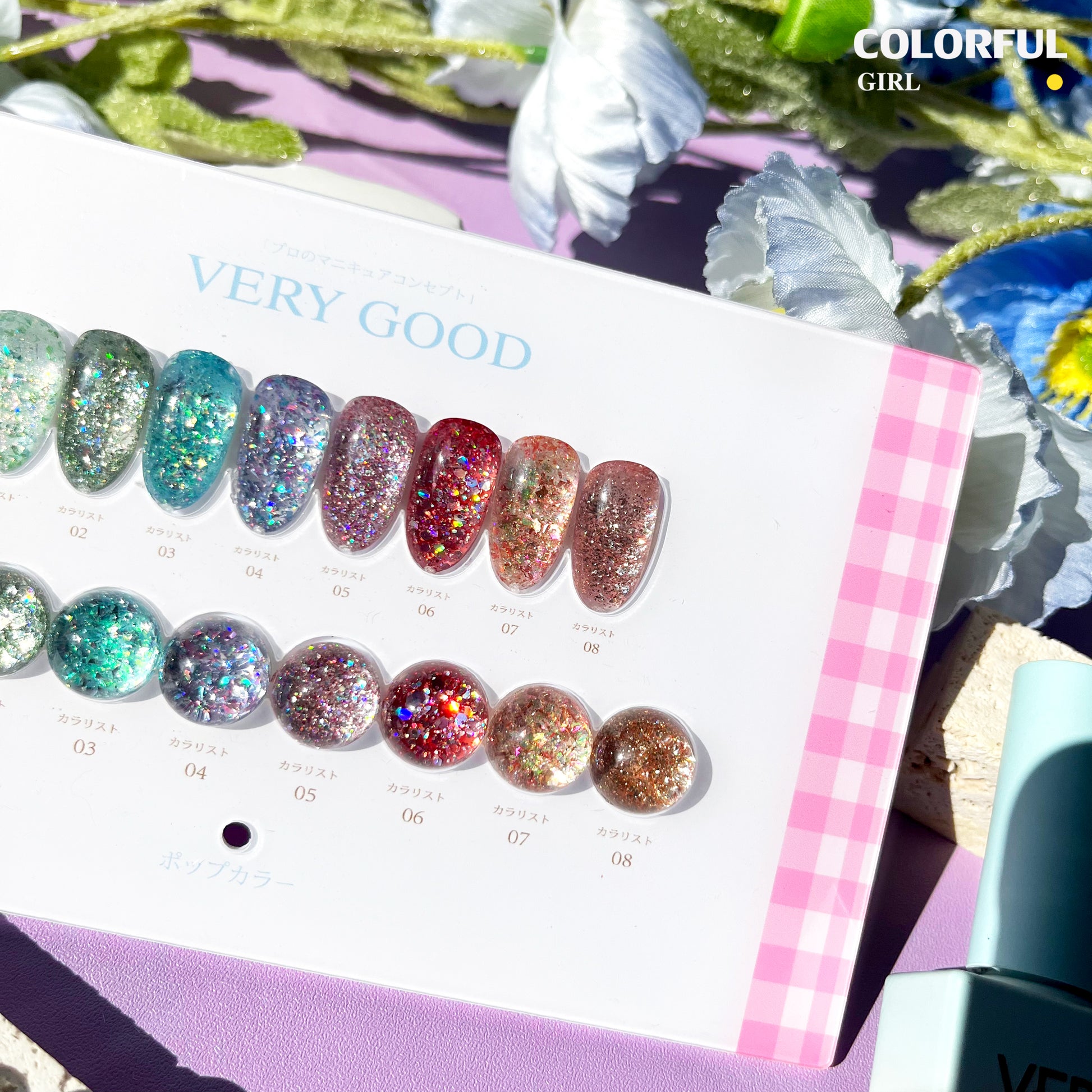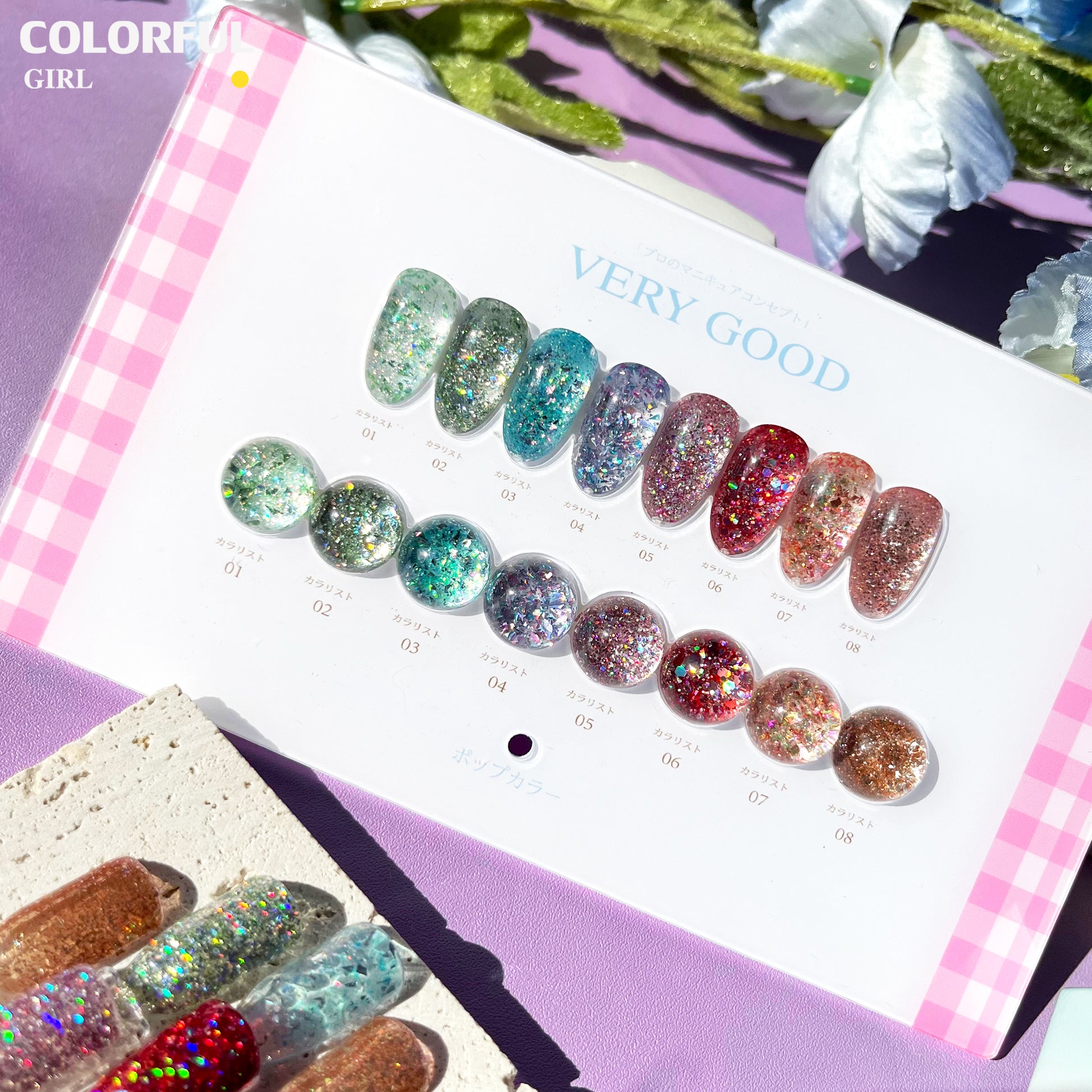 【พร้อมส่ง】สีเจลกากเพชรวิ้งแน่น 8 สี (very good)สีสวย แถมชาร์ทอะคริลิคสำเร็จรูป