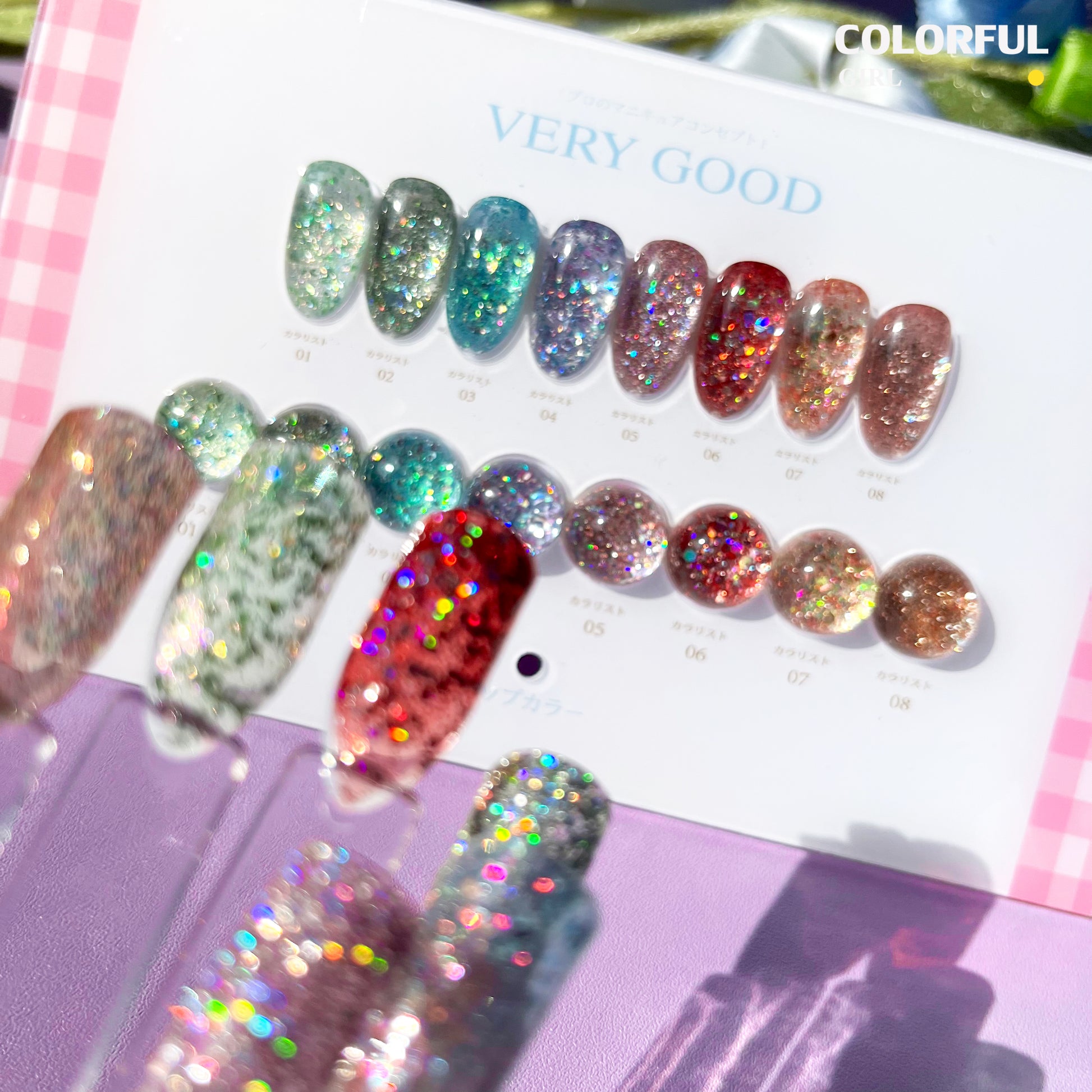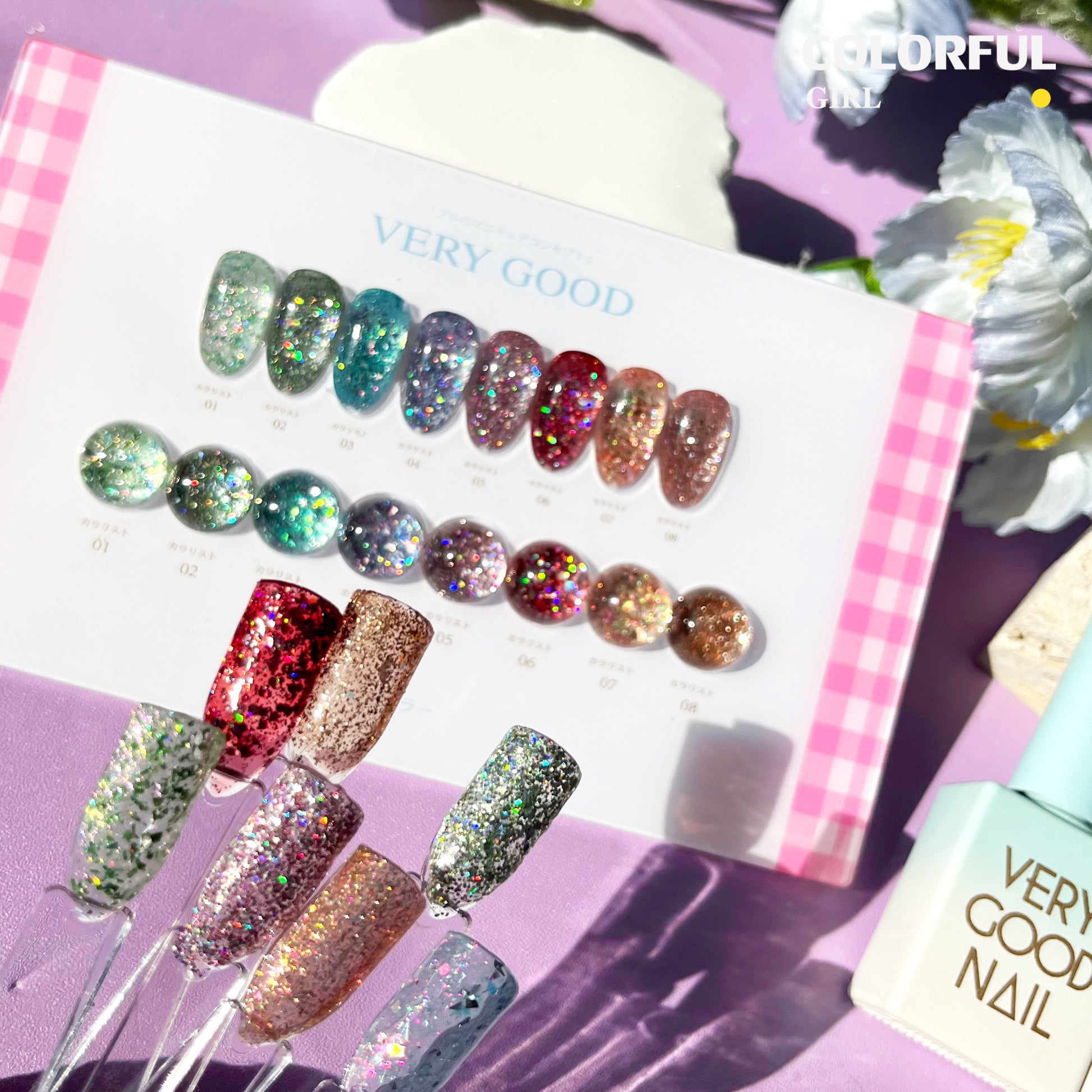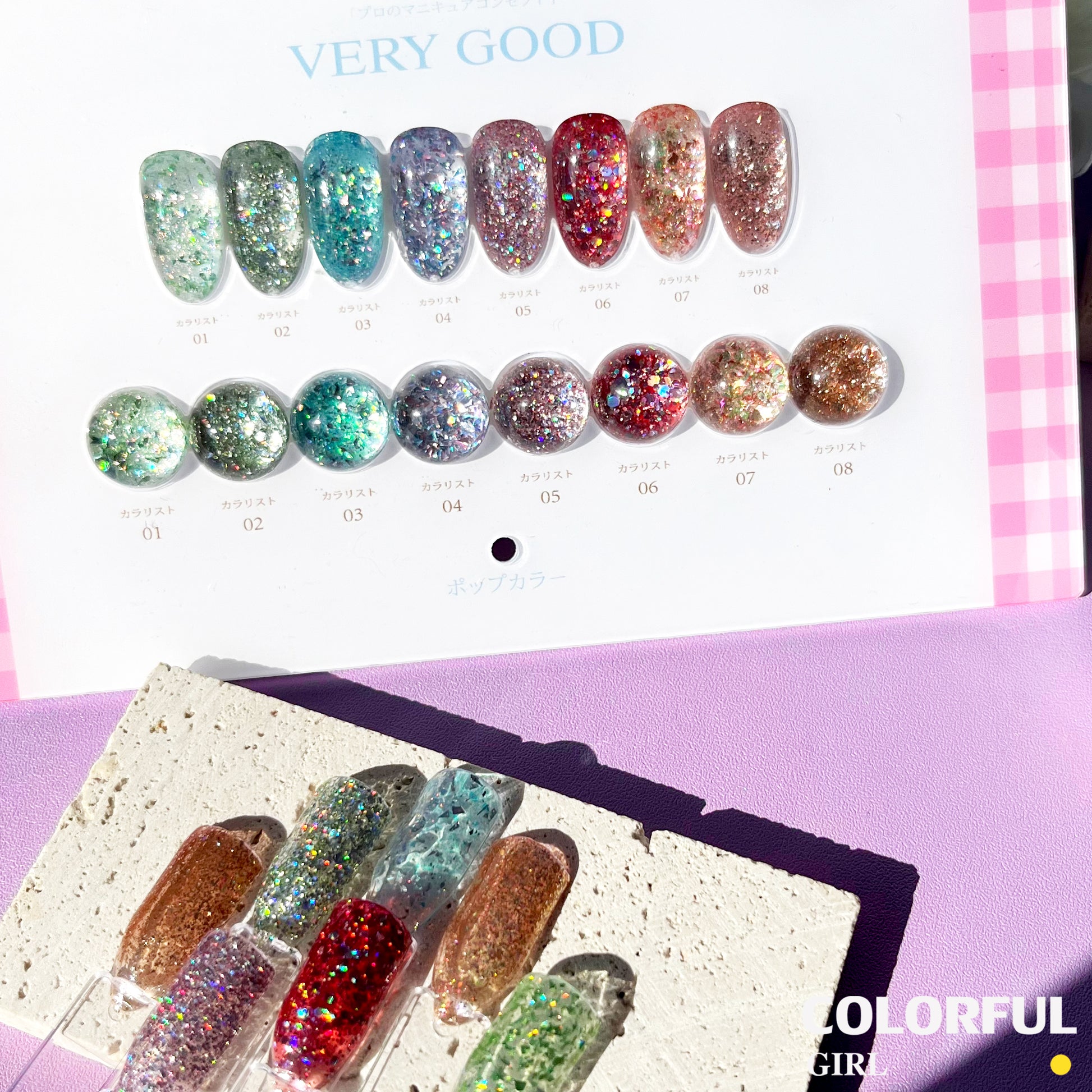 【พร้อมส่ง】สีเจลกากเพชรวิ้งแน่น 8 สี (very good)สีสวย แถมชาร์ทอะคริลิคสำเร็จรูป