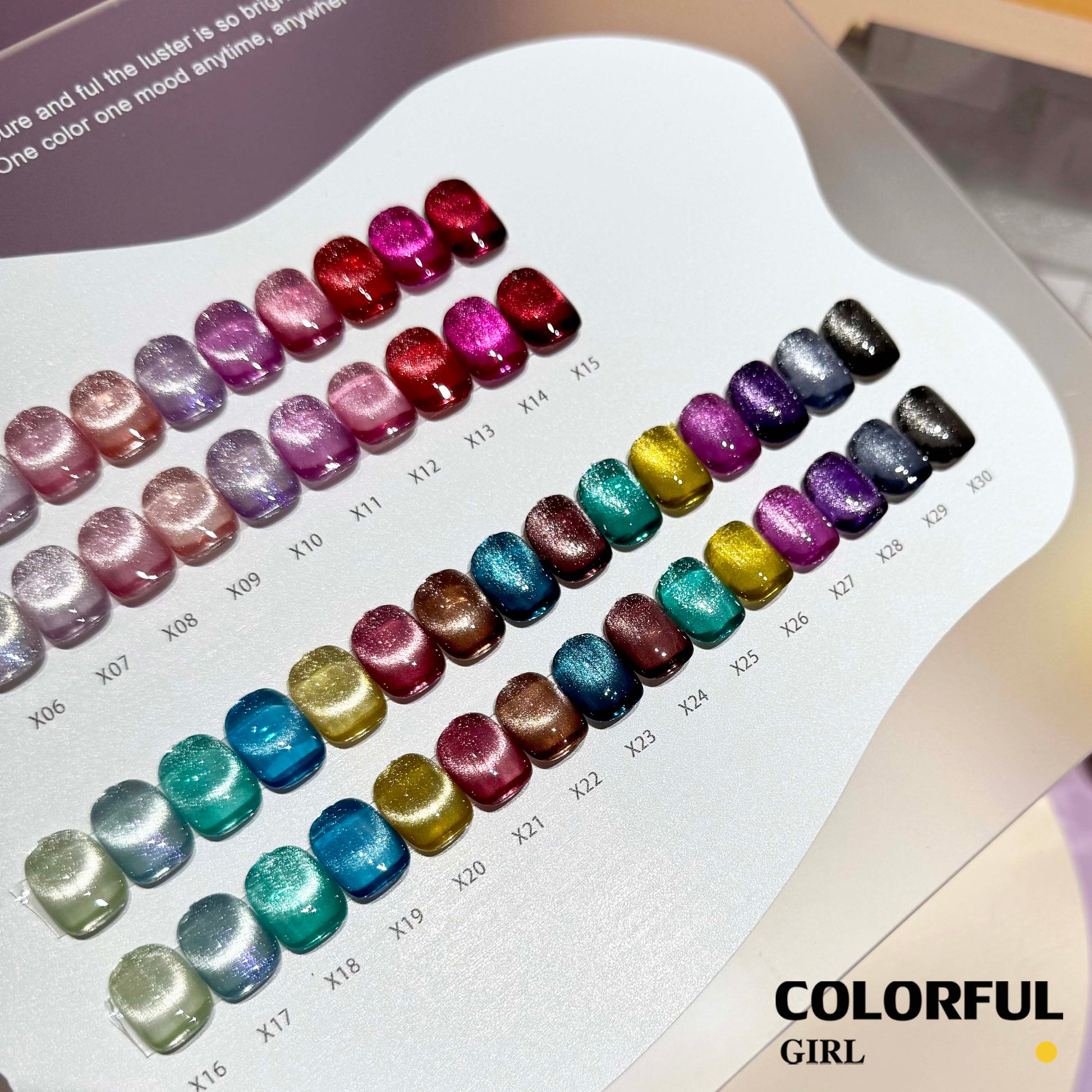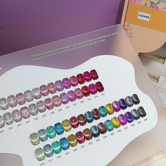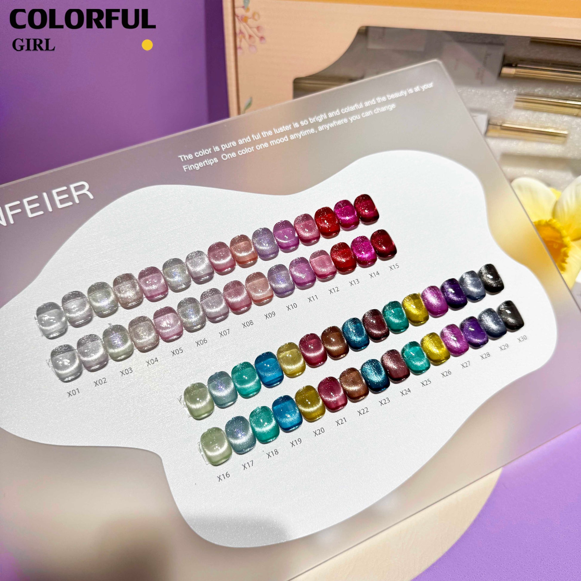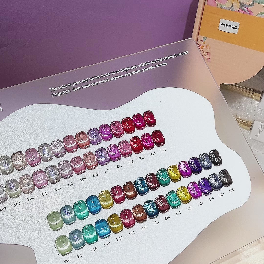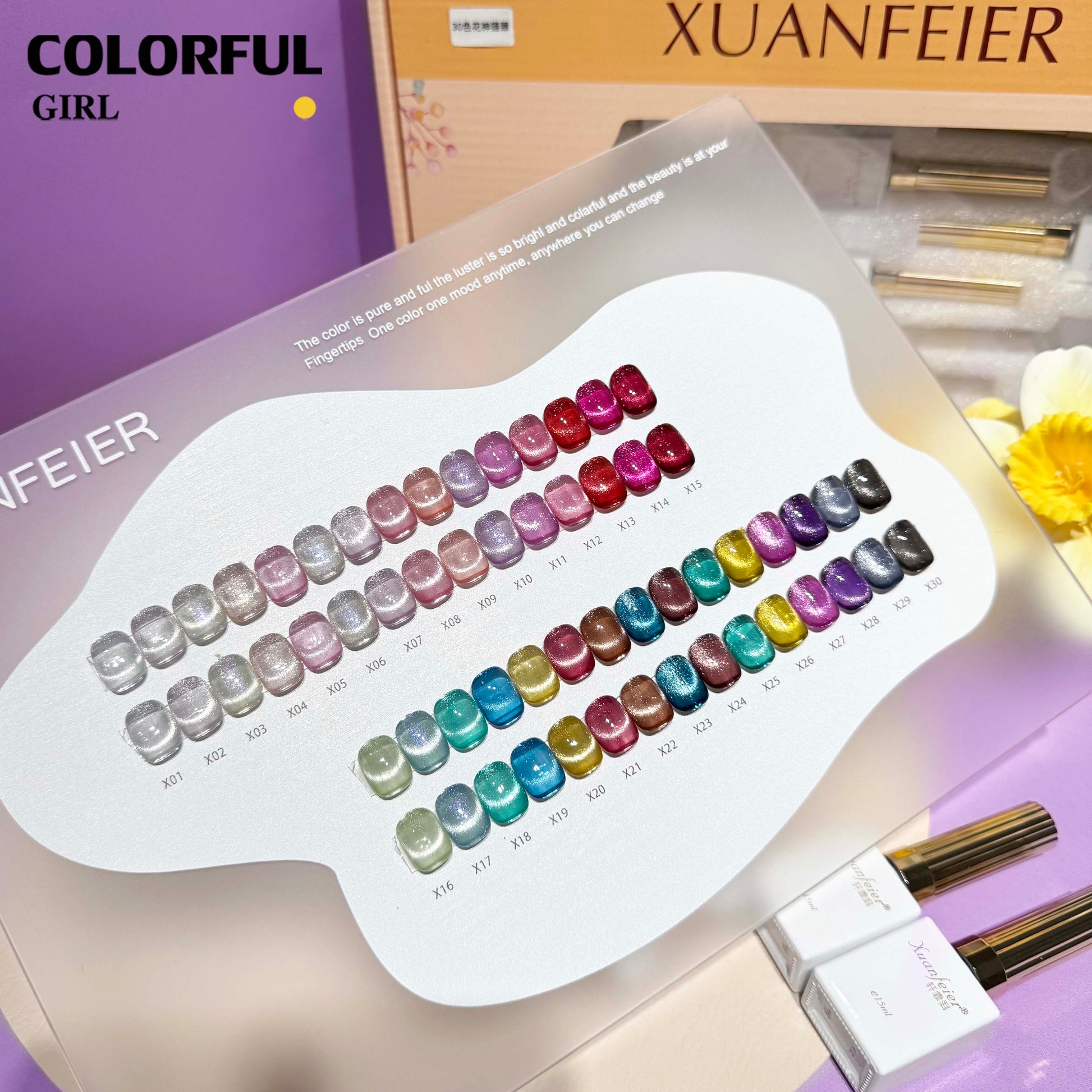 【พร้อมส่ง】สีเจลแคทอาย Xuanfeier30สี สีลูกแก้ว ฟรีชาร์ทสี Cat eye แม่เหล็ก เอฟเฟกต์มันเงามาก