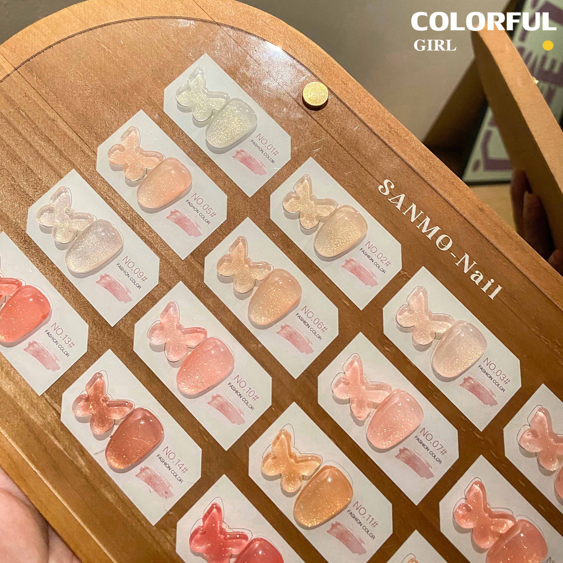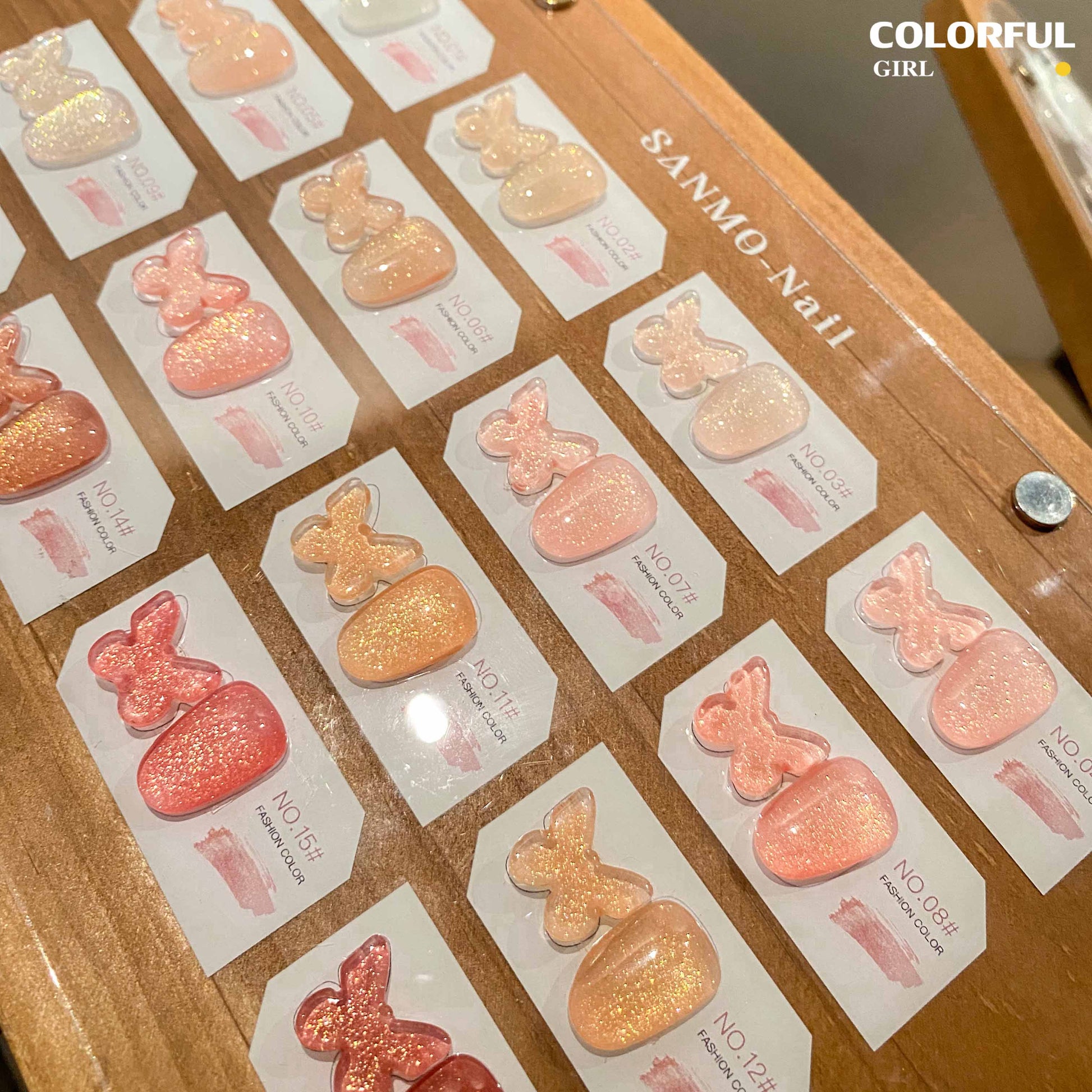 【พร้อมส่ง】สีเจล เซ็ท 16 สี SANMO สีชิมเมอร์ สีเจลชิมเมอร์ 16 สีโทนชมพู แถม ชาร์ทสี