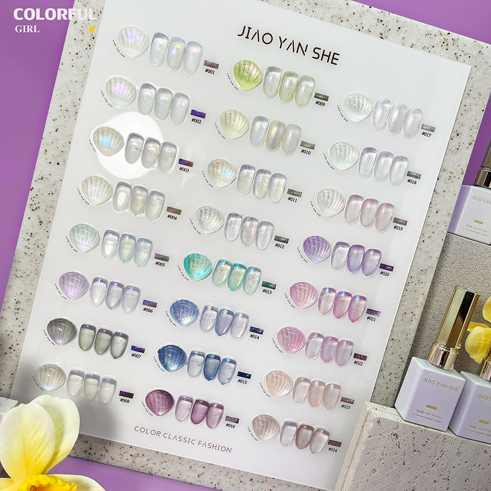 【พร้อมส่ง】สีเจล เซ็ท 24 สี JIAO YAN SHE ออโรร่าเซ็ทเปลือกหอย เซ็ทเปลือกหอย แถมชาร์ทอะคริลิคสำเร็จรูป