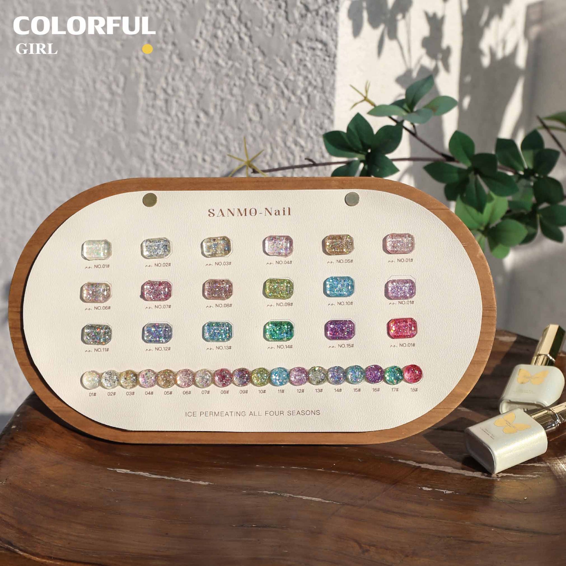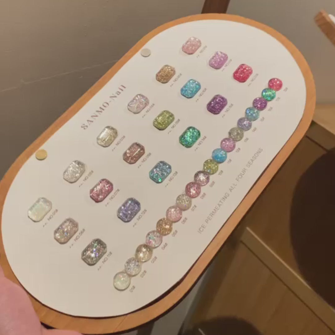 【พร้อมส่ง】18สี สีสันเงางามมากค่ะ สีเจลกลิซเตอร์ SANMO สี ( SANMO) สีเจล18สี แถม ชาร์ทสี กลิตเตอร์สีรุ้งวิบวับ