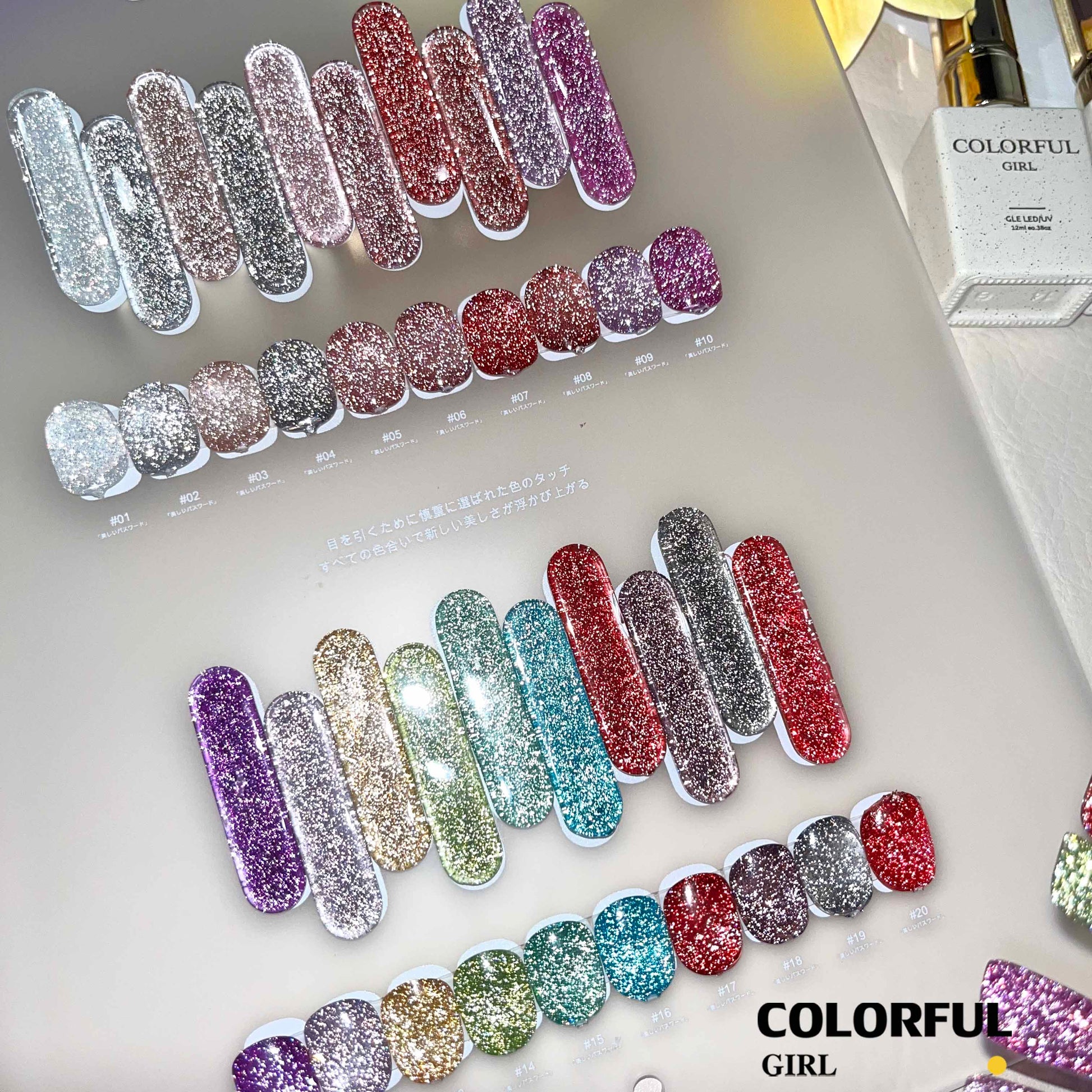 【พร้อมส่ง】 Colorful girlสีเจลแฟลช สีทาเล็บเจล 20สี( Colorful girl) สีเจล20สี สีเจลแฟลช แถม ชาร์ทสี