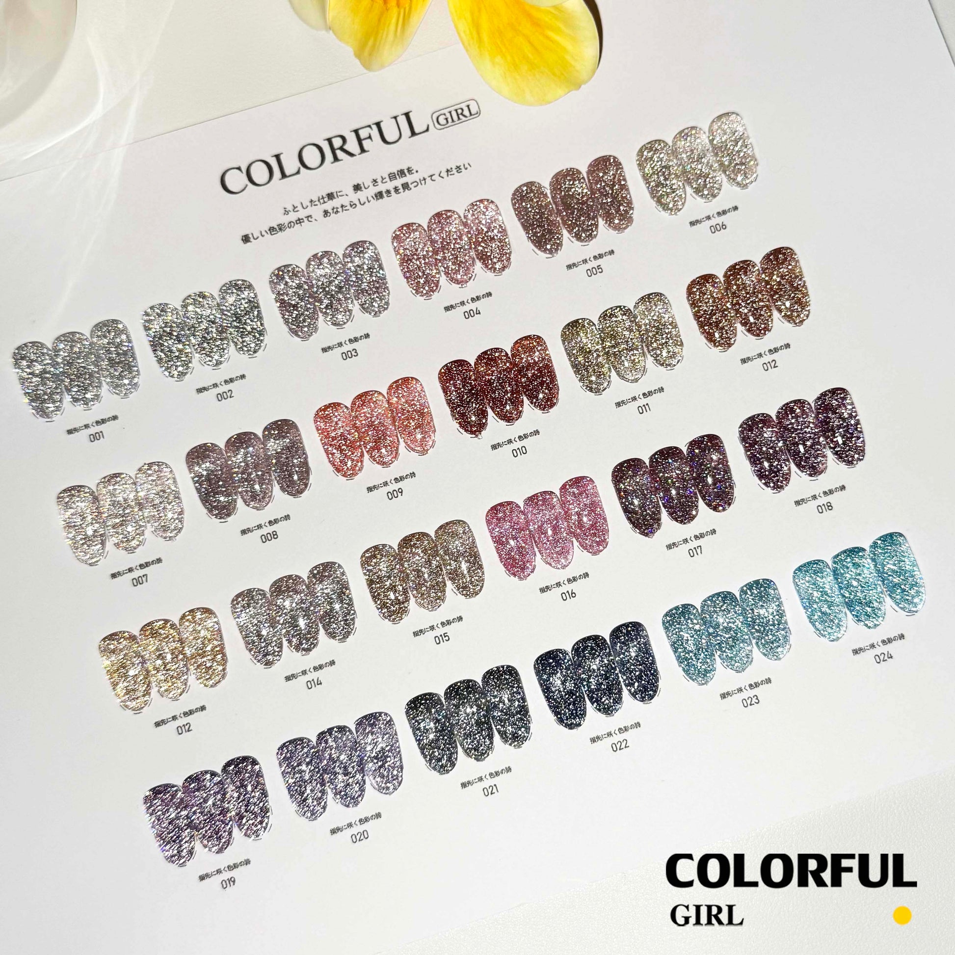【พร้อมส่ง】Colorful girlสีเจลแฟลช 24สี (Colorful girl)สีเจลทาเล็บ สี แถม ชาร์ทสี ยาทาเล็บเจล ชุดสี 24สี + ฟรีชาร์ทสี