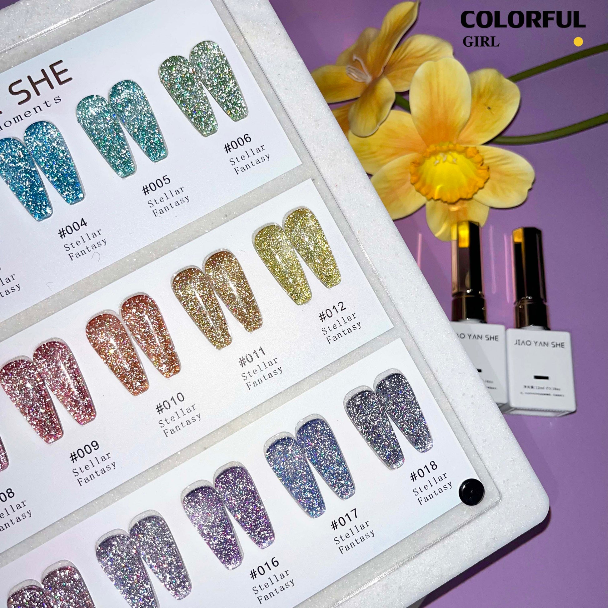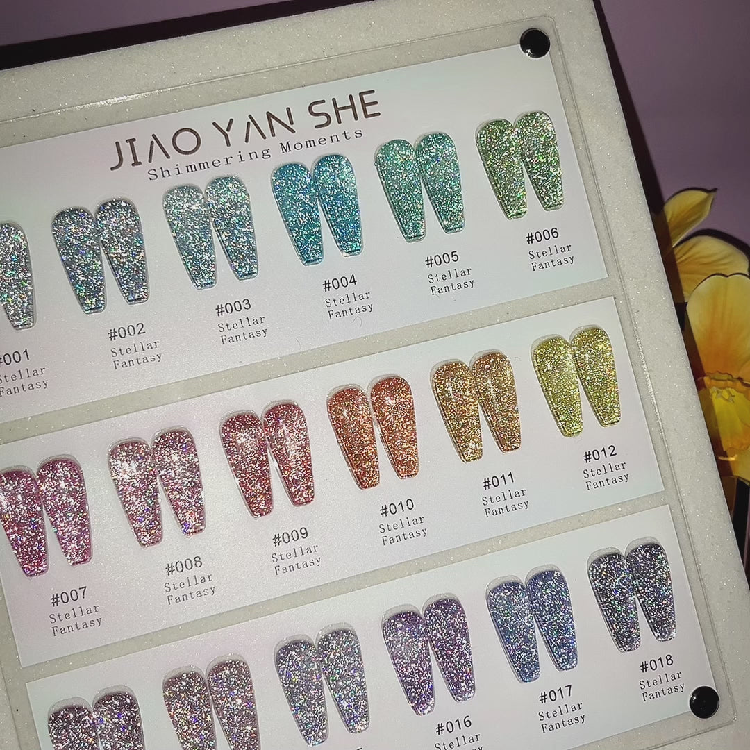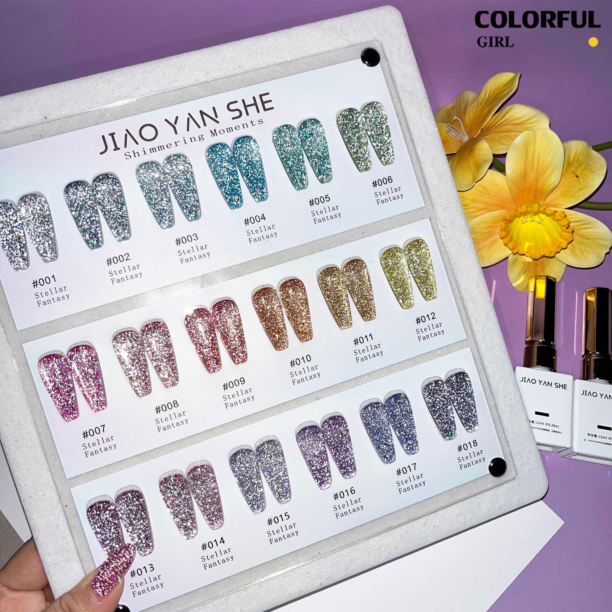【พร้อมส่ง】JIAOYANSHE สีเจลแฟลช 18สี สีทาเล็บเจล 18สี สีเจลกลิซเตอร์ 18สี(JIAOYANSHE) สีเจล18สี สีเจลแฟลช แถม ชาร์ทสี (แถม ชาร์ทสี ทามาให้แล้ว)