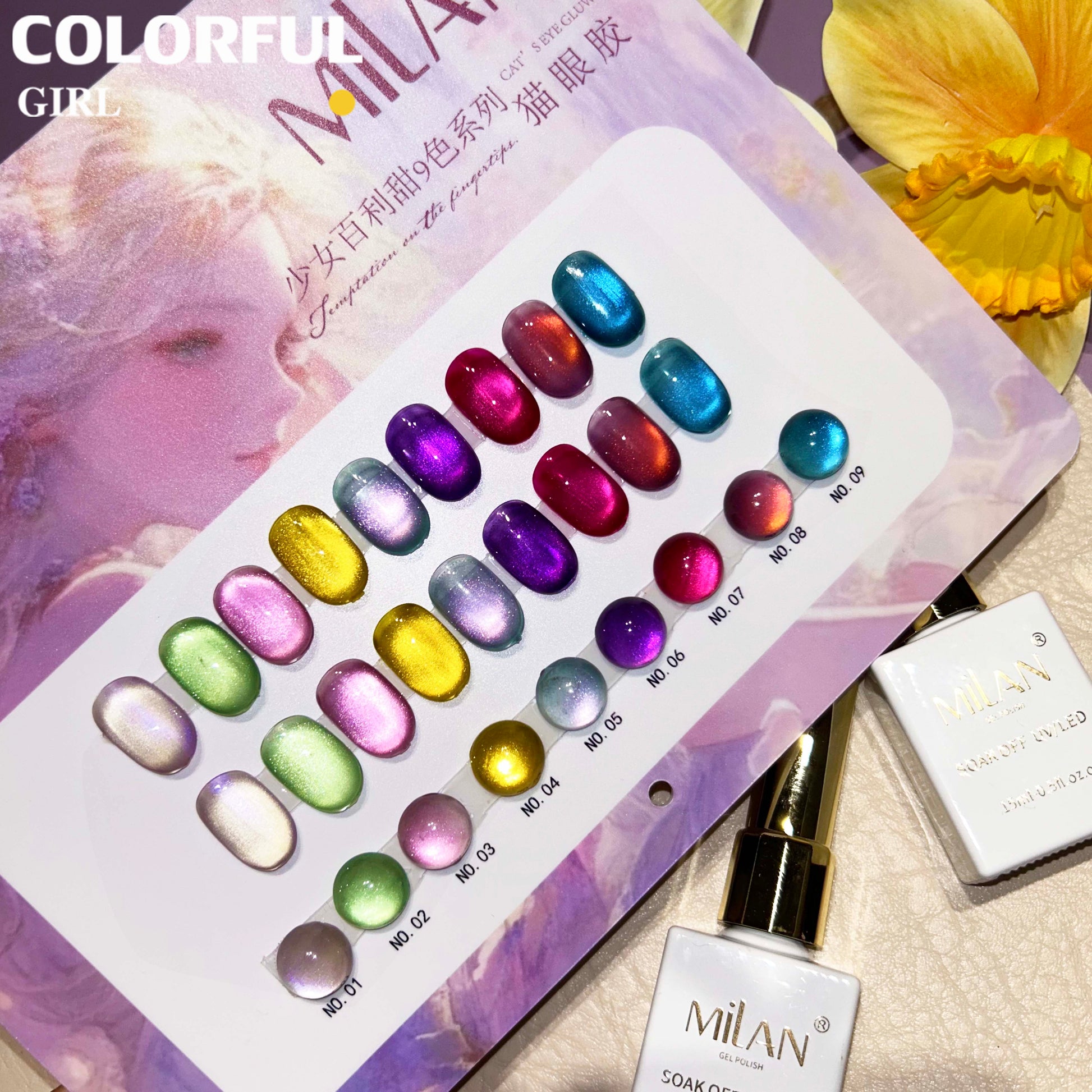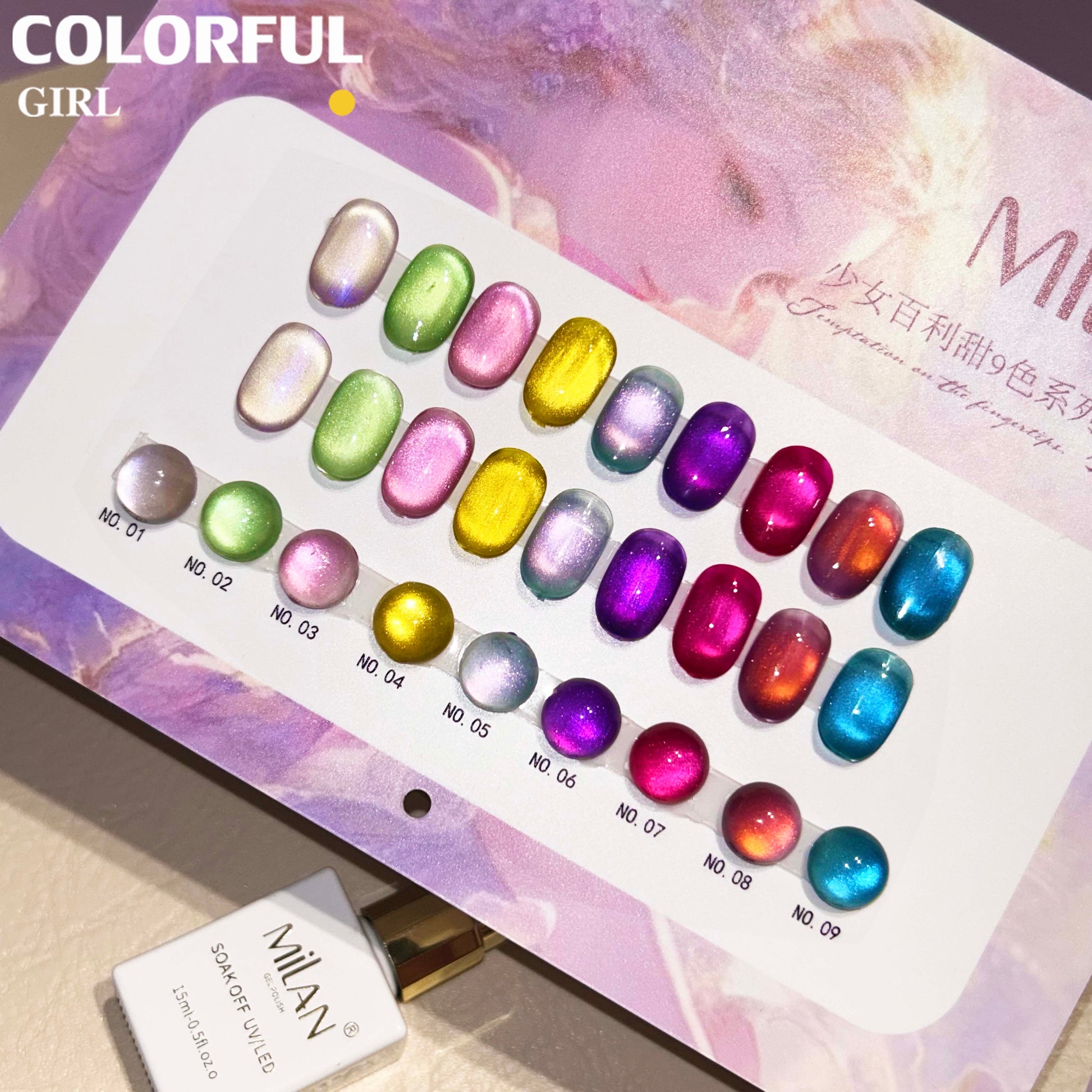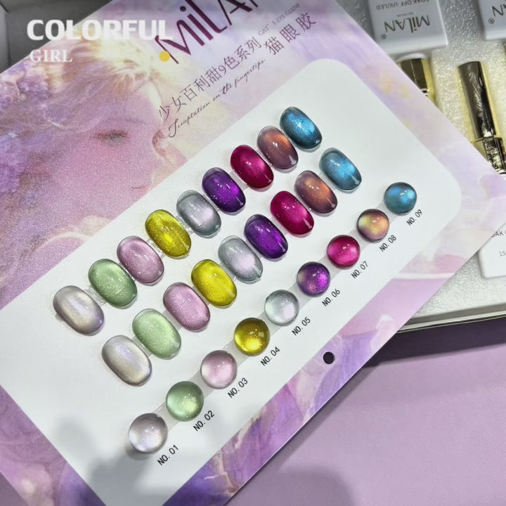 【พร้อมส่ง】MILAN สีเจลแคทอายเนื้อซาติน 9 สีสุดฮิต | สีลูกแก้วแวววาว | แถมชาร์ตสีฟรี! (ทาสีจริงให้แล้ว) แม่เหล็กแน่น เล่นไฟดี Cat eye 9สี
