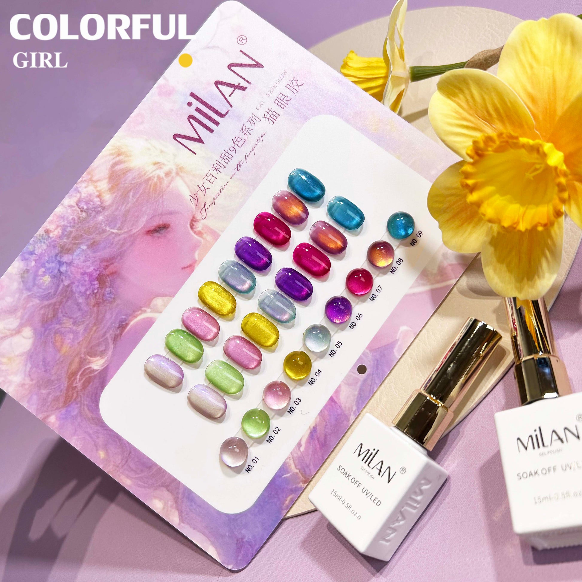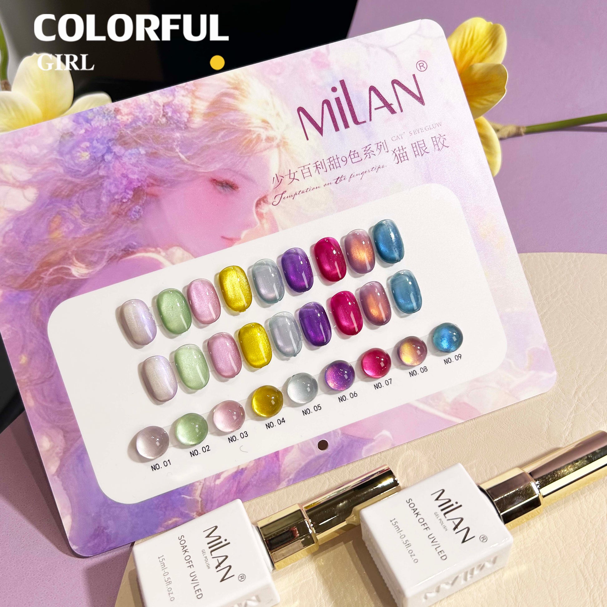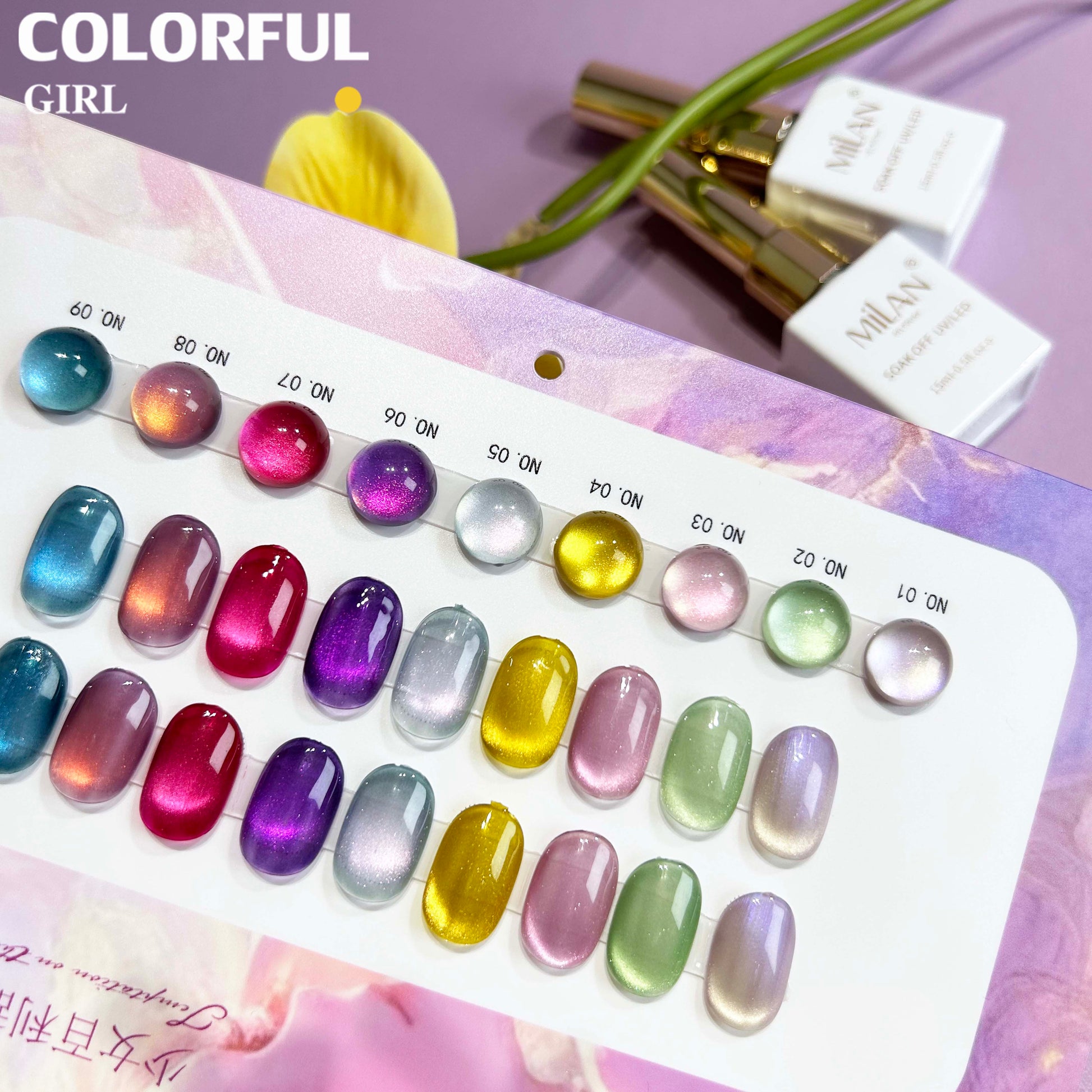 【พร้อมส่ง】MILAN สีเจลแคทอายเนื้อซาติน 9 สีสุดฮิต | สีลูกแก้วแวววาว | แถมชาร์ตสีฟรี! (ทาสีจริงให้แล้ว) แม่เหล็กแน่น เล่นไฟดี Cat eye 9สี
