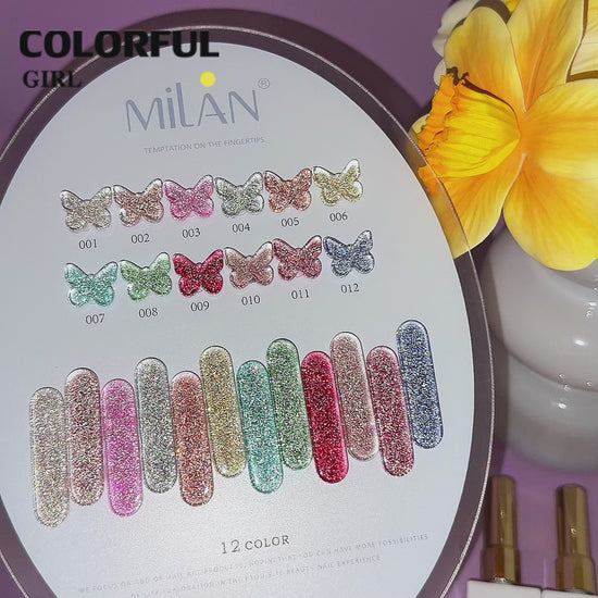 【พร้อมส่ง】Milan สีเจลแฟลช 12 สี ✨ เจลกลิตเตอร์ประกายวิ้งค์ สีแน่น ติดทนนาน สีเจลทาเล็บ สี แถม ชาร์ทสี ยาทาเล็บเจล 15 มล.(ทามาให้แล้ว พร้อมใช้งาน)
