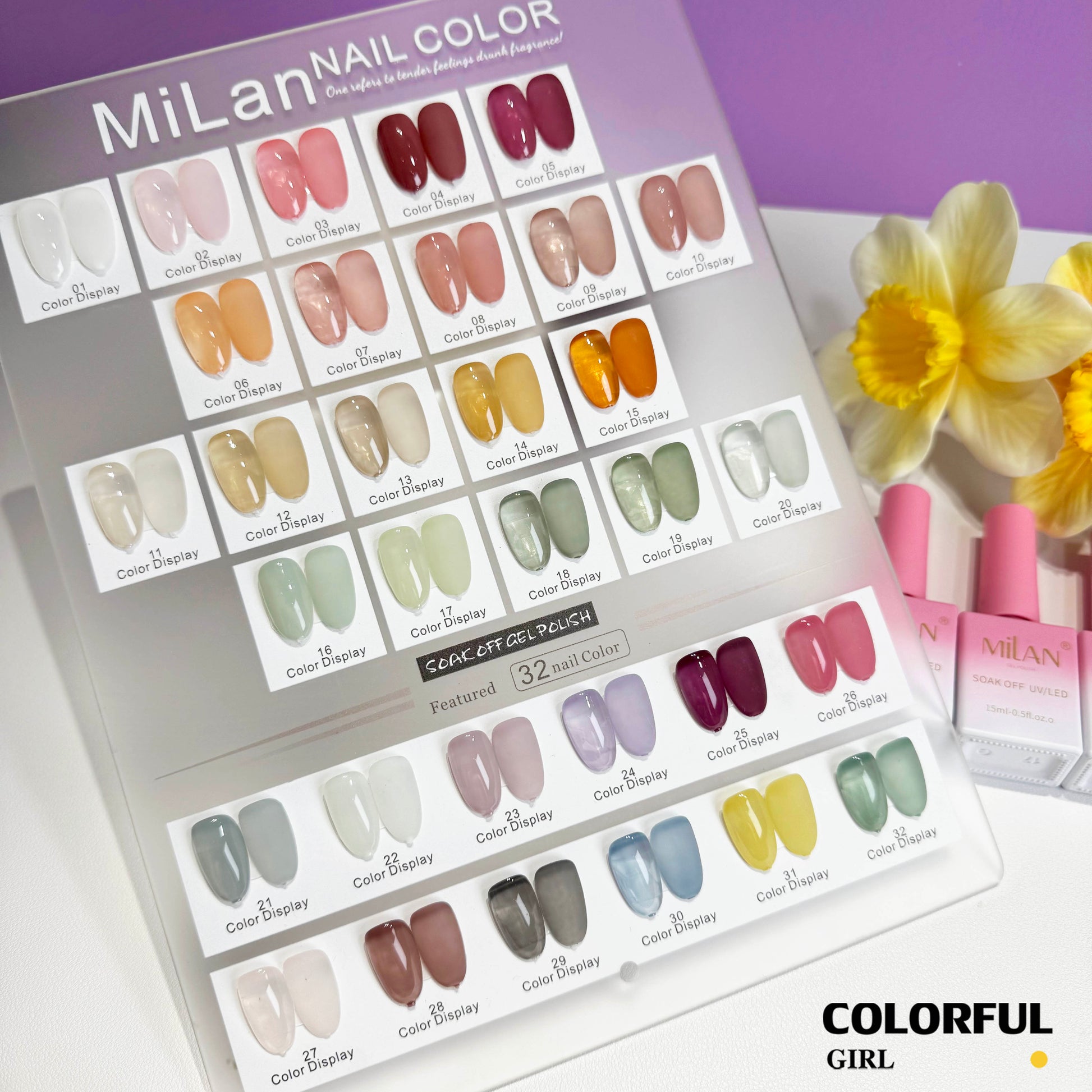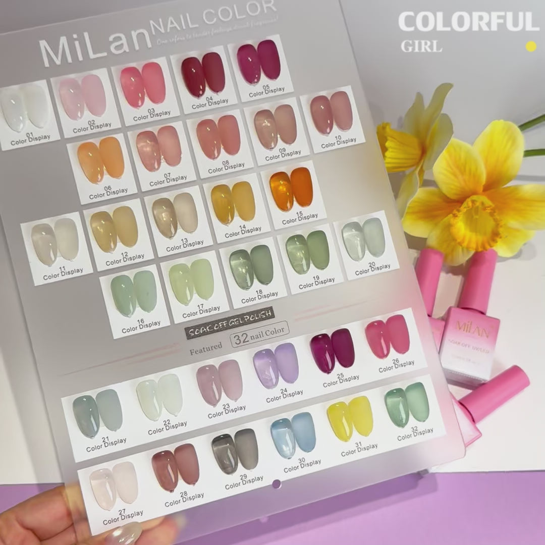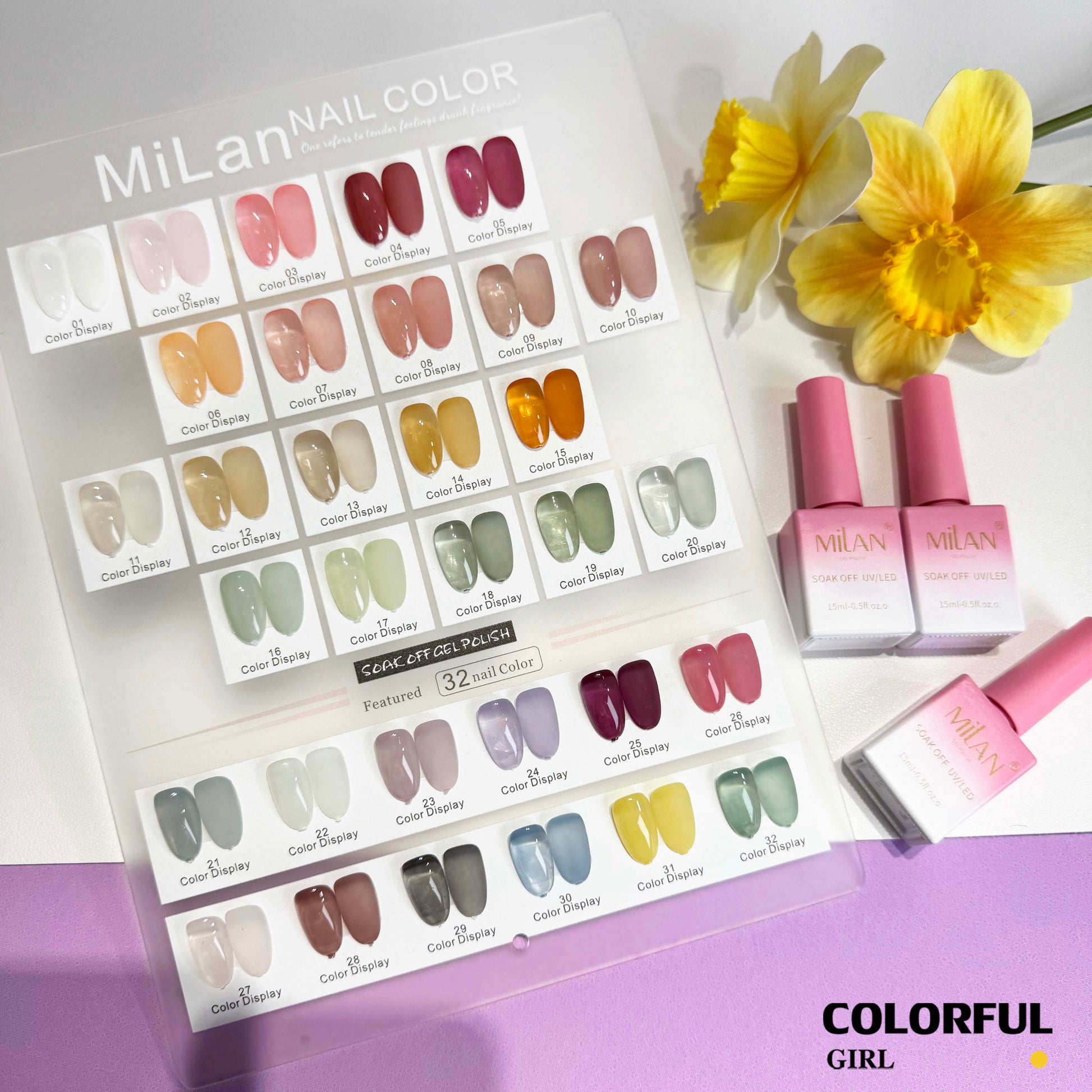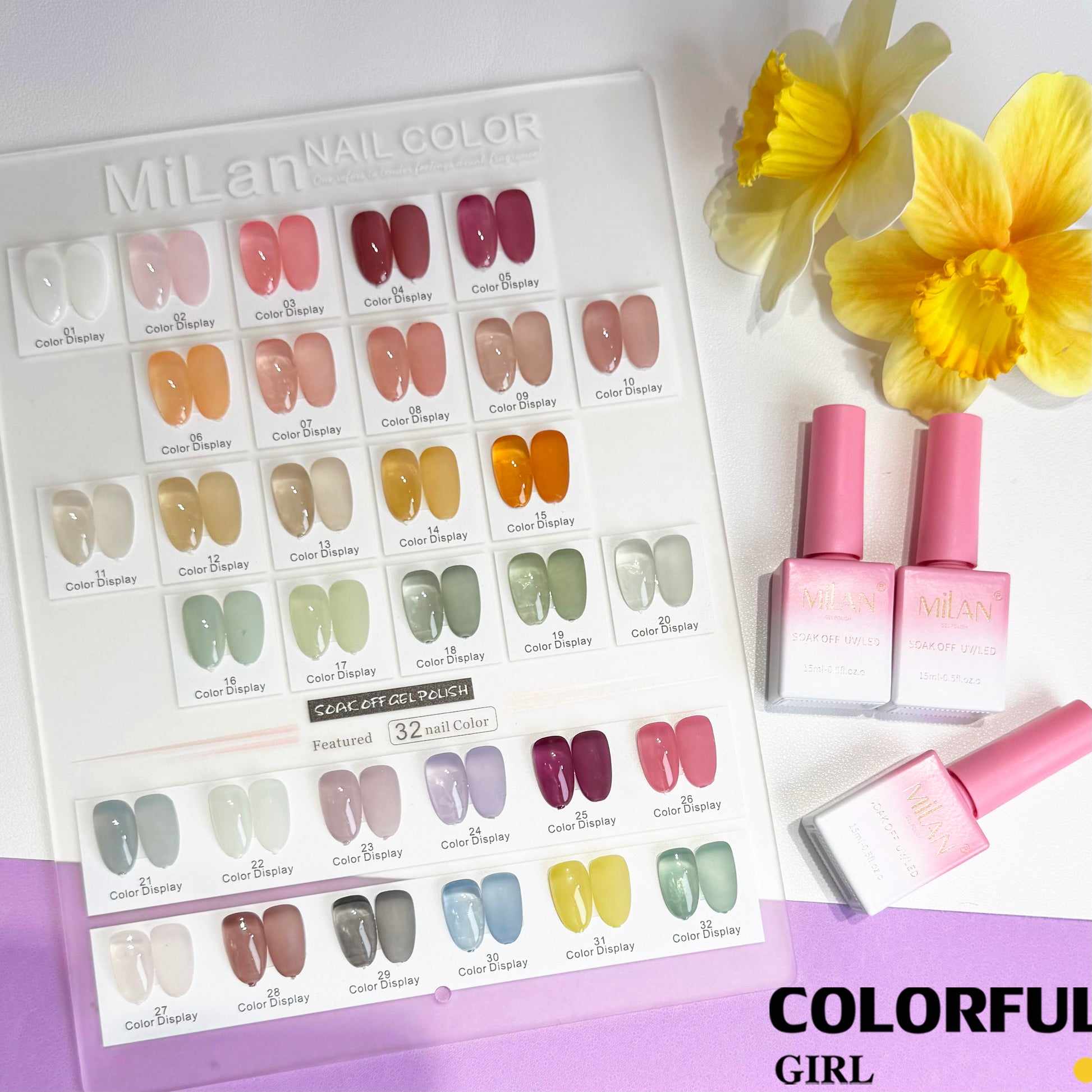 【พร้อมส่ง】MILAN สีเจลไซรัปรุ่นใหม่ 32 สี ฟรีชุดชาร์จชาร์จ เนื้อสวยละมุนค่ะ เจลลี่ไซรัป 32 สี ไม่บางจนเกินไปทาง่ายและสวยมากmilan