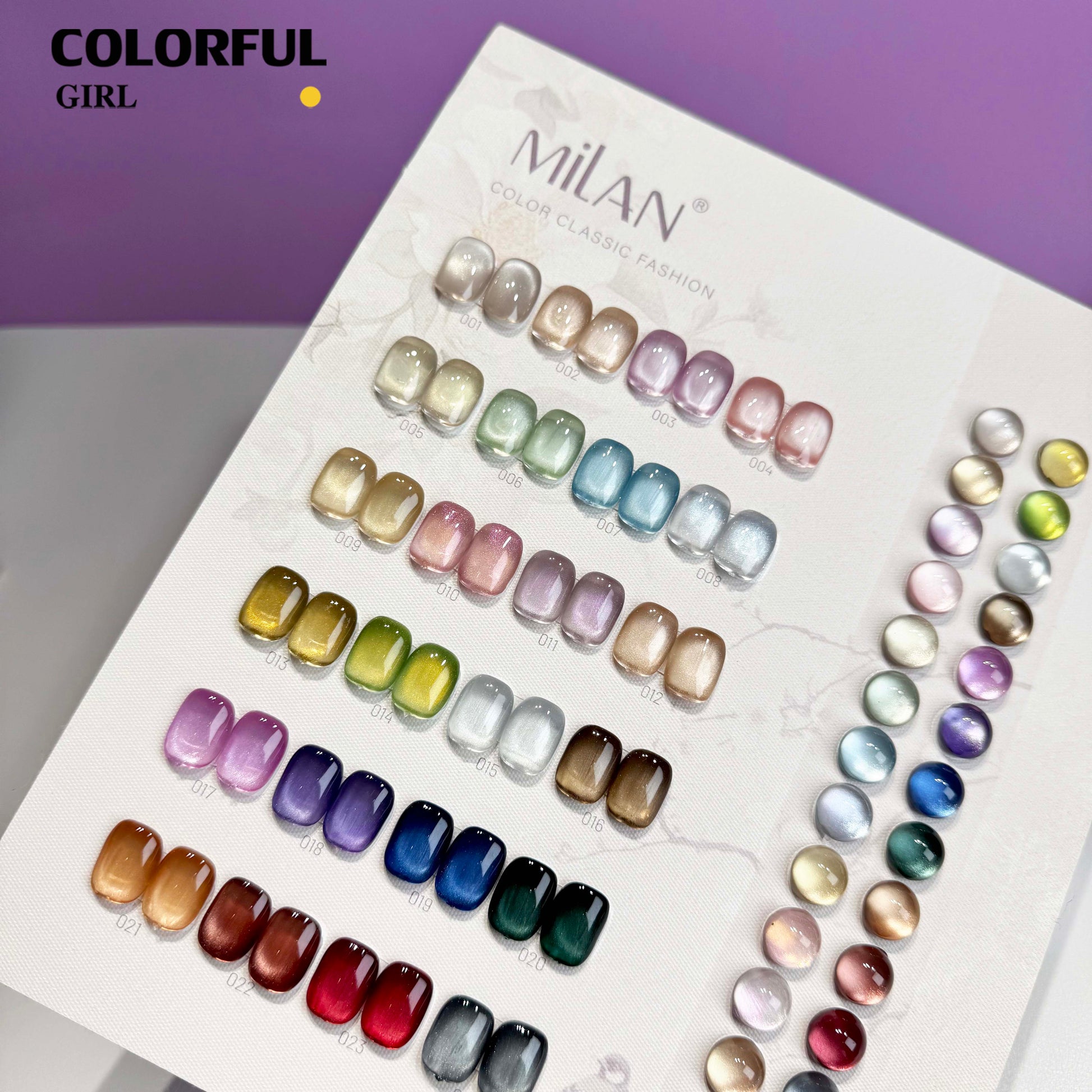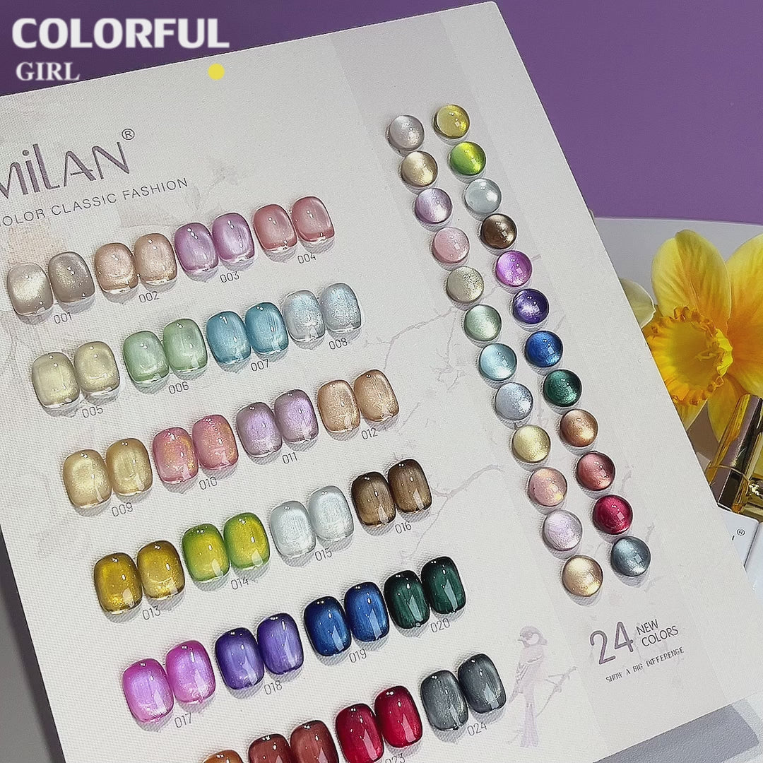 【พร้อมส่ง】MILAN 24สี สีเจลแคทอายเนื้อซาติน สีเจลแคทอาย 24สี สีลูกแก้ว ฟรีชาร์ทสี Cat eye 24สี (แถม ชาร์ทสี ทามาให้แล้ว)สีสวยมาก