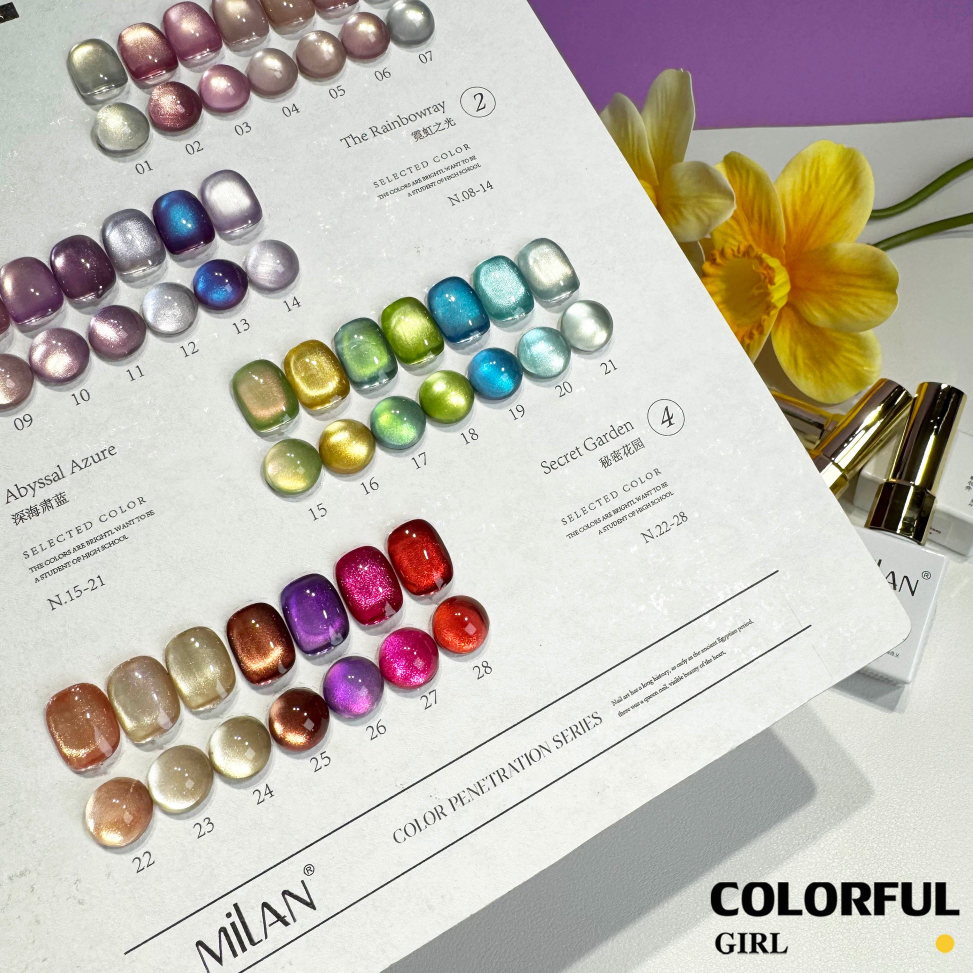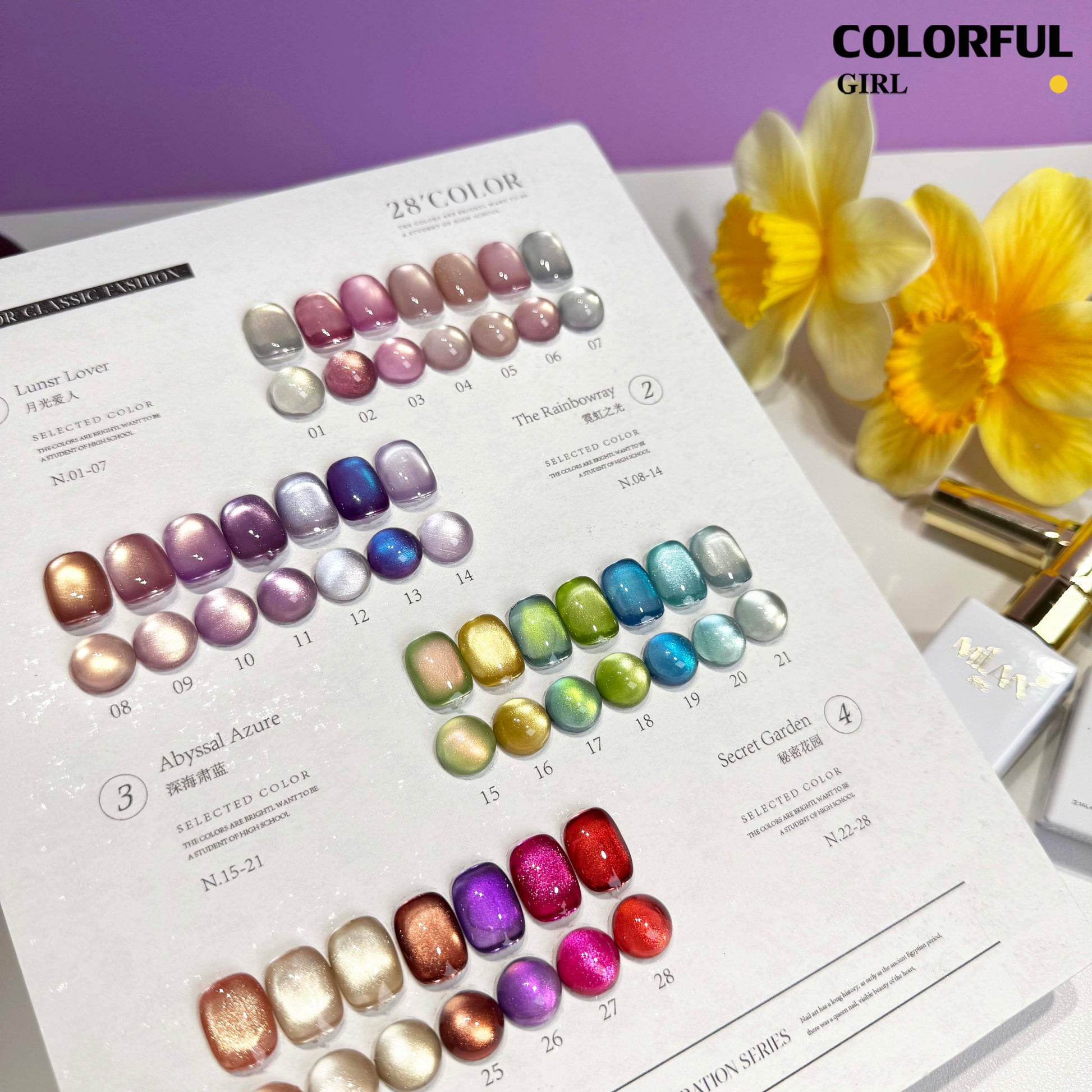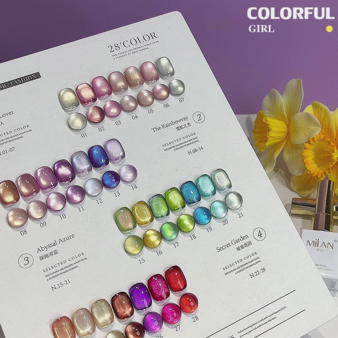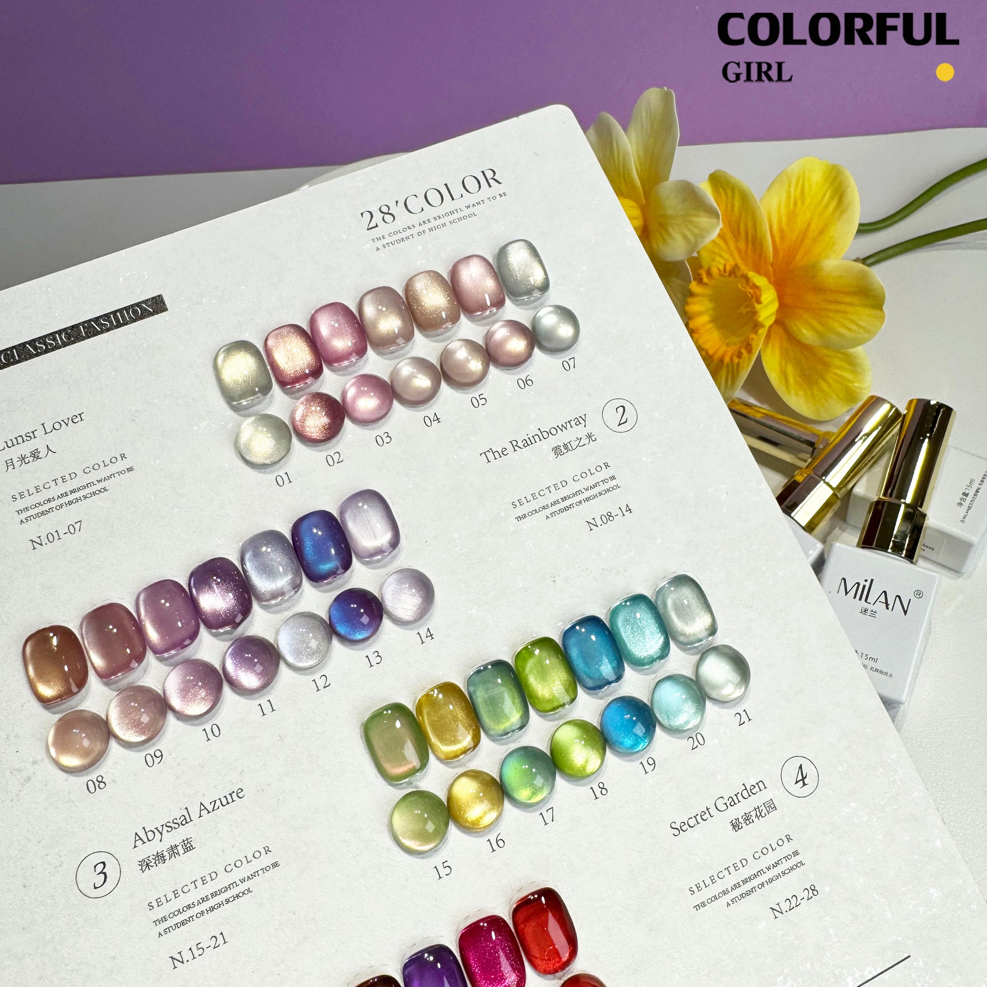 【พร้อมส่ง】MILAN 28สี สีเจลแคทอายเนื้อซาติน สีเจลแคทอาย 28สี สีลูกแก้ว ฟรีชาร์ทสี Cat eye 28สี (แถม ชาร์ทสี ทามาให้แล้ว)