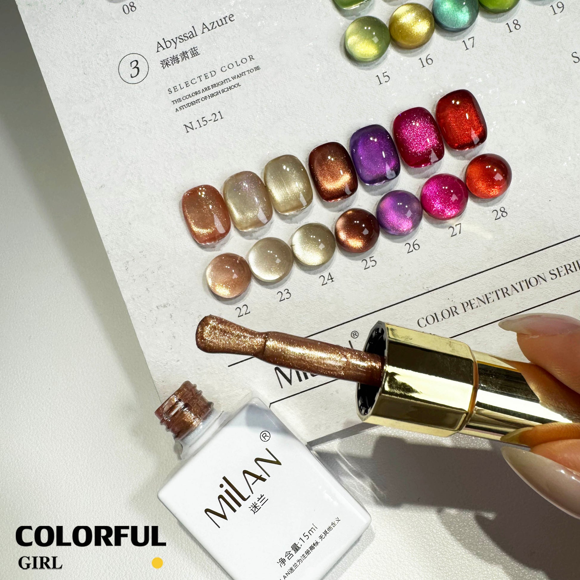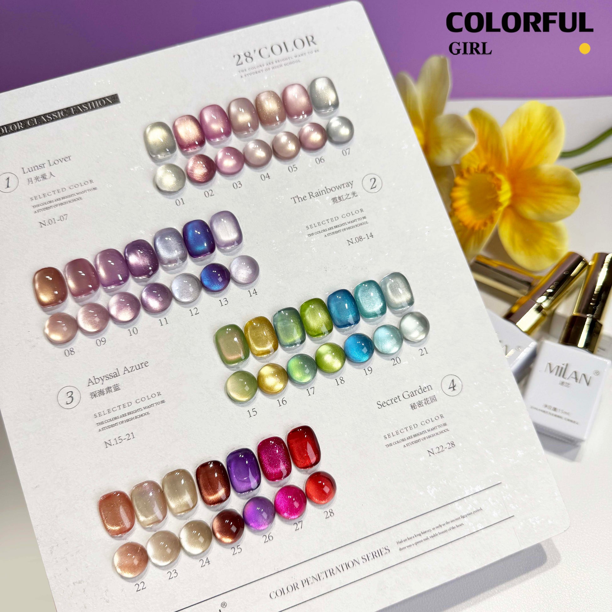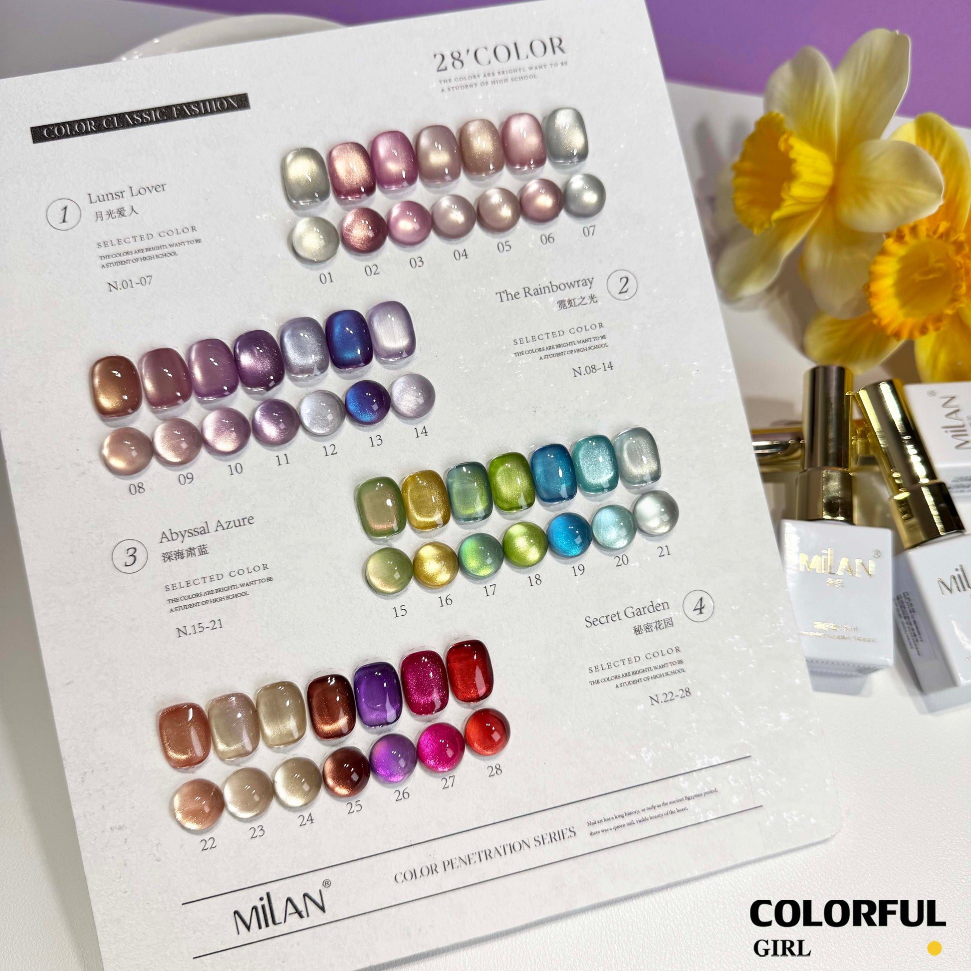 【พร้อมส่ง】MILAN 28สี สีเจลแคทอายเนื้อซาติน สีเจลแคทอาย 28สี สีลูกแก้ว ฟรีชาร์ทสี Cat eye 28สี (แถม ชาร์ทสี ทามาให้แล้ว)