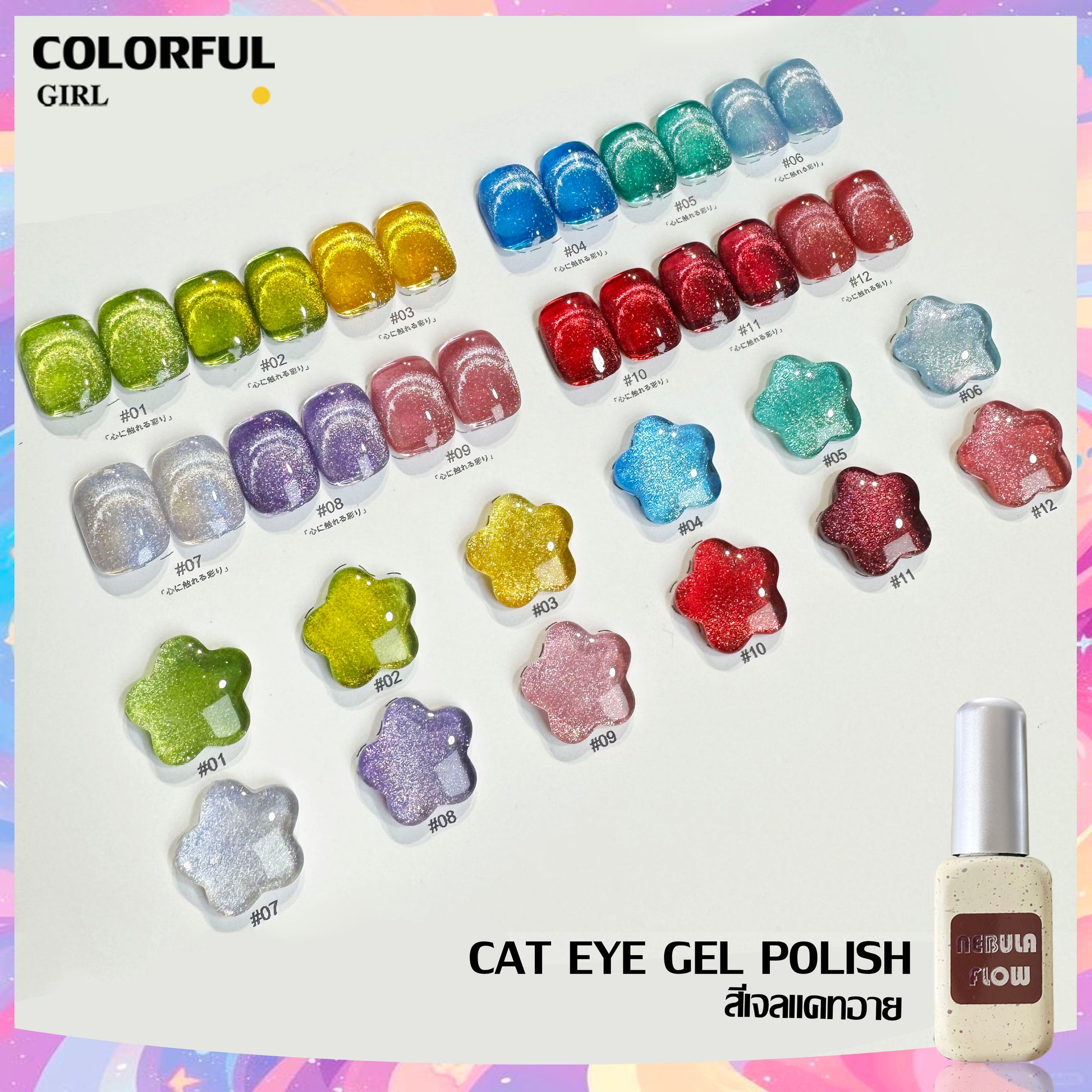 【พร้อมส่ง】NF-001|แบบแยกขวด เบอร์ 1-12 สีลูกแก้ว NebulNFlow |cat eye สีแน่น วิบวับ สวยมาก ต้องอบ ส่งไว