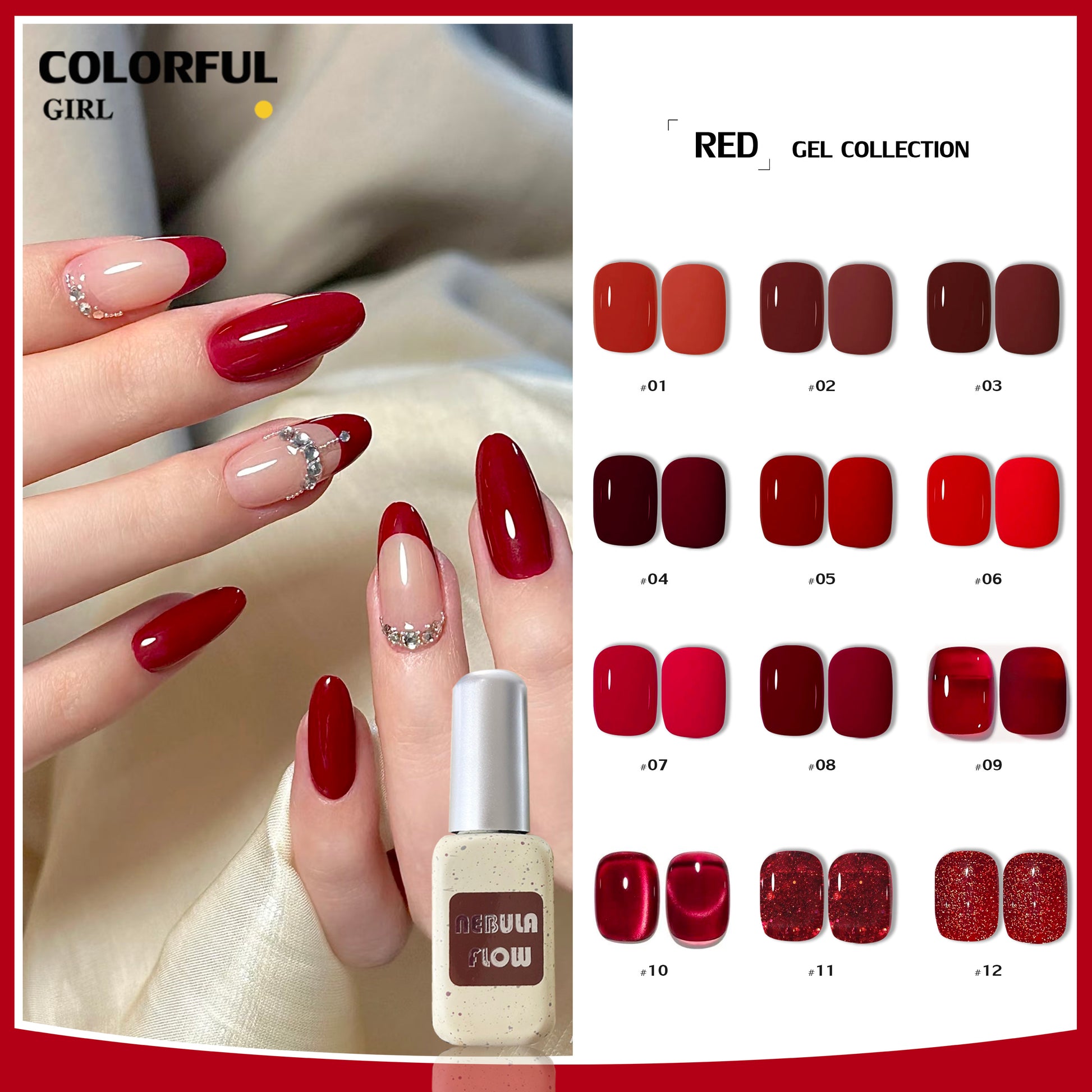 【พร้อมส่ง】NF-007|เบอร์ 1-12 แบบแยกขวด สีเจลสีแดง NebulNFlow| สีเจลสีพื้น/สีเจลแคทอาย/สีเจลกลิซเตอร์/สีเจลไซรัป วิบวับ สีแน่น ต้องอบ สวยมาก "