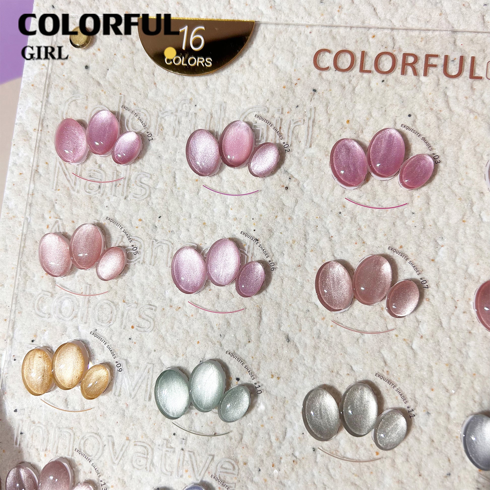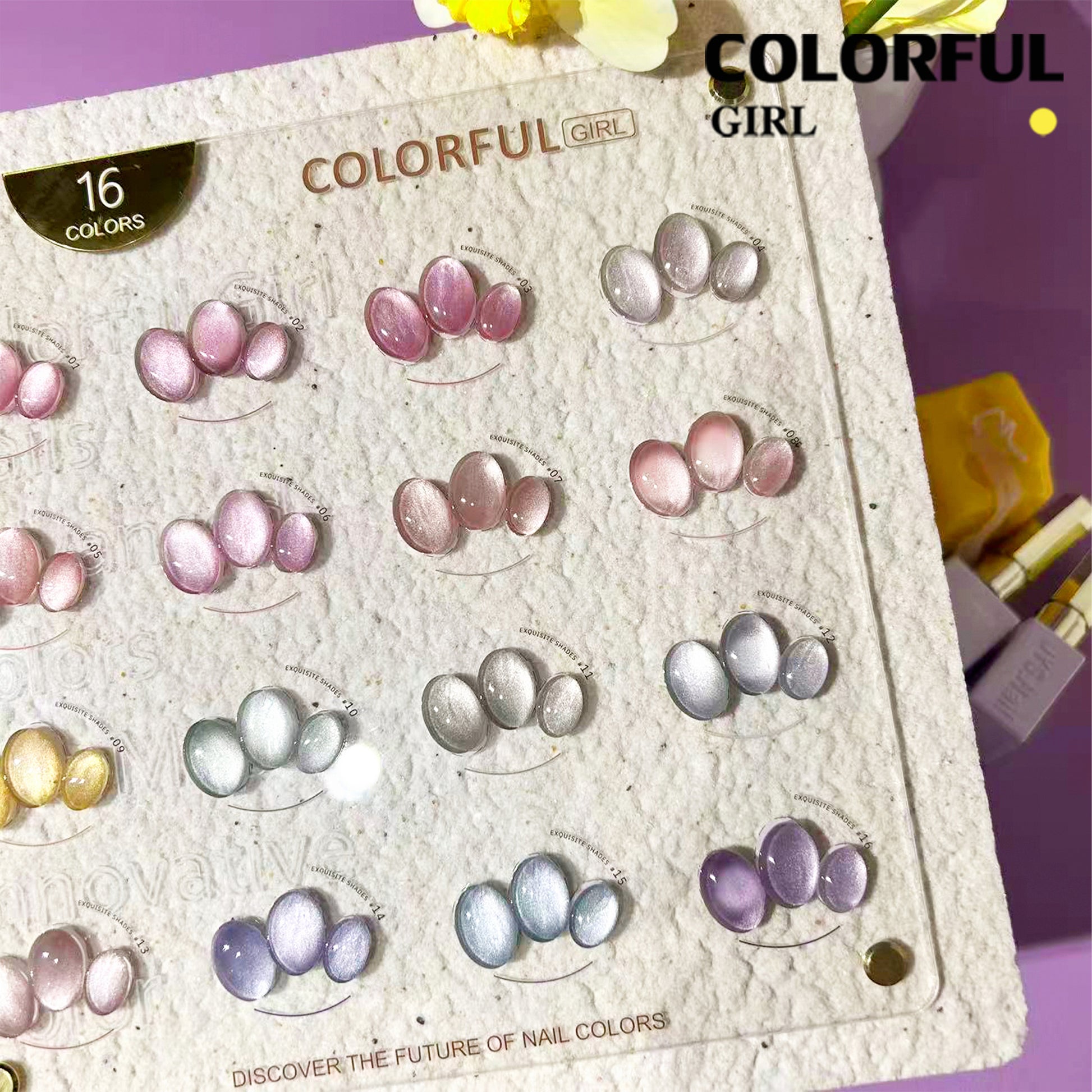 【พร้อมส่ง】Colorful Girl 16 สี เจลแคทอายผิวซาตินมุก เนื้อเจลแคทอาย ซาติน 16 สี สีลูกแก้ว พร้อมแถมชาร์ทสี (ทาให้แล้ว) สีสวย เงางาม เม็ดสีแน่นชัด