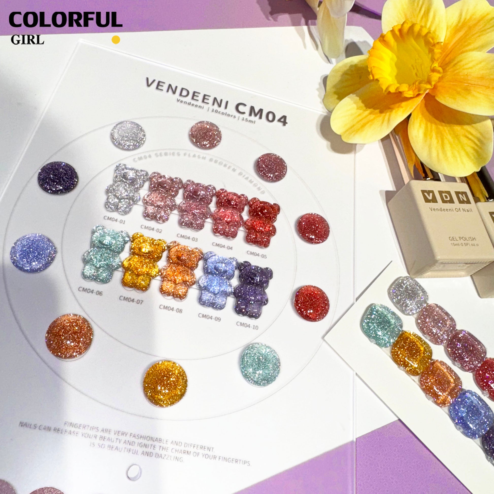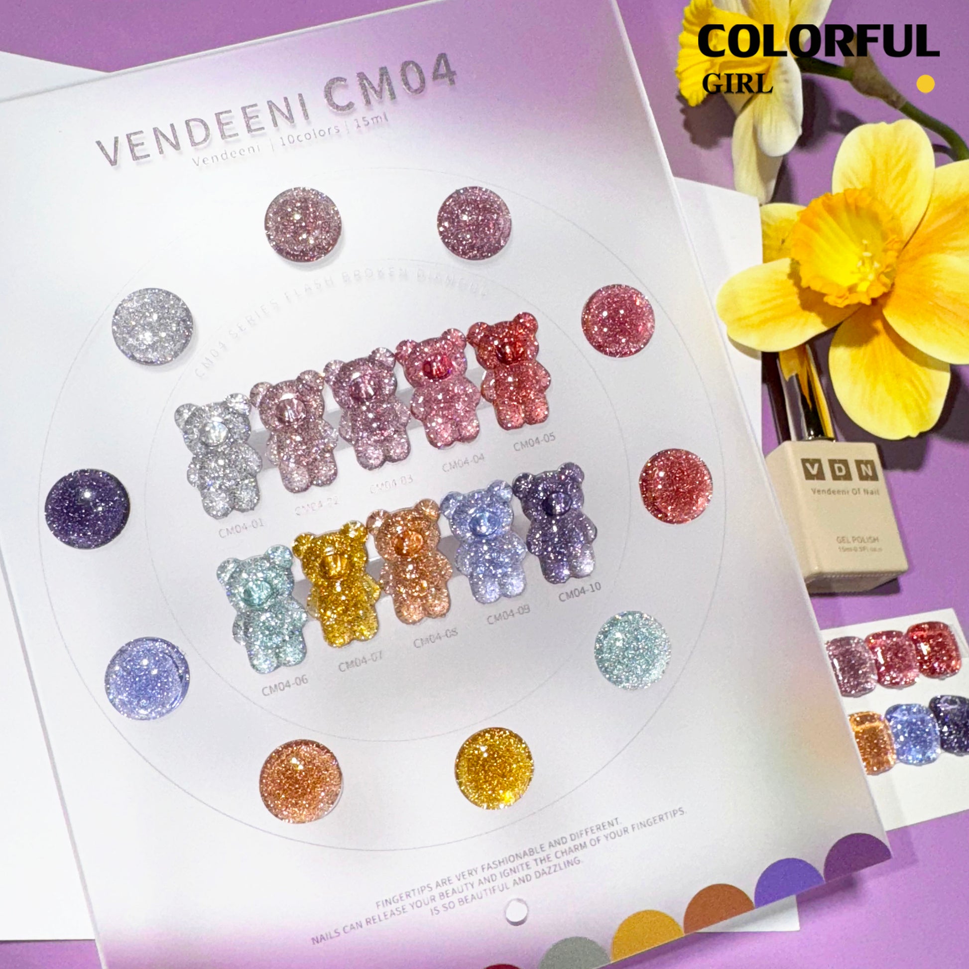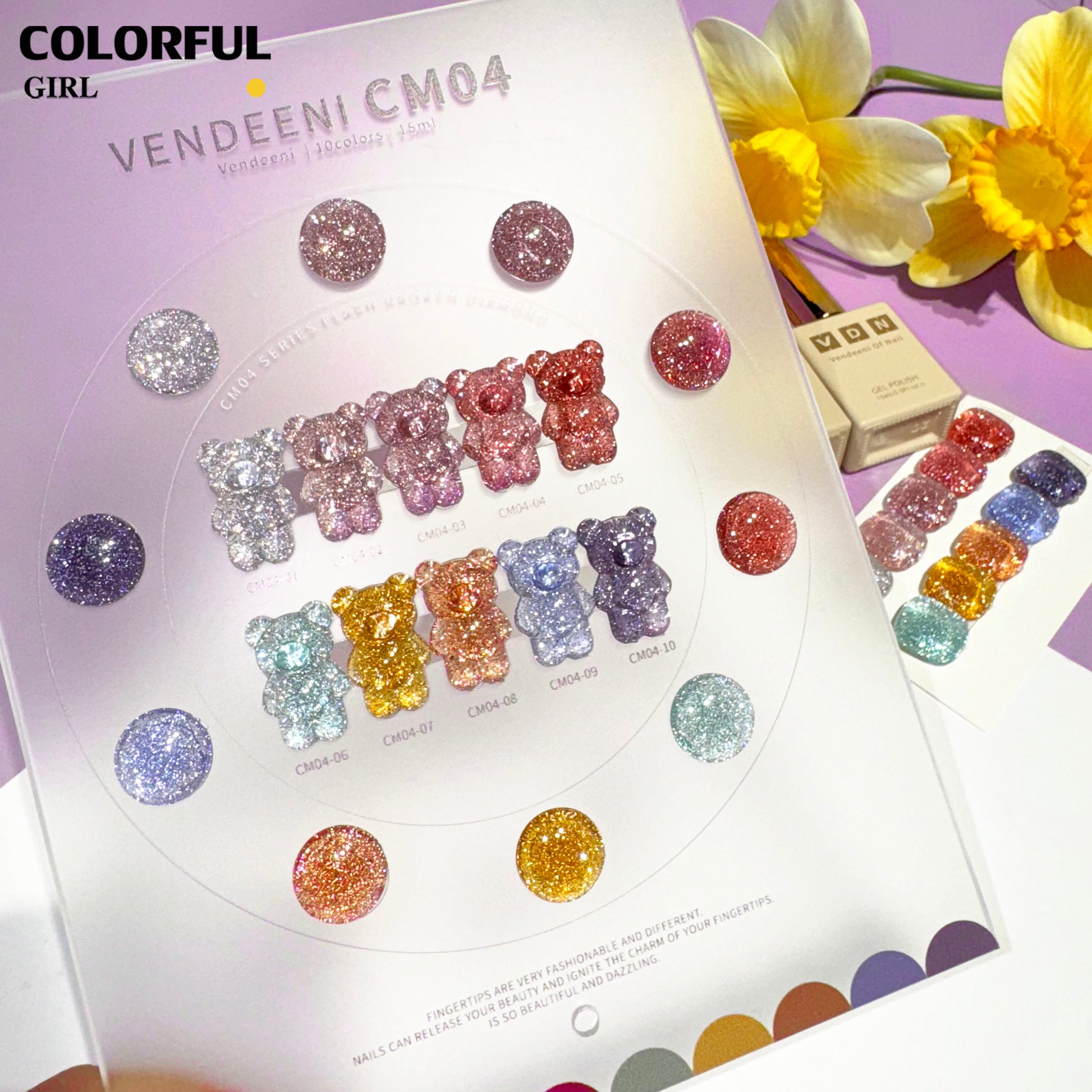 【พร้อมส่ง】VENDEENI สีเจลแฟลช 10สี (《VENDEENI CM04》)สีเจลทาเล็บ สี แถม ชาร์ทสี ยาทาเล็บเจล ชุดสี 10สี + ฟรีชาร์ทสี