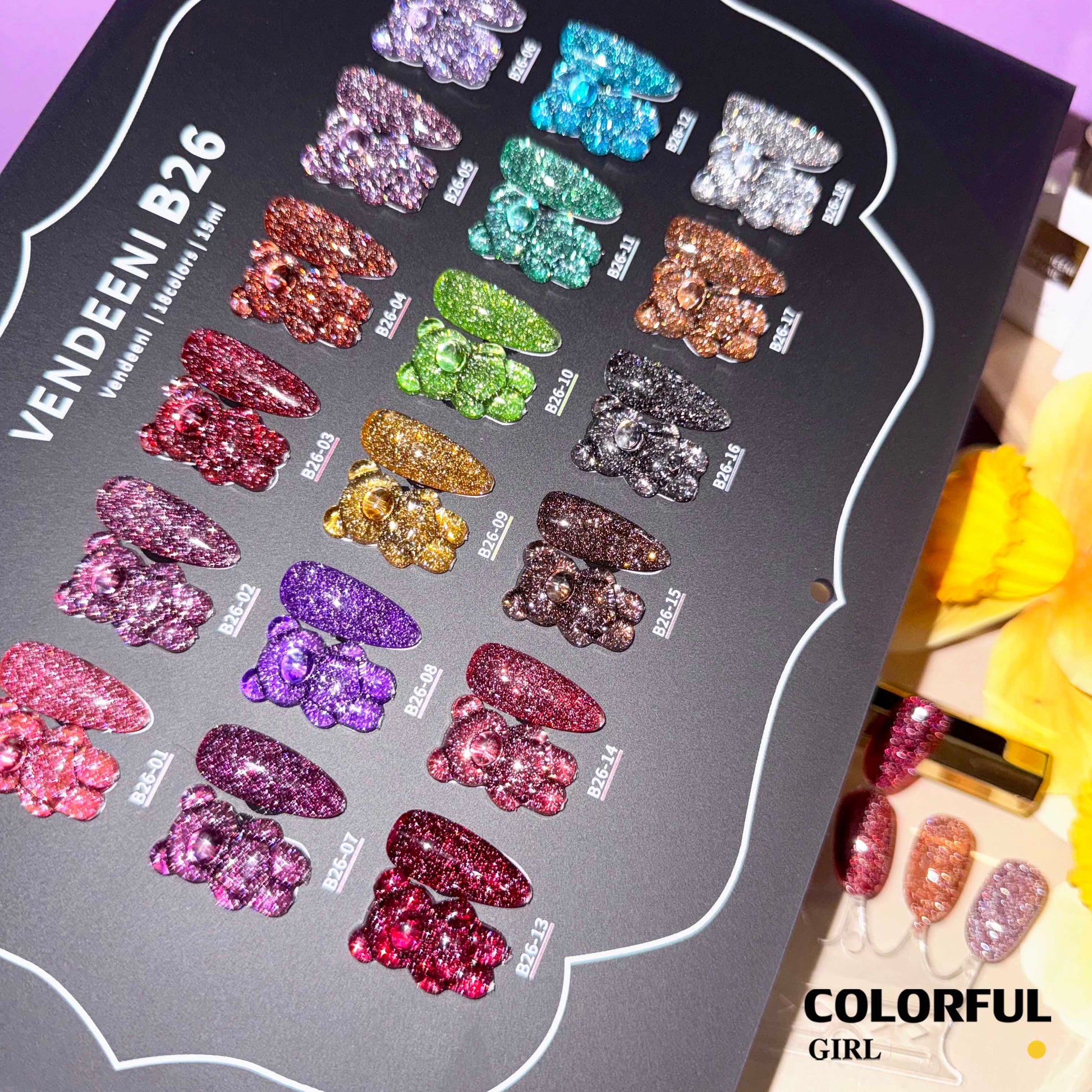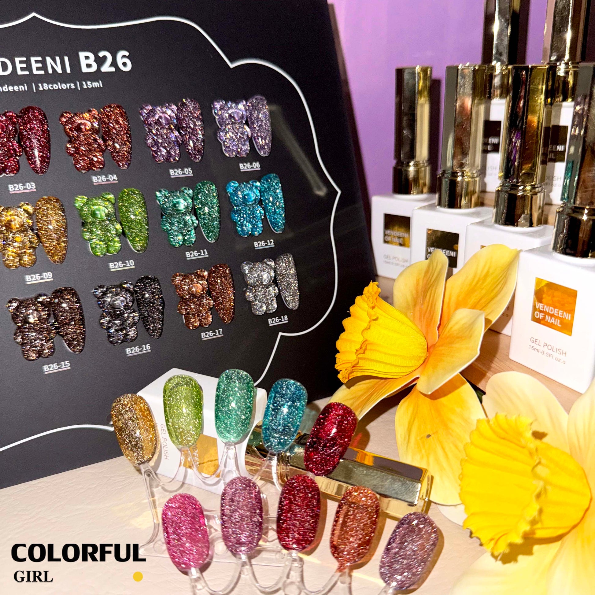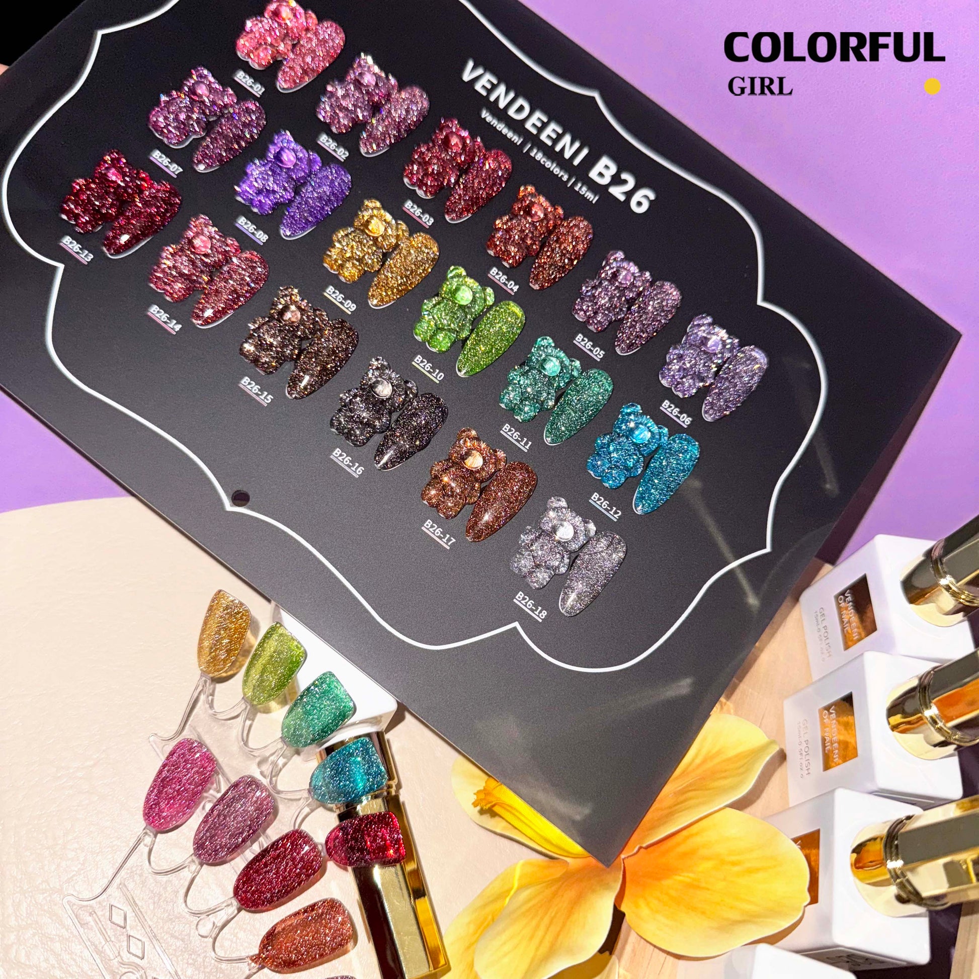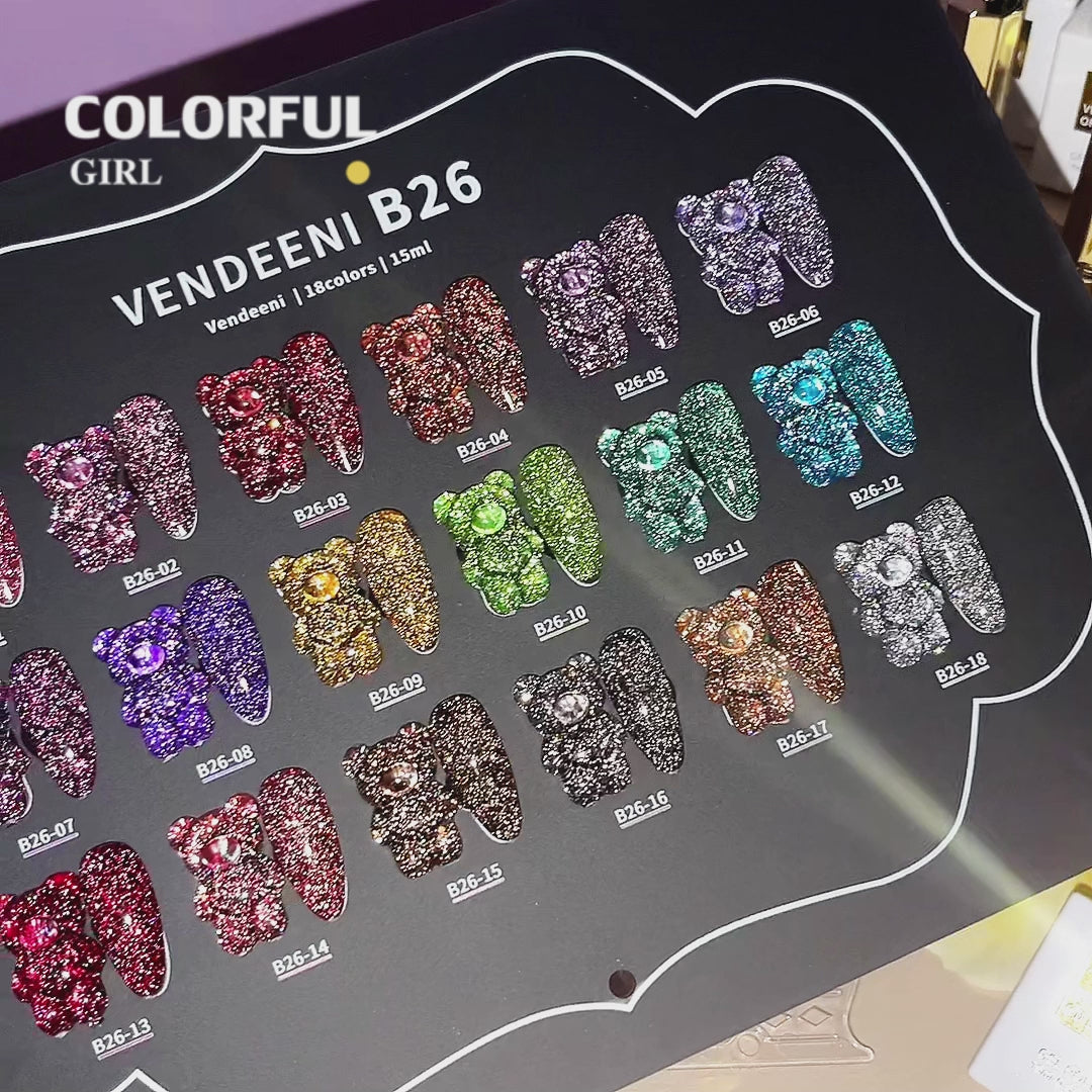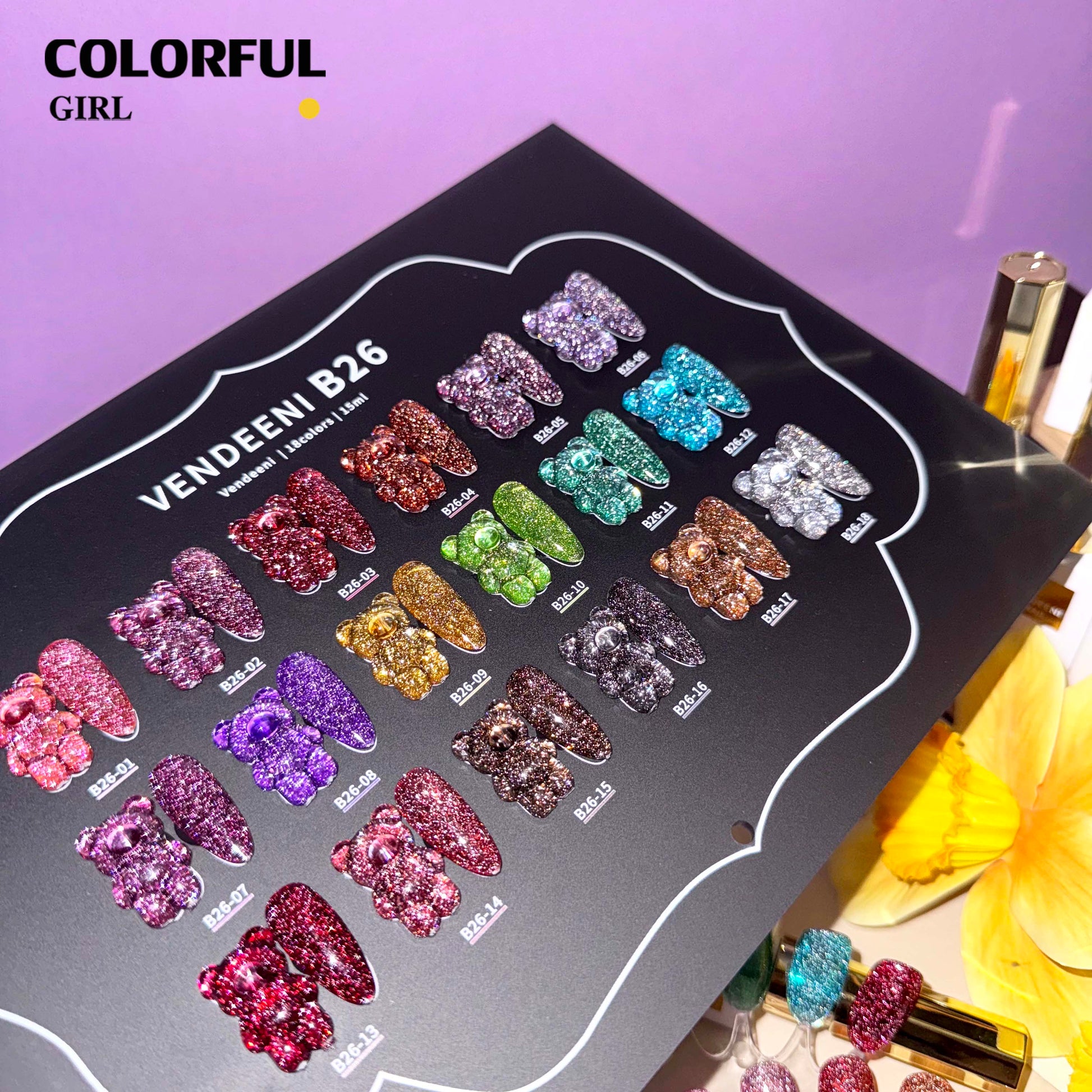 【พร้อมส่ง】VENDEENI สีเจลแฟลช 18สี (VENDEENI B26)สีเจลทาเล็บ สี แถม ชาร์ทสี ยาทาเล็บเจล ชุดสี 18สี + ฟรีชาร์ทสี พร้อมชาร์ทสีค่ะสีแน่นสวยมากเลยนะคะ เอฟเฟกต์มันเงามาก