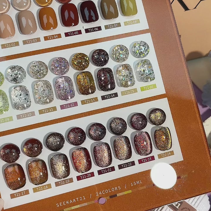 【พร้อมส่ง】VENDEENI 24 สี (VENDEENI ) เซทสีเจล เอิทโทน คาราเมลโทน สีเจลทาเล็บ สีแฟลชสีเจล สีเจลแคทอาย แถมชาร์ทสี