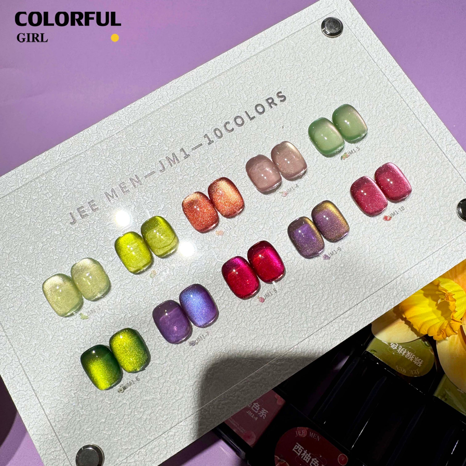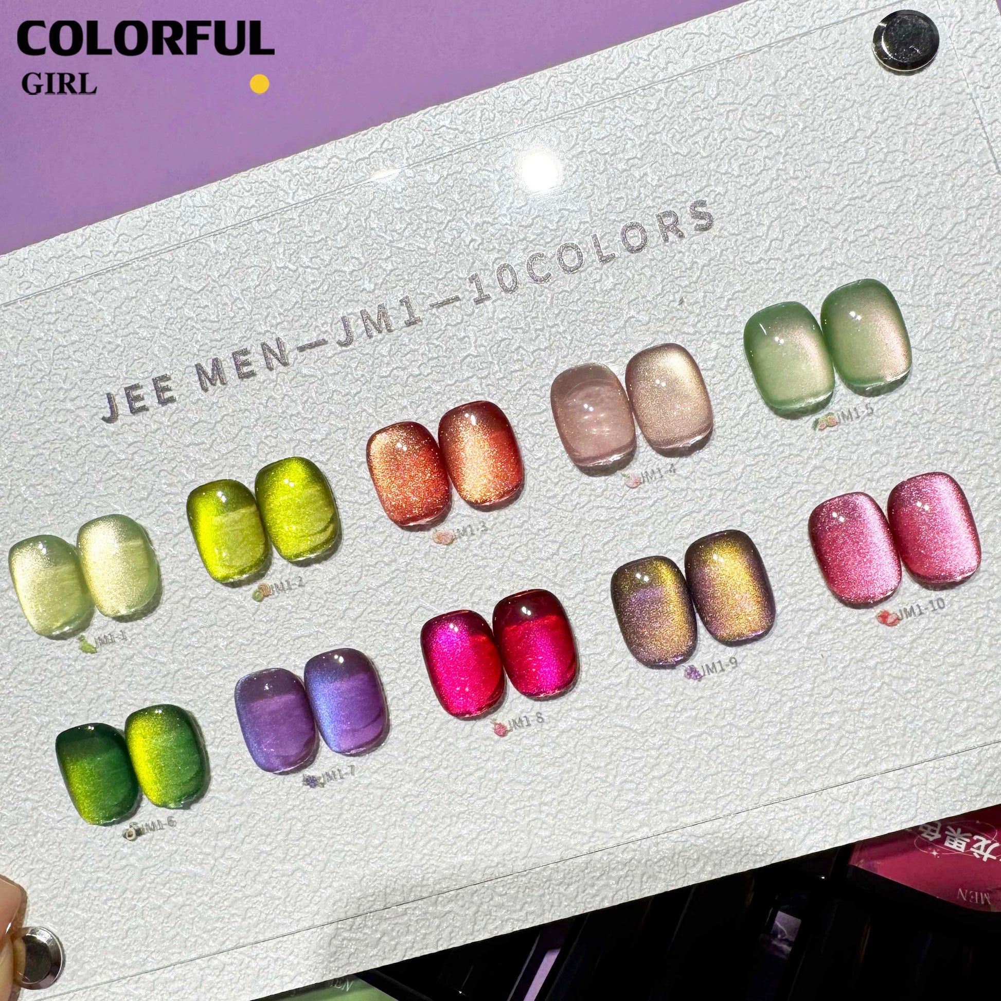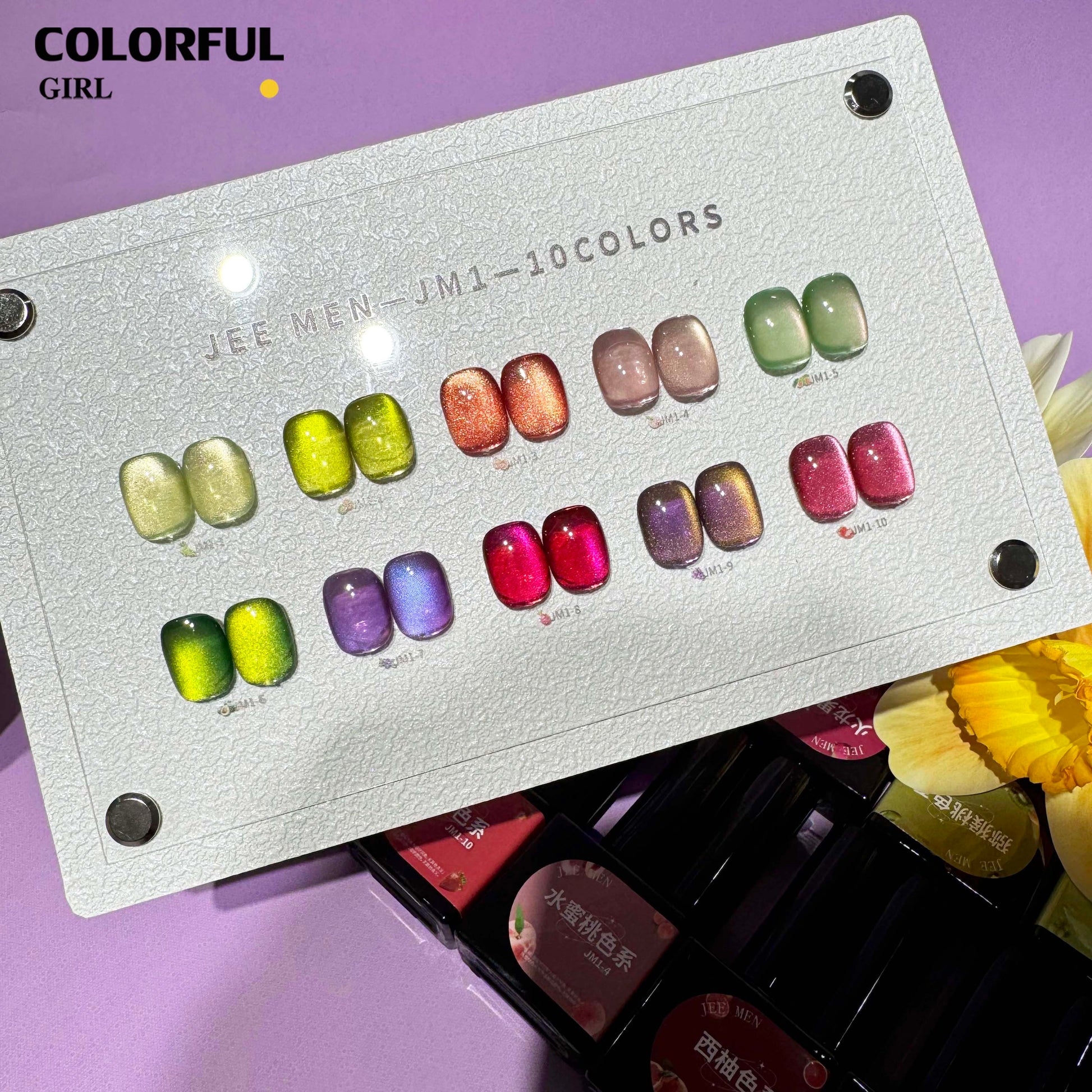 【พร้อมส่ง】VENDEENI JM01 10สี สีเจลแคทอายเนื้อซาติน+สีเจลแคทอาย 10สี สีลูกแก้ว ฟรีชาร์ทสี Cat eye 10สี (แถม ชาร์ทสี ทามาให้แล้ว) เจลหินอ่อนโทนผลไม้ ผิวซาตินนุ่มละมุน สีหวานละไมสุดหรู