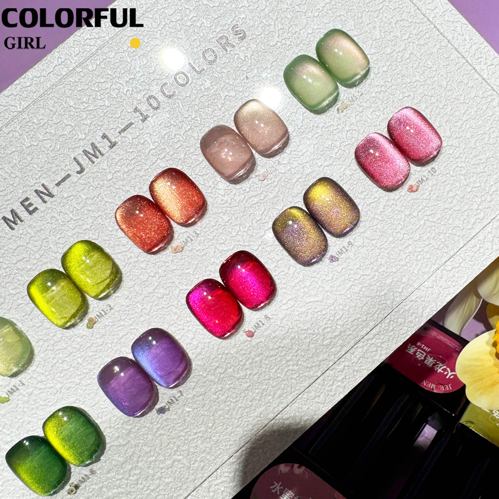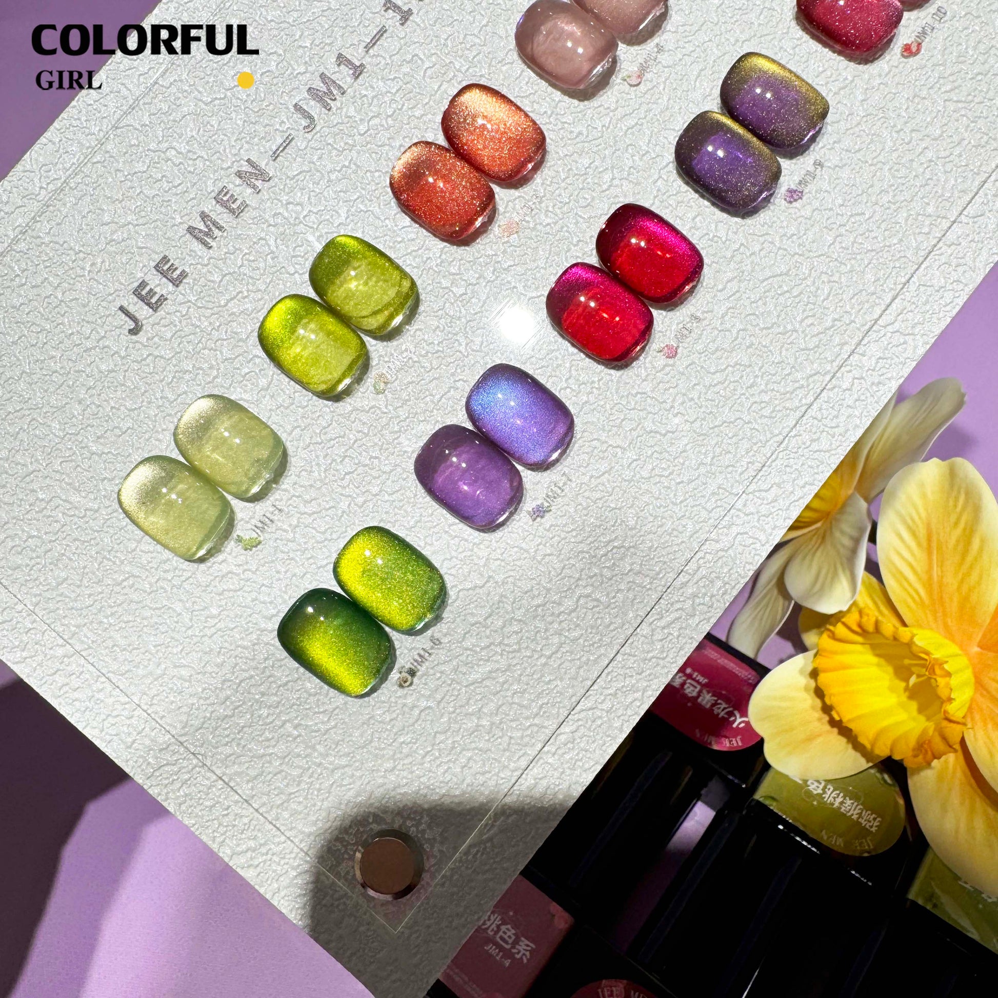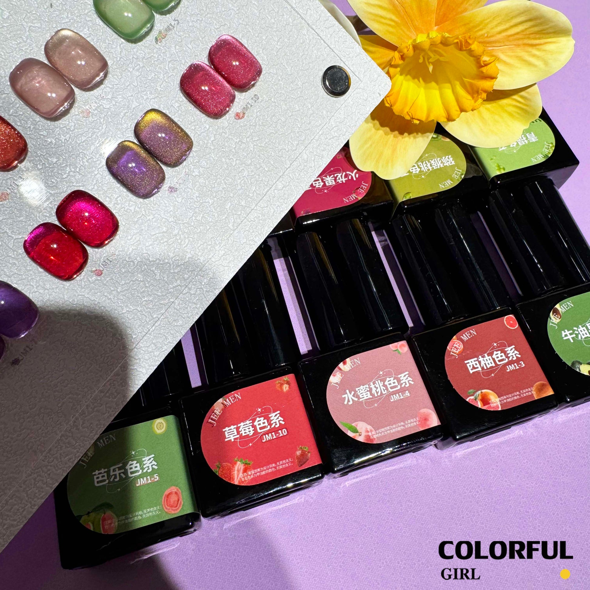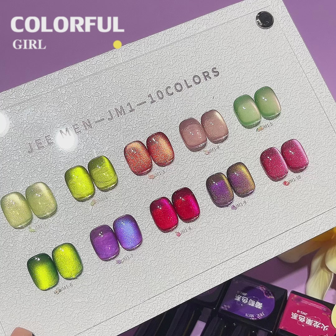 【พร้อมส่ง】VENDEENI JM01 10สี สีเจลแคทอายเนื้อซาติน+สีเจลแคทอาย 10สี สีลูกแก้ว ฟรีชาร์ทสี Cat eye 10สี (แถม ชาร์ทสี ทามาให้แล้ว) เจลหินอ่อนโทนผลไม้ ผิวซาตินนุ่มละมุน สีหวานละไมสุดหรู