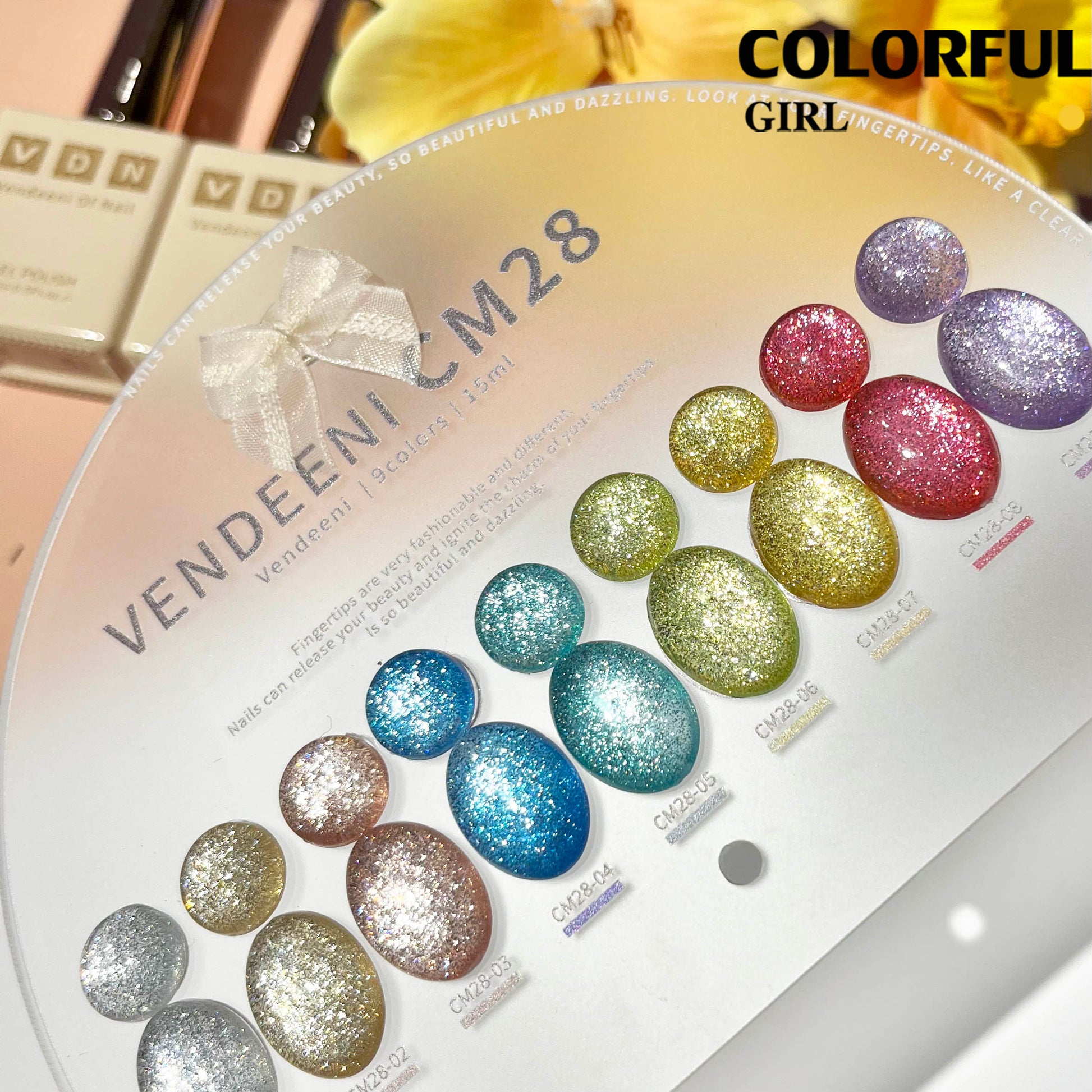 พร้อมส่ง《 VENDEENI VDN-CM28》9สี พร้อมชาร์ทสีค่ะสีแน่นสวยมากเลยนะคะ สีเจลแฟลชกลิตเตอร์ แพลตติมันแฟลช+ประกายออโรร่า กากเพชรชัด แน่น