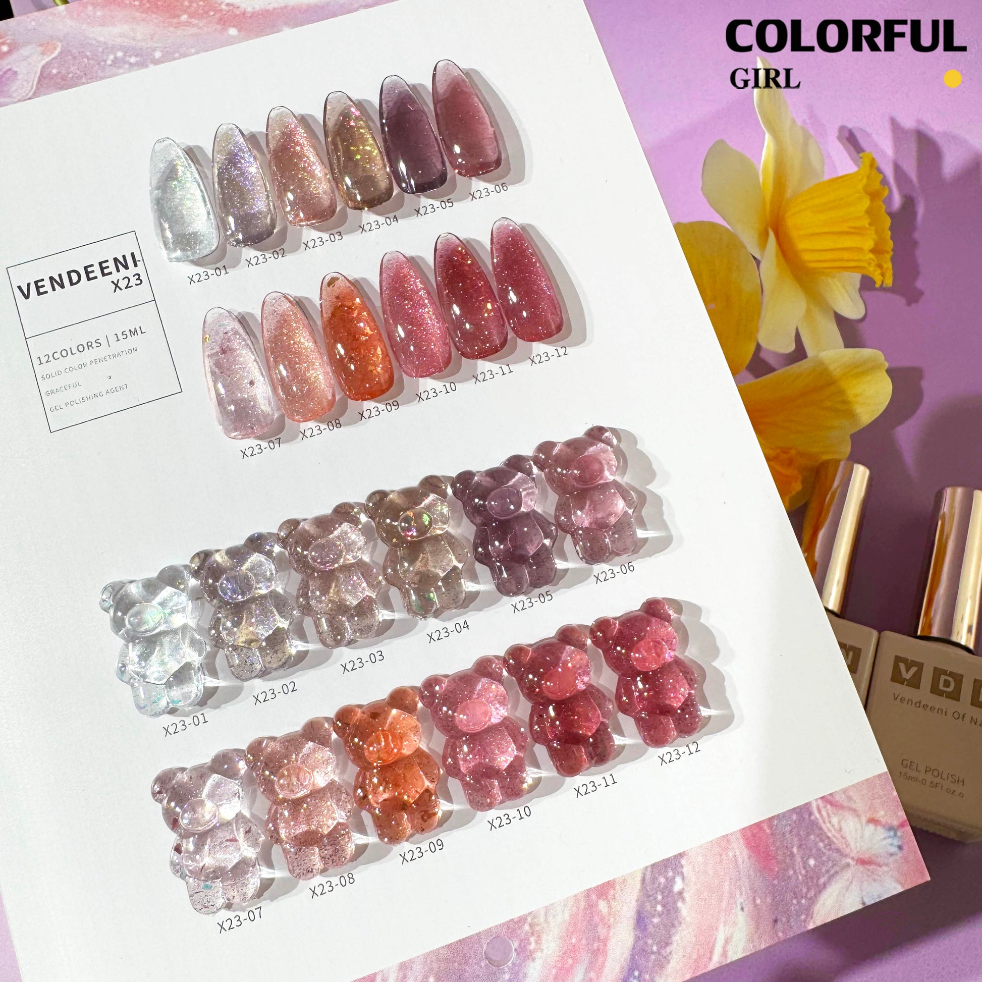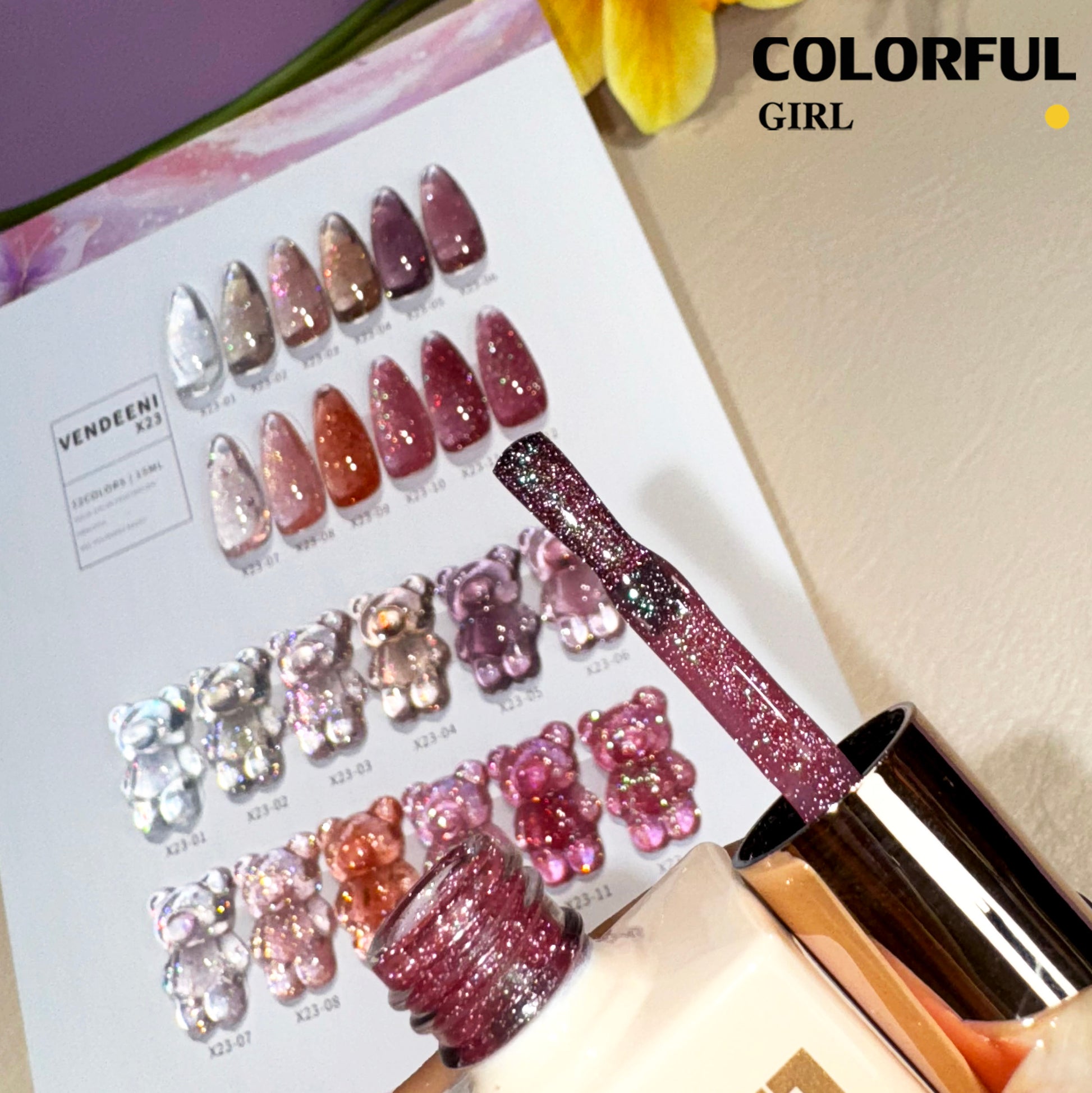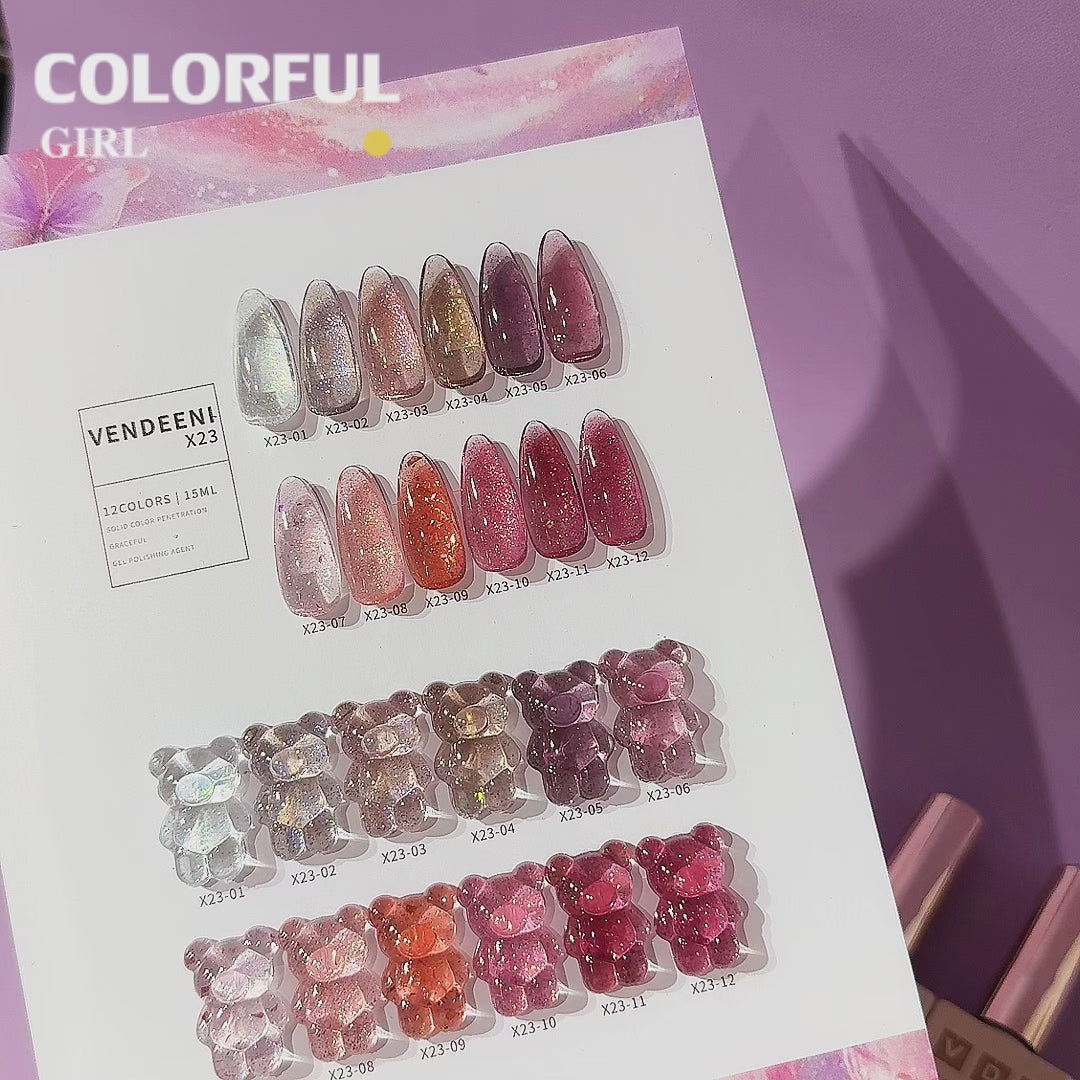 【พร้อมส่ง】VENDEENI VDN-X23สีเจลแฟลช ผงกากเพชรแฟนซี 12 สี ✨ สีสวยระยิบระยับ เงางามเหมือนคริสตัล เม็ดสีแน่นชัด ติดทนนาน(ทามาให้แล้ว พร้อมใช้งาน)