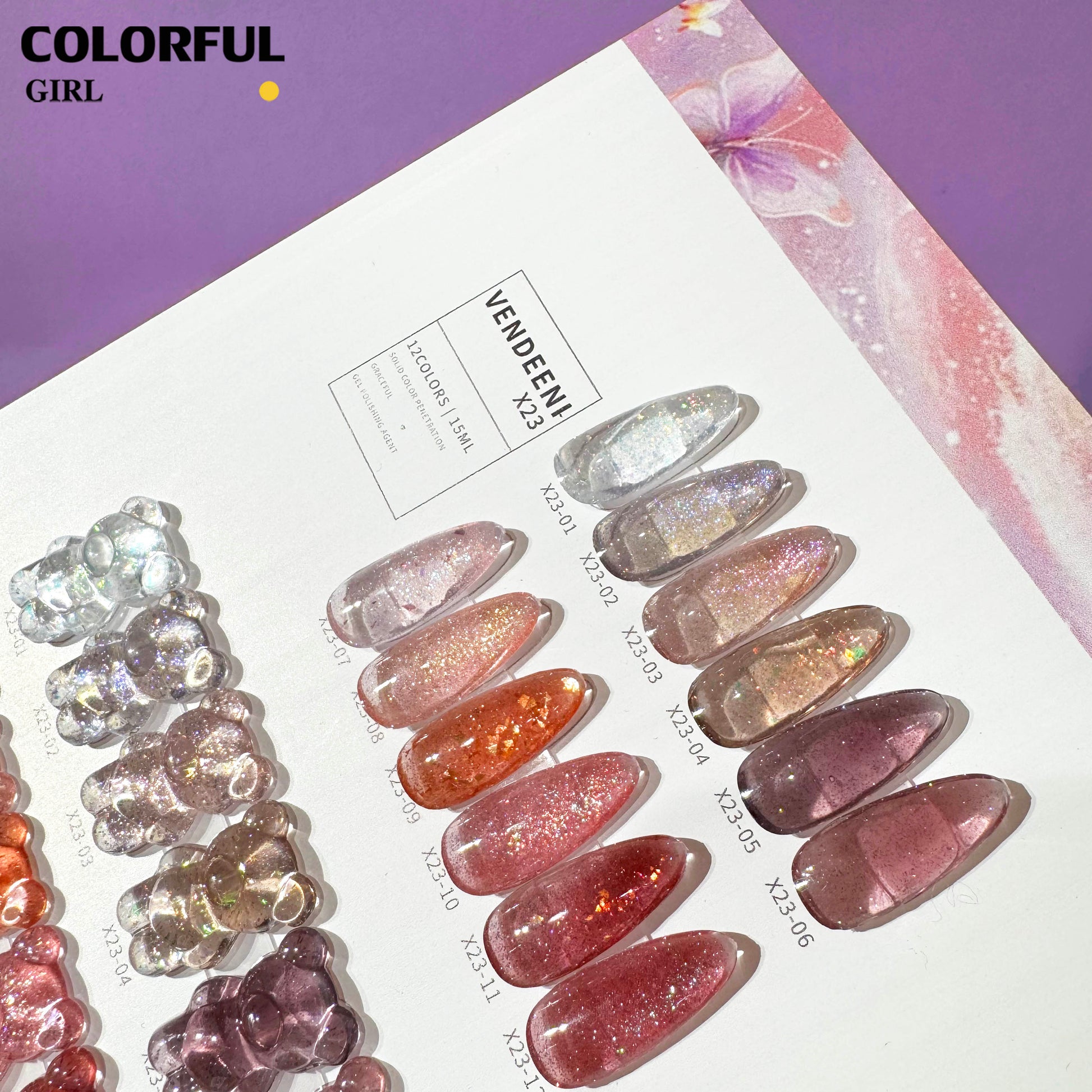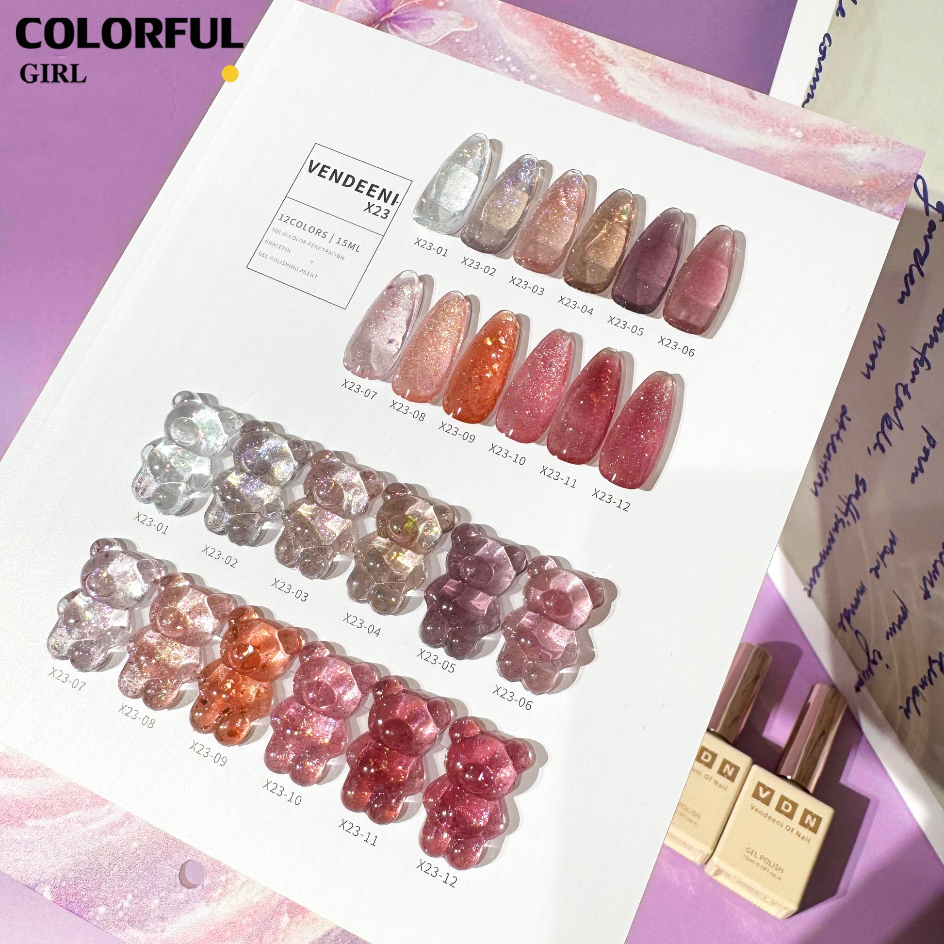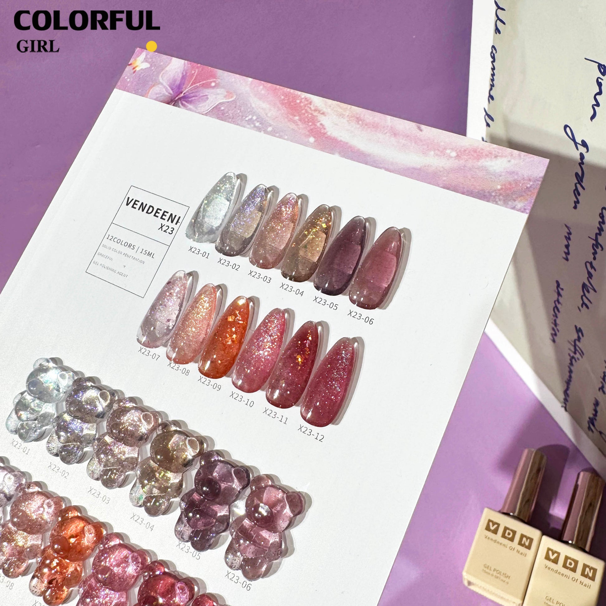【พร้อมส่ง】VENDEENI VDN-X23สีเจลแฟลช ผงกากเพชรแฟนซี 12 สี ✨ สีสวยระยิบระยับ เงางามเหมือนคริสตัล เม็ดสีแน่นชัด ติดทนนาน(ทามาให้แล้ว พร้อมใช้งาน)