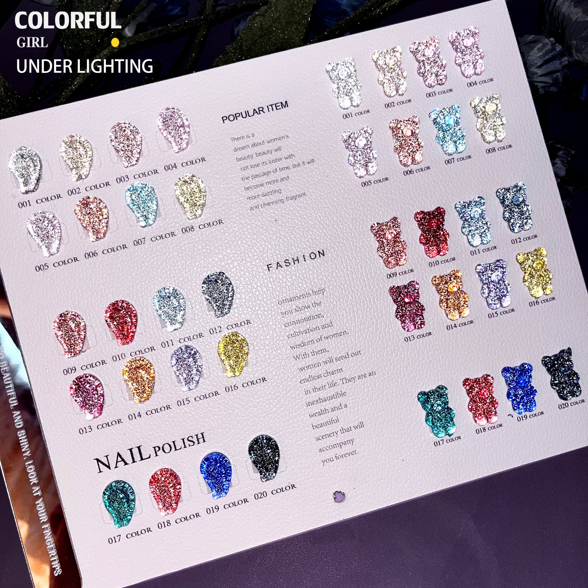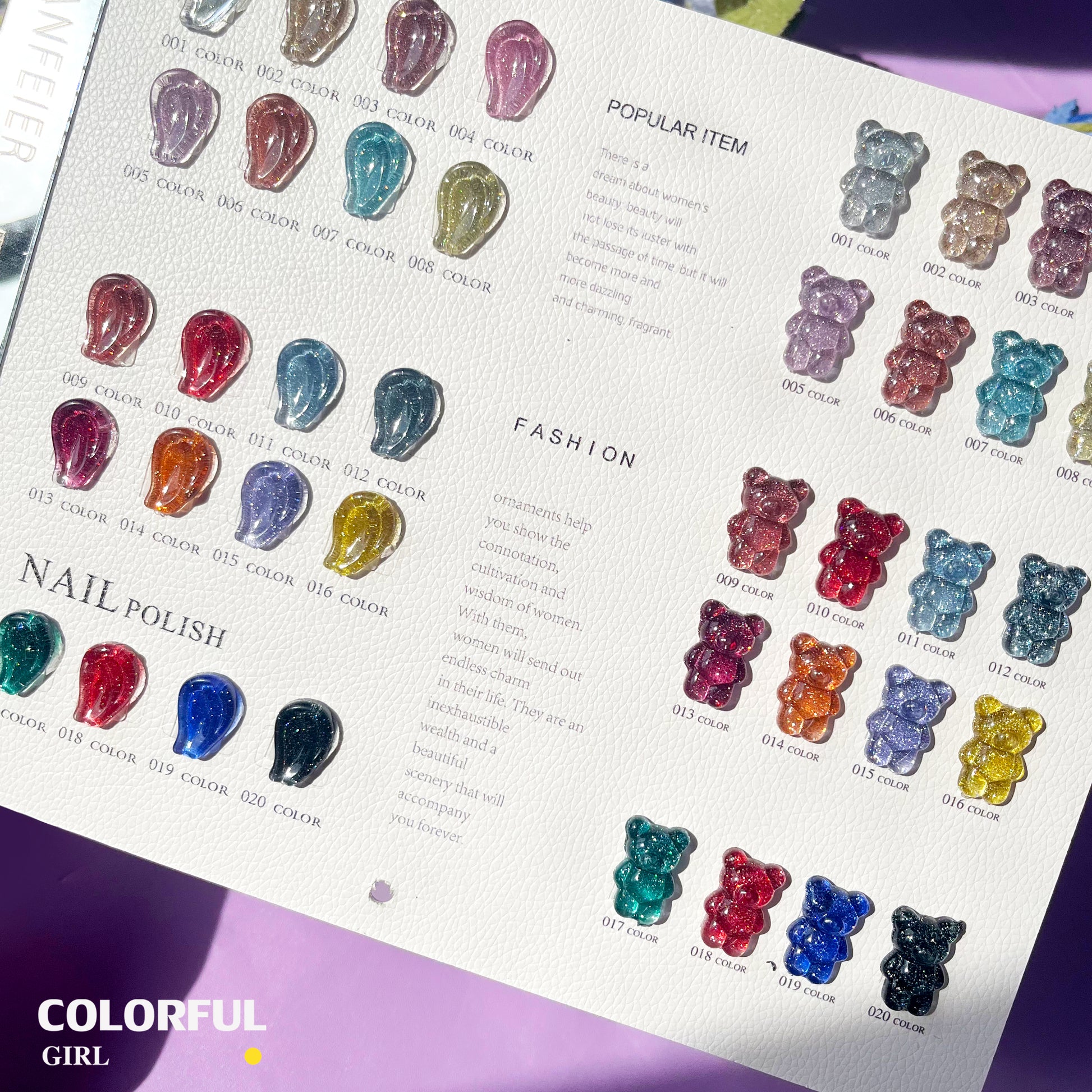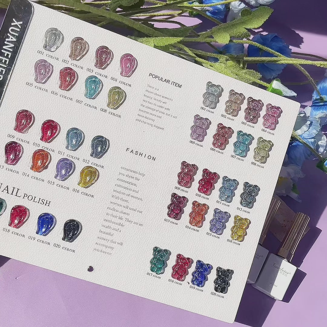 【พร้อมส่ง】XUANFEIER สีเจลแฟลช 20 สี (XUANFEIER)สีเจลทาเล็บ สี แถม ชาร์ทสี ยาทาเล็บเจล