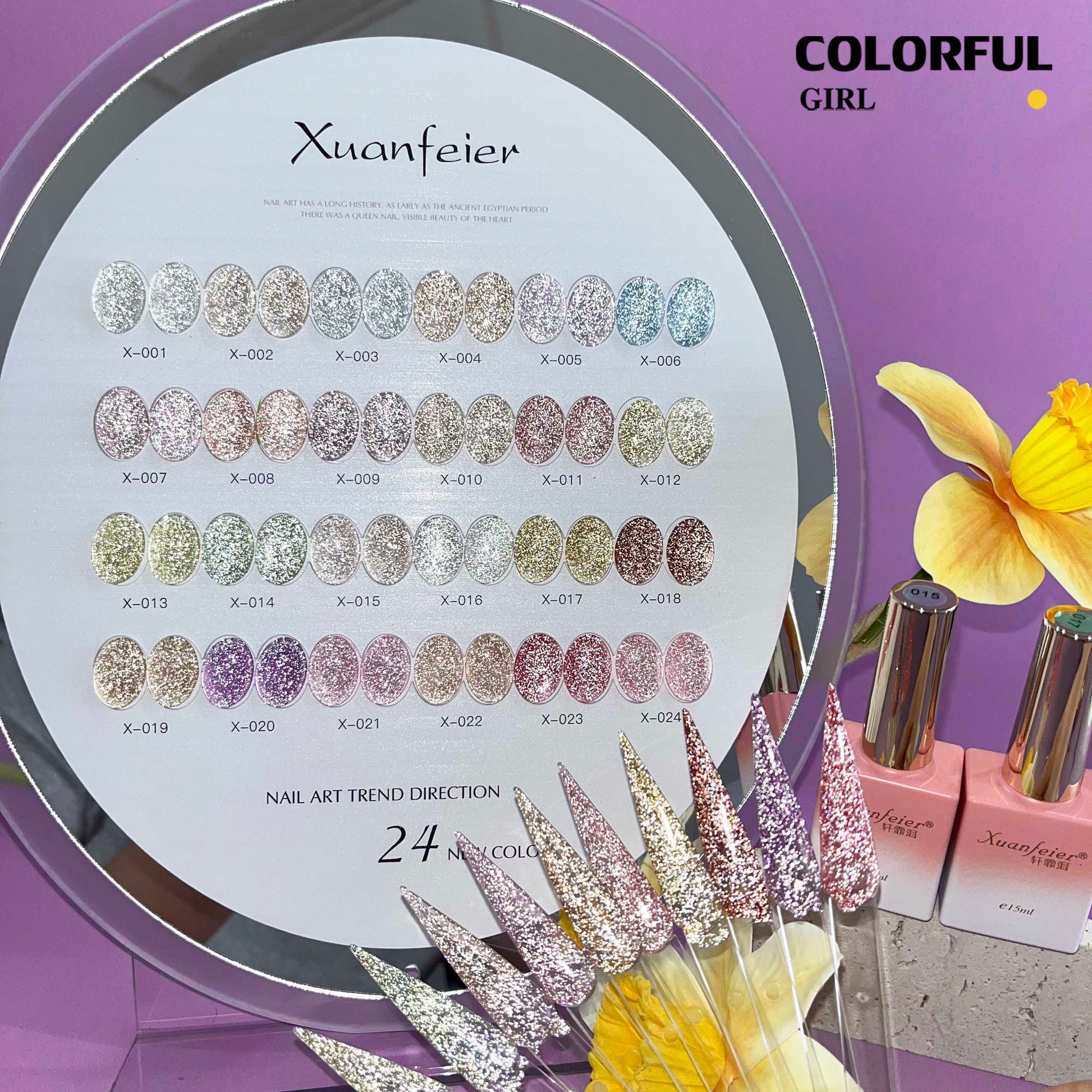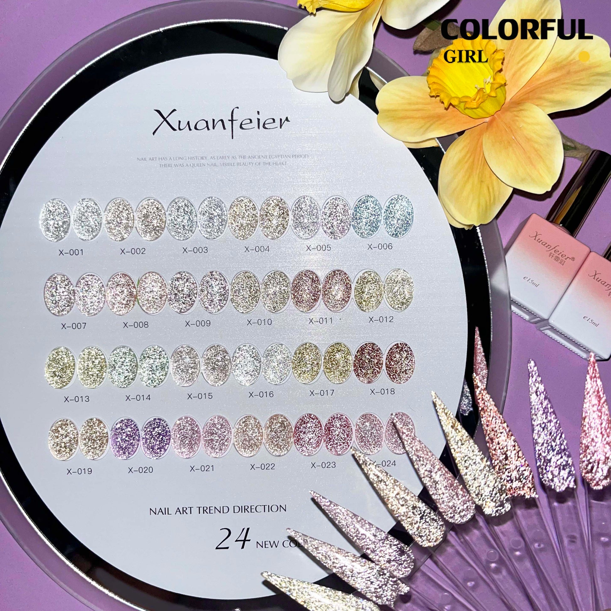 【พร้อมส่ง】XUANFEIER สีเจลแฟลช 24สี (XUANFEIER)สีเจลทาเล็บ สี แถม ชาร์ทสี ยาทาเล็บเจล ชุดสี 20สี + ฟรีชาร์ทสี