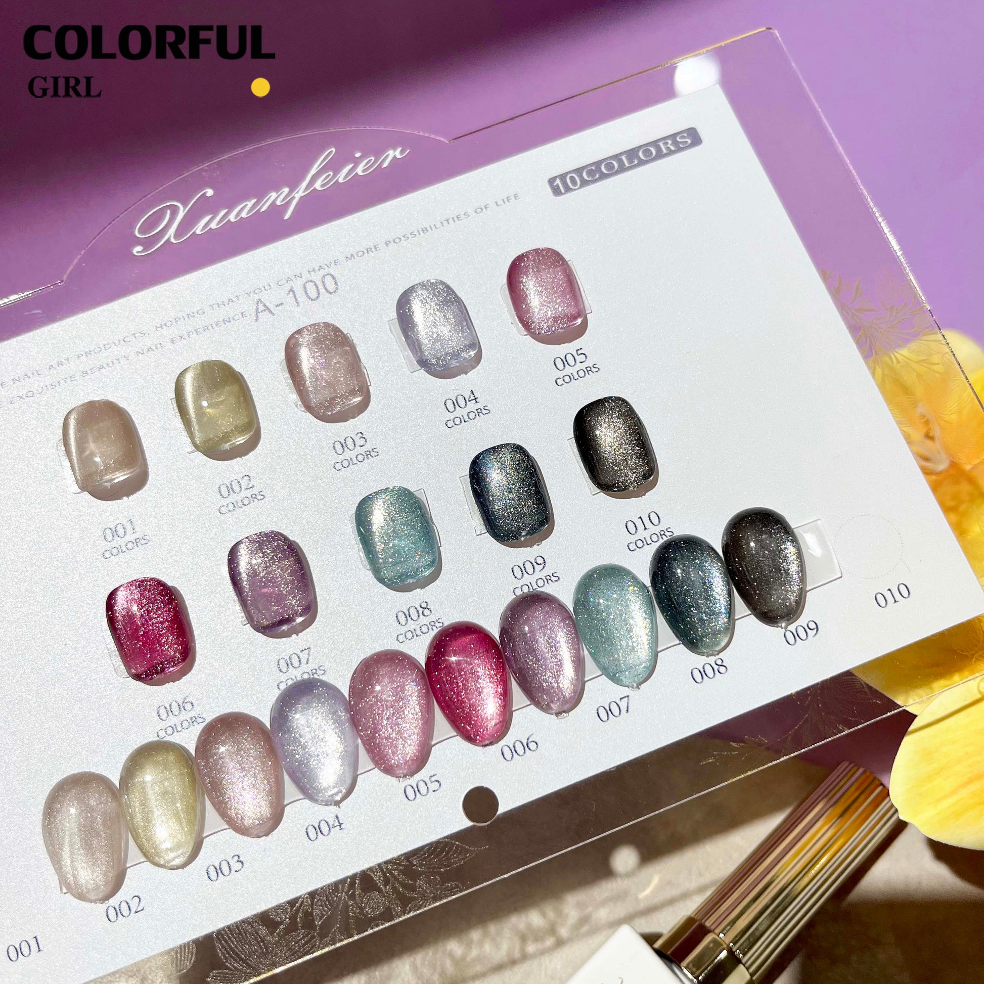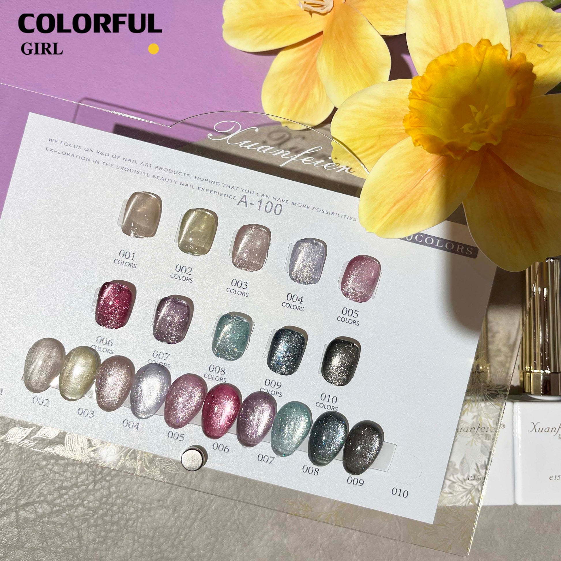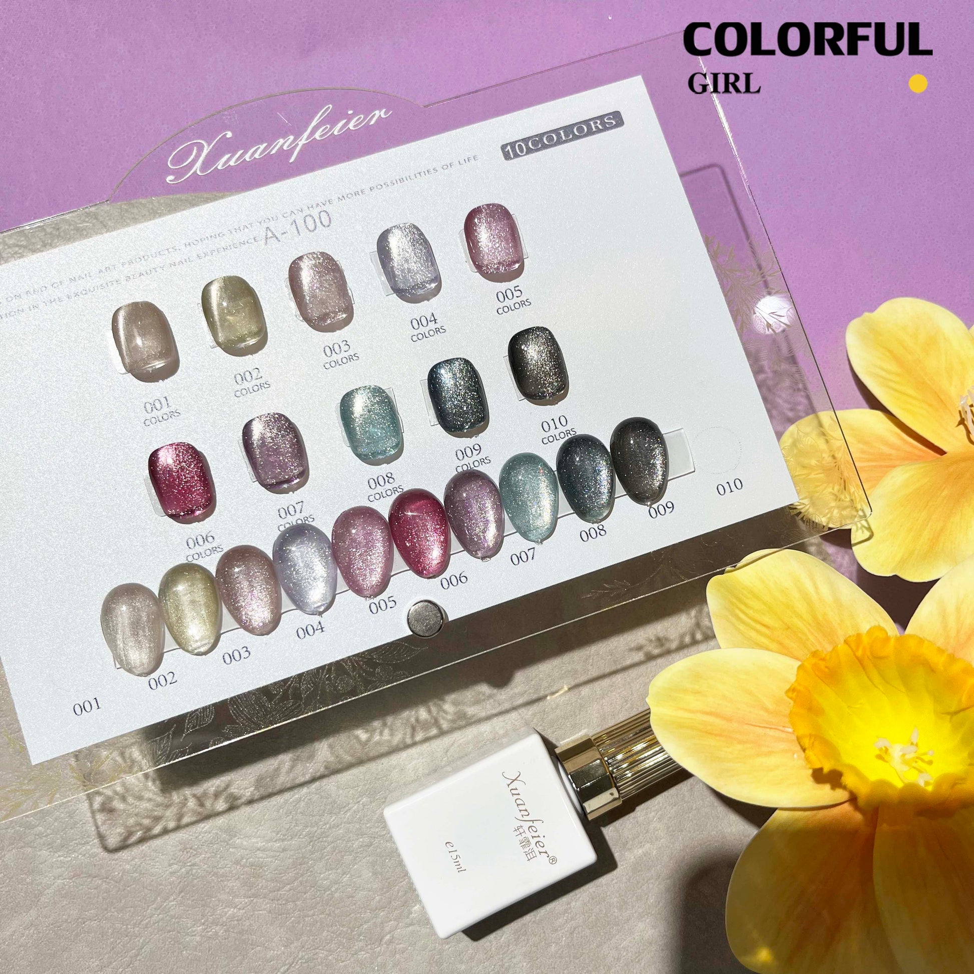 【พร้อมส่ง】Xuanfeier10สี XFE-A100 สีเจลแคทอาย สีลูกแก้ว ฟรีชาร์ทสี Cat eye แม่เหล็ก เอฟเฟกต์มันเงามาก