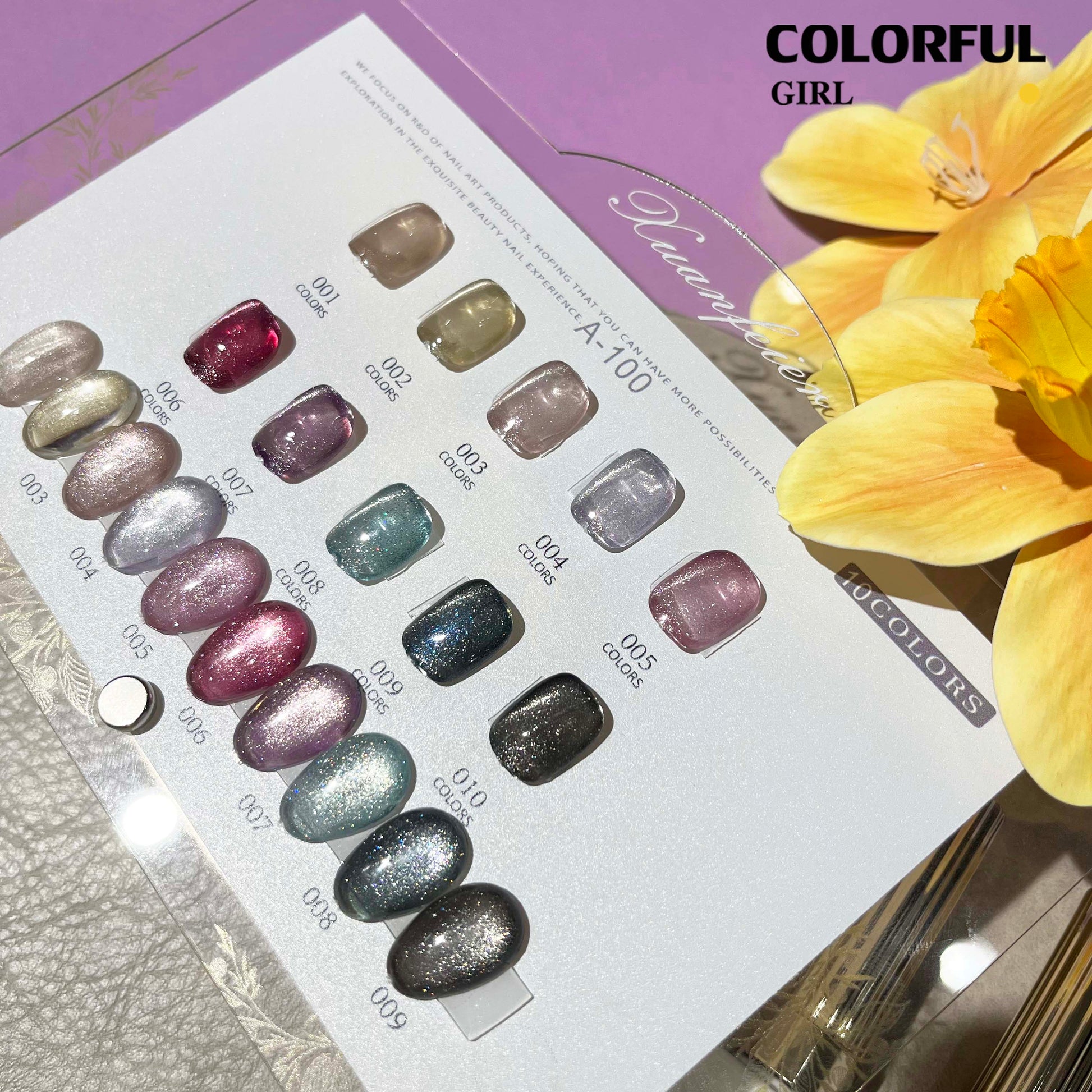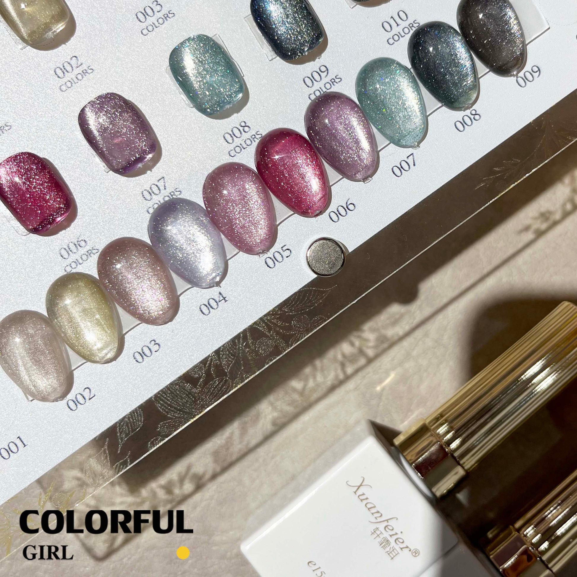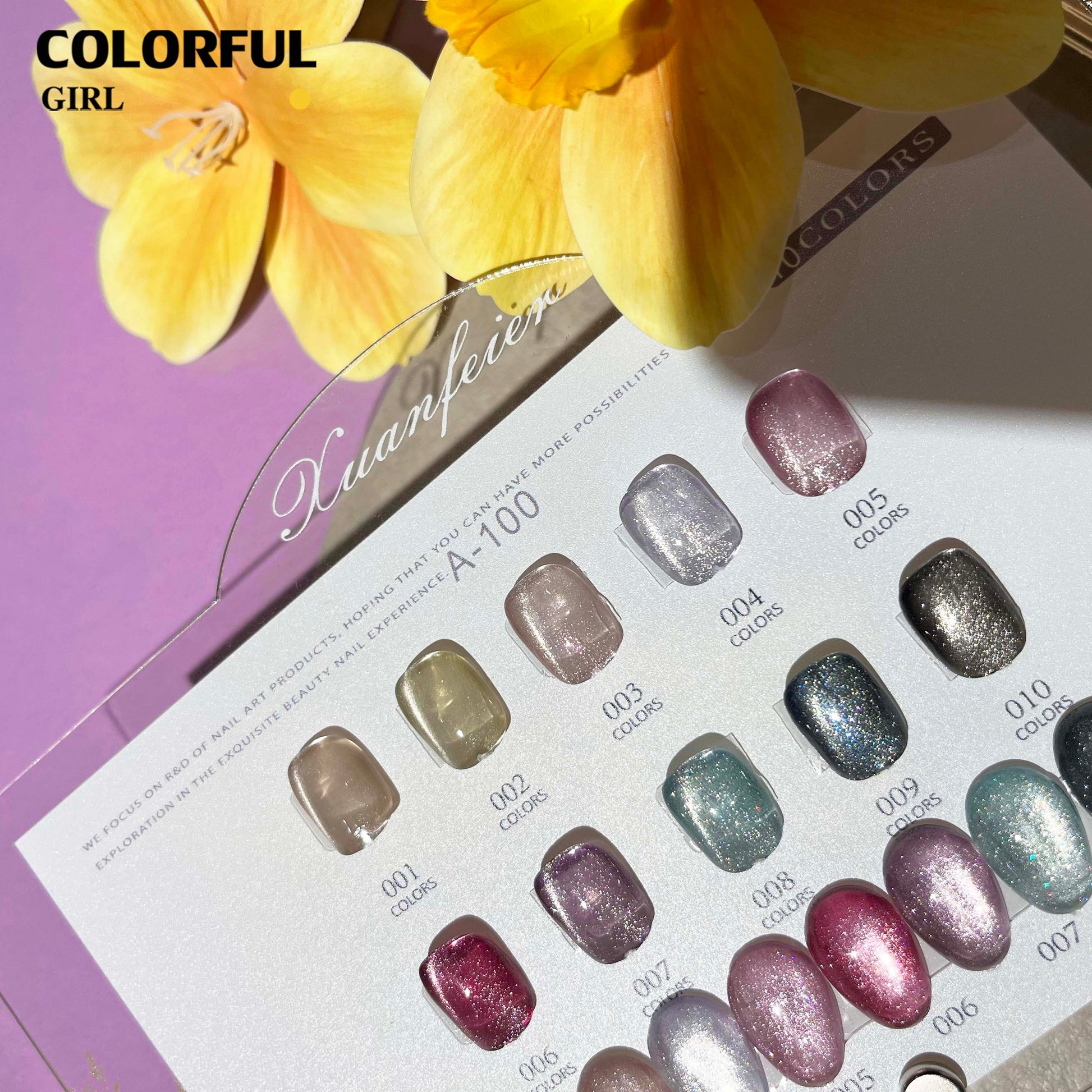 【พร้อมส่ง】Xuanfeier10สี XFE-A100 สีเจลแคทอาย สีลูกแก้ว ฟรีชาร์ทสี Cat eye แม่เหล็ก เอฟเฟกต์มันเงามาก