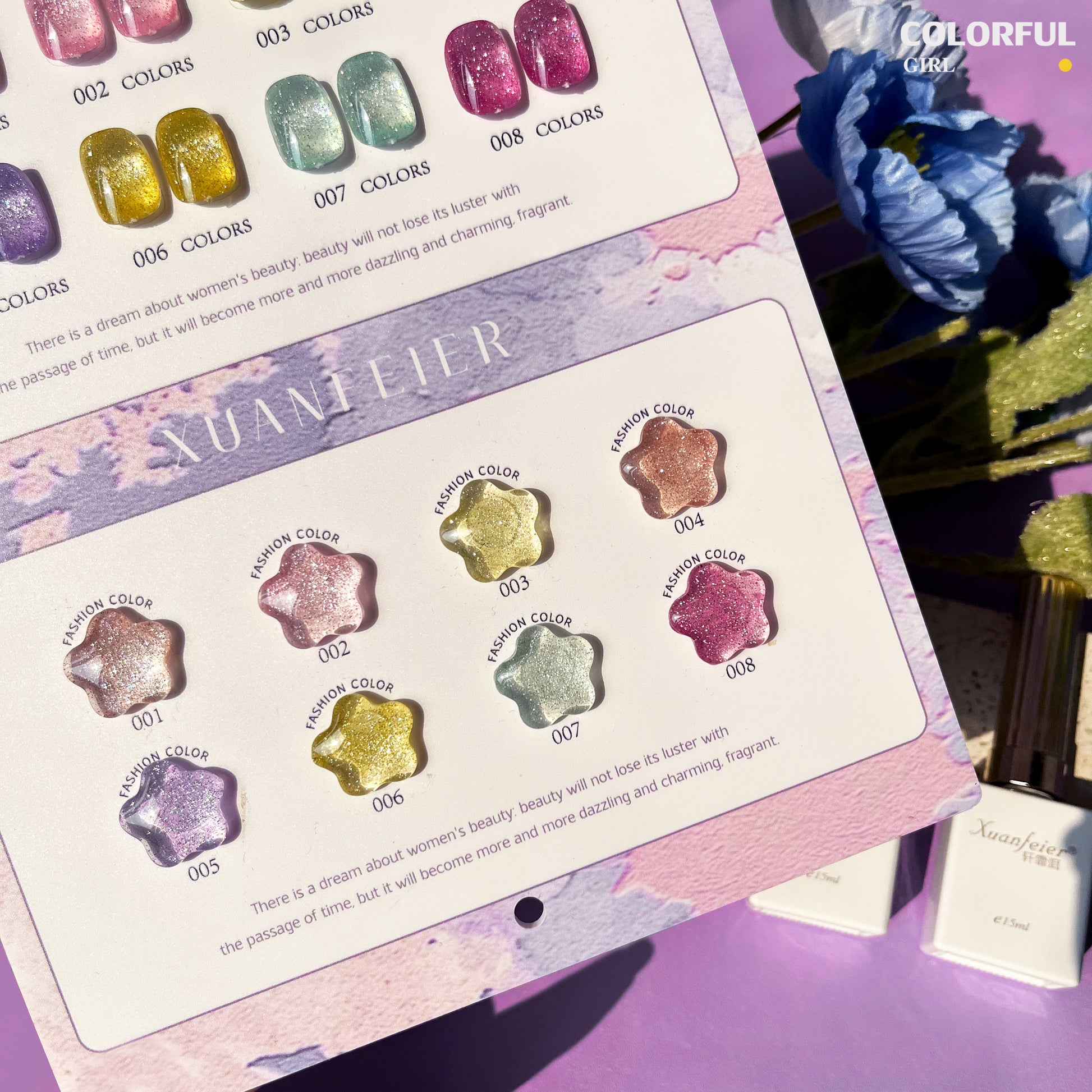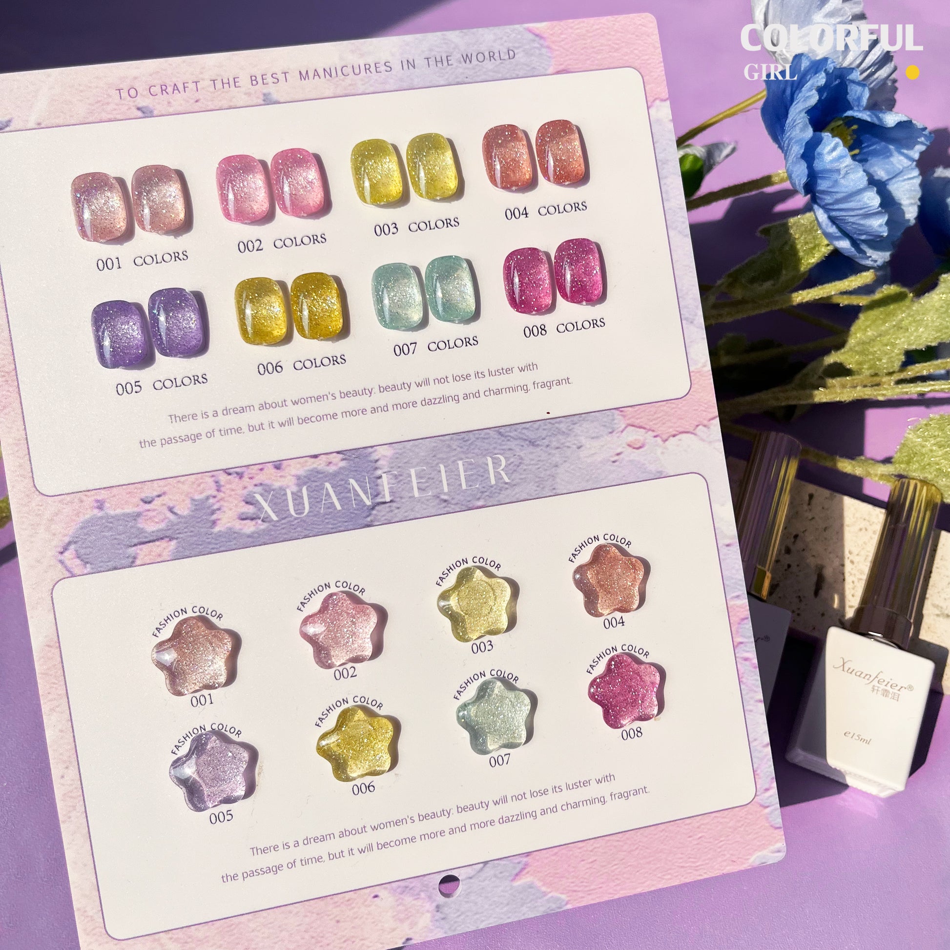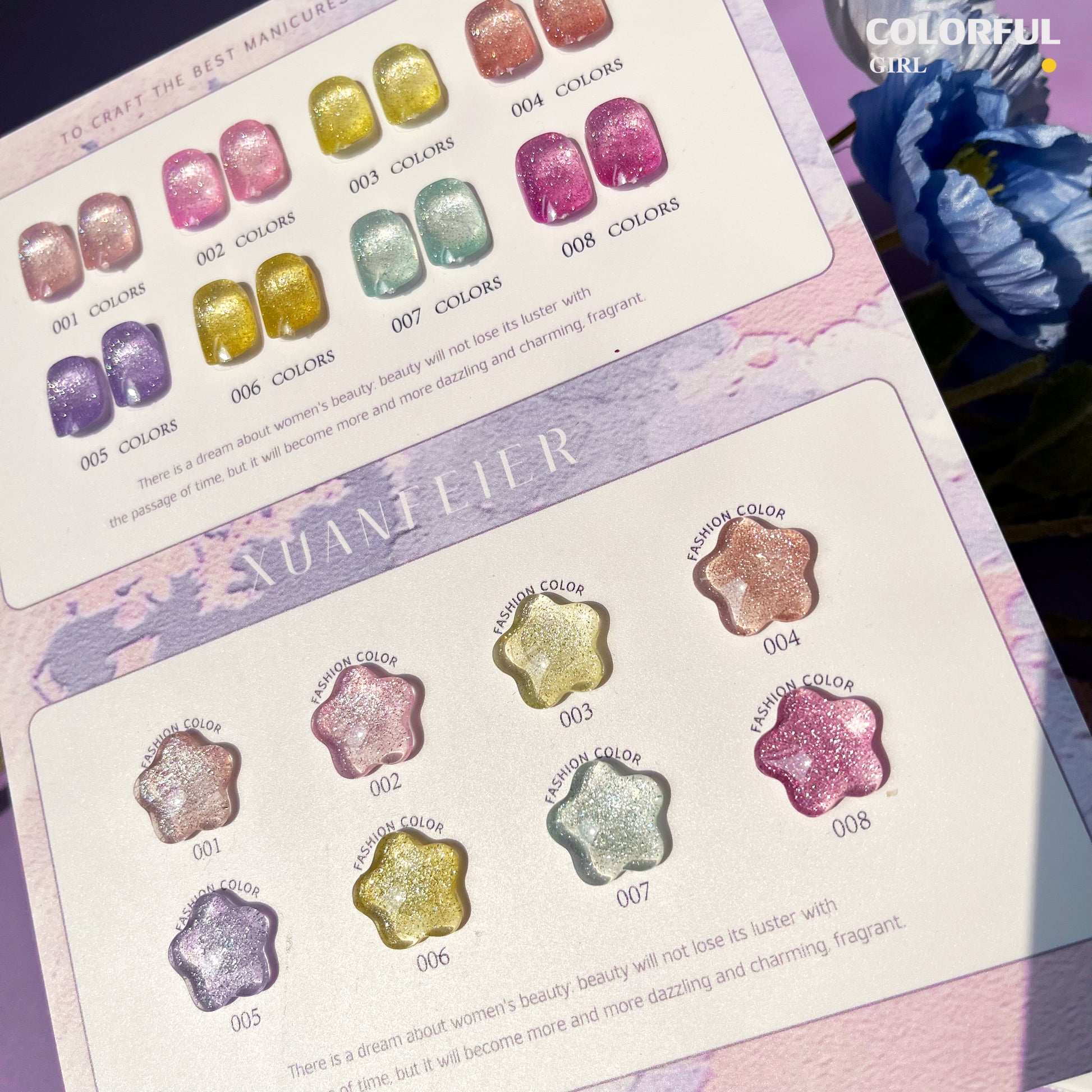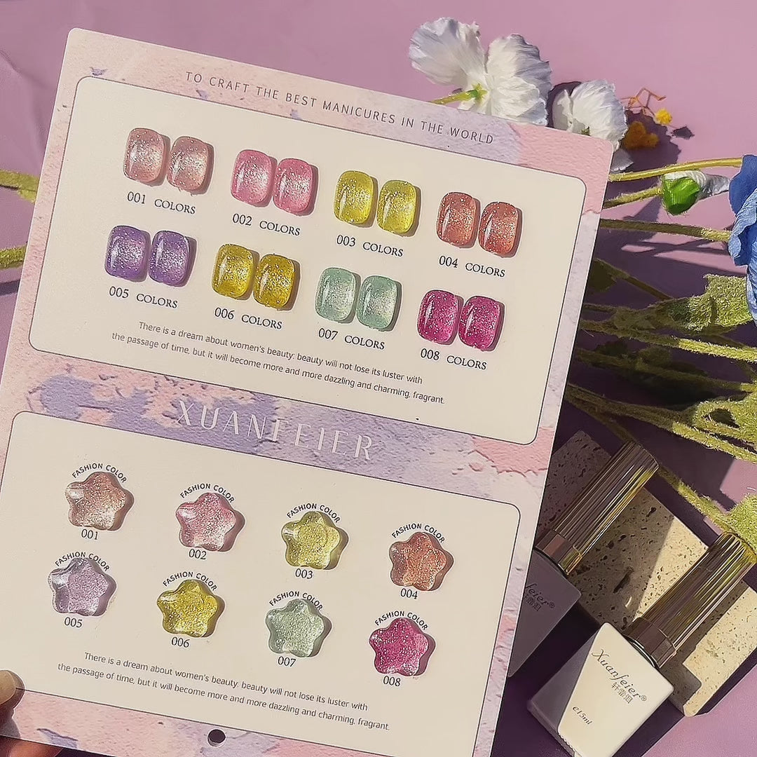 【พร้อมส่ง】Xuanfeier8สี สีเจลแฟลช 8สี แถม ชาร์ทสี(XUANFEIER) ชาร์ตดาวหวานน่ารัก ️😊