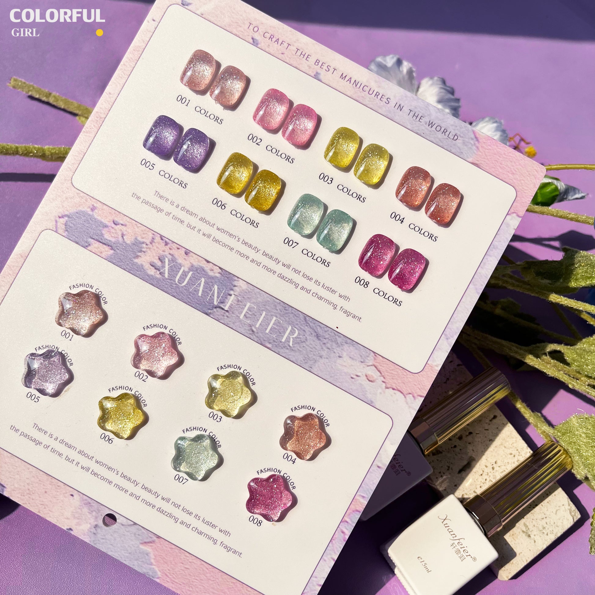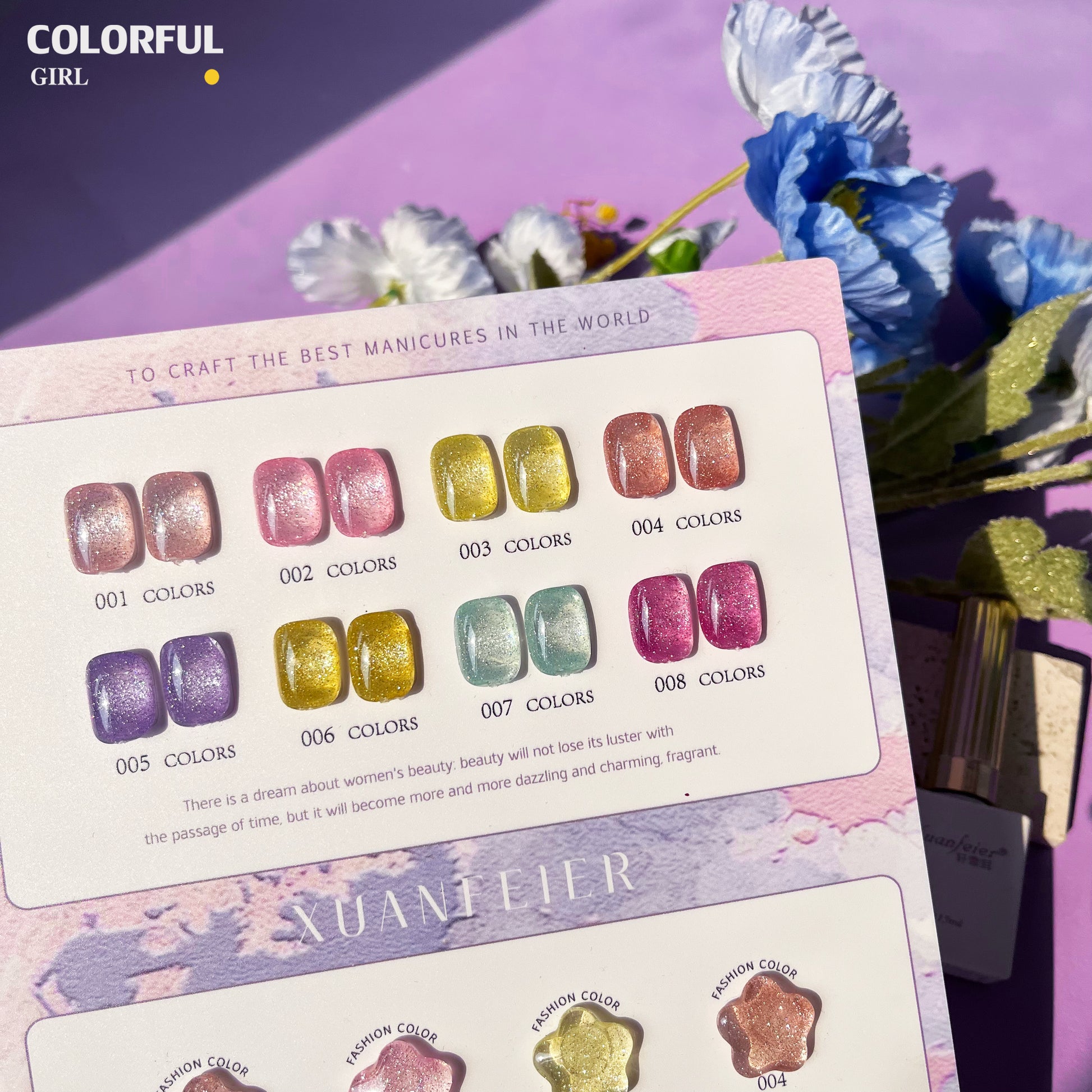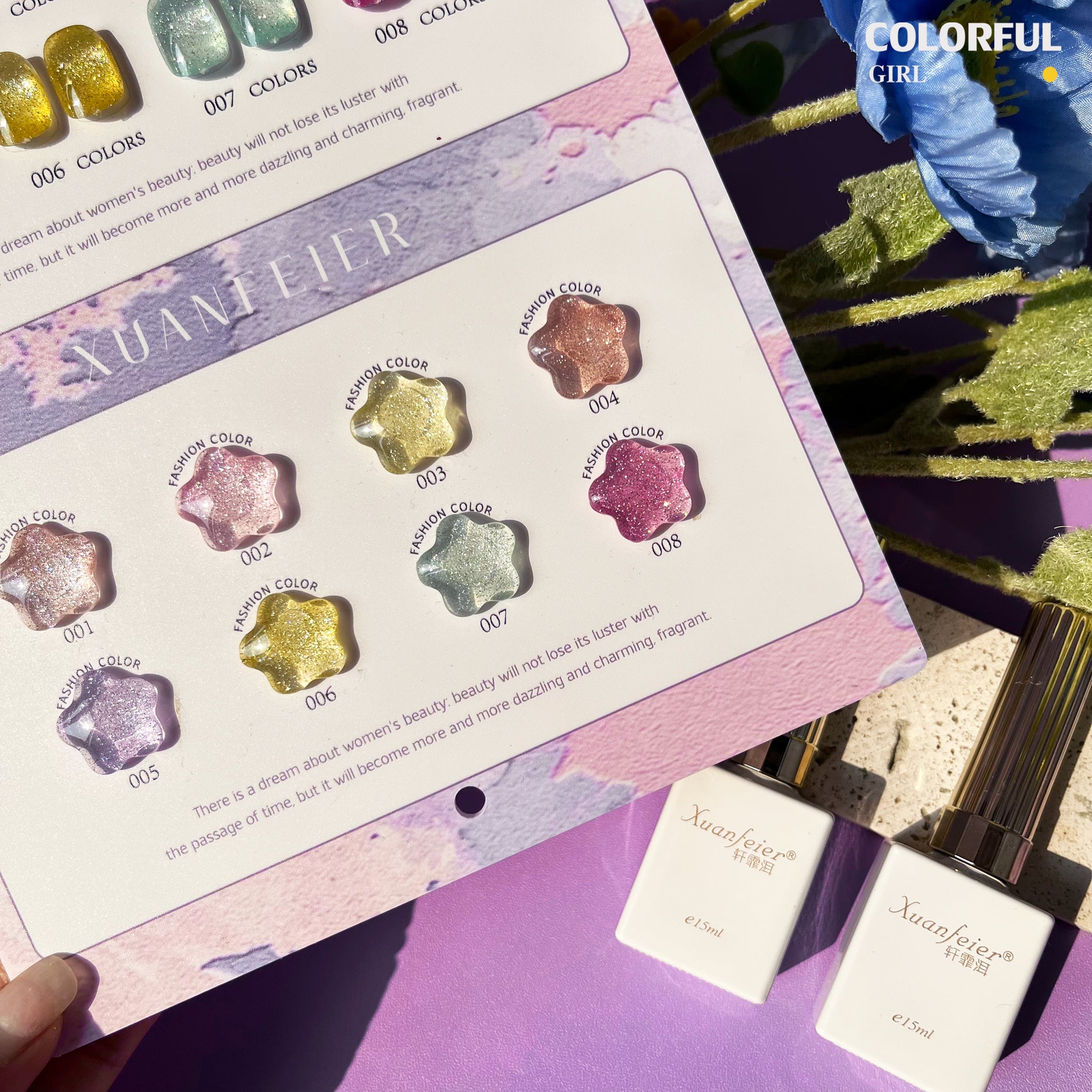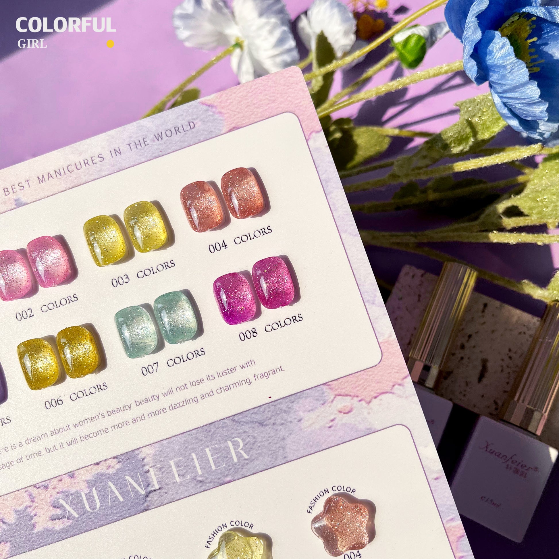 【พร้อมส่ง】Xuanfeier8สี สีเจลแฟลช 8สี แถม ชาร์ทสี(XUANFEIER) ชาร์ตดาวหวานน่ารัก ️😊