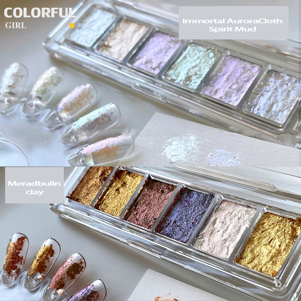 พาเลตตกแต่งเล็บเนื้อมูซ มูส Bu ling Mud 1 พาเลตมี 6 สี พาเลทออโรร่าเนื้อมูส เม็ดสีชัด นวัตกรรมใหม่สำหรับตกแต่งเล็บ
