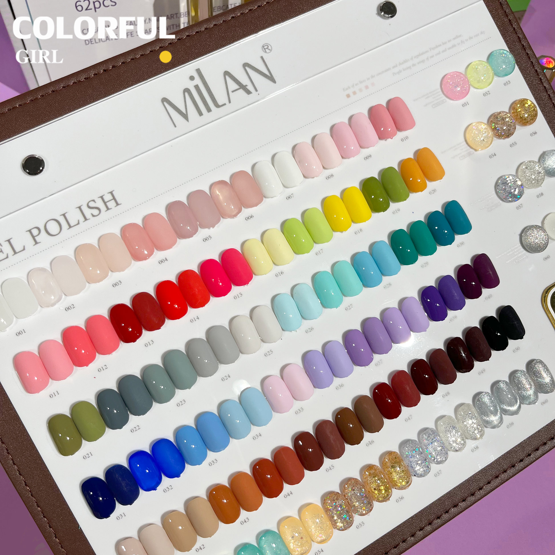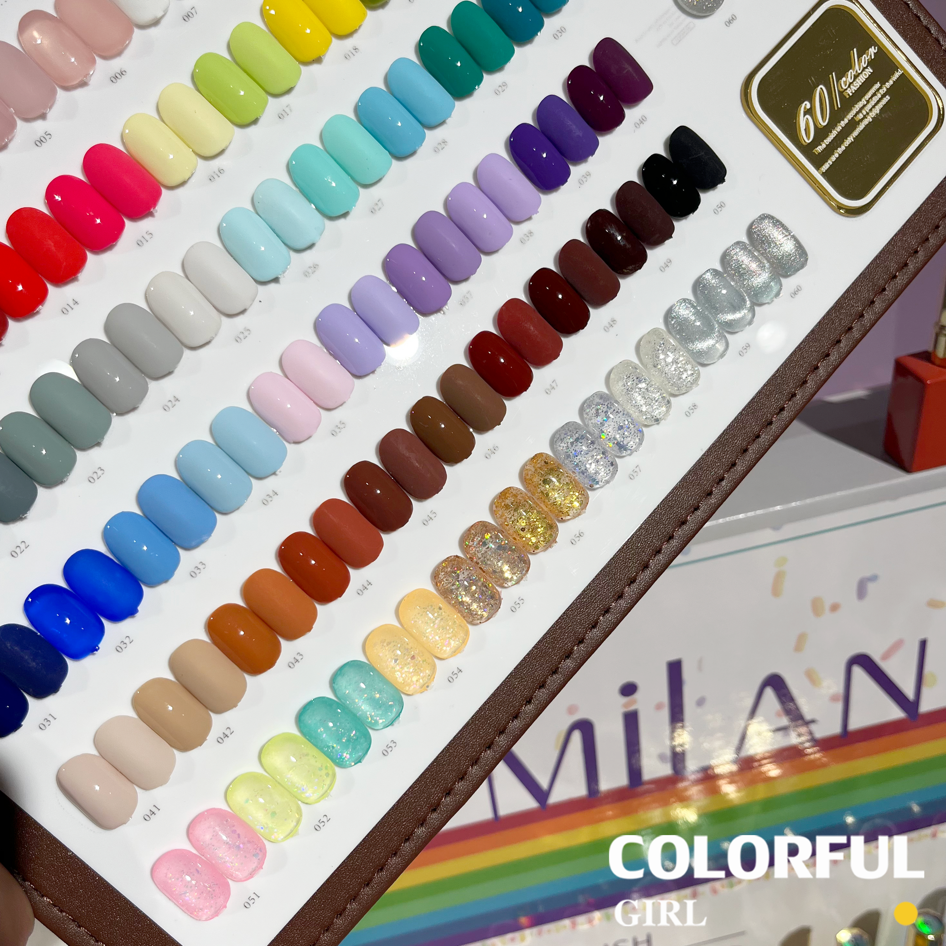 สีเจล Milan 60 สี 1 ชาต( ขนาด 15ml)สีเจลกลิซเตอร์+ สีเจลสีพื้น+ สีเจลไซรัป แถมท็อปกับเบสและชาตสี สีทาเล็บ พร้อมชาร์ทโชว์ ขวดสีเดียวกับสี