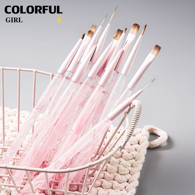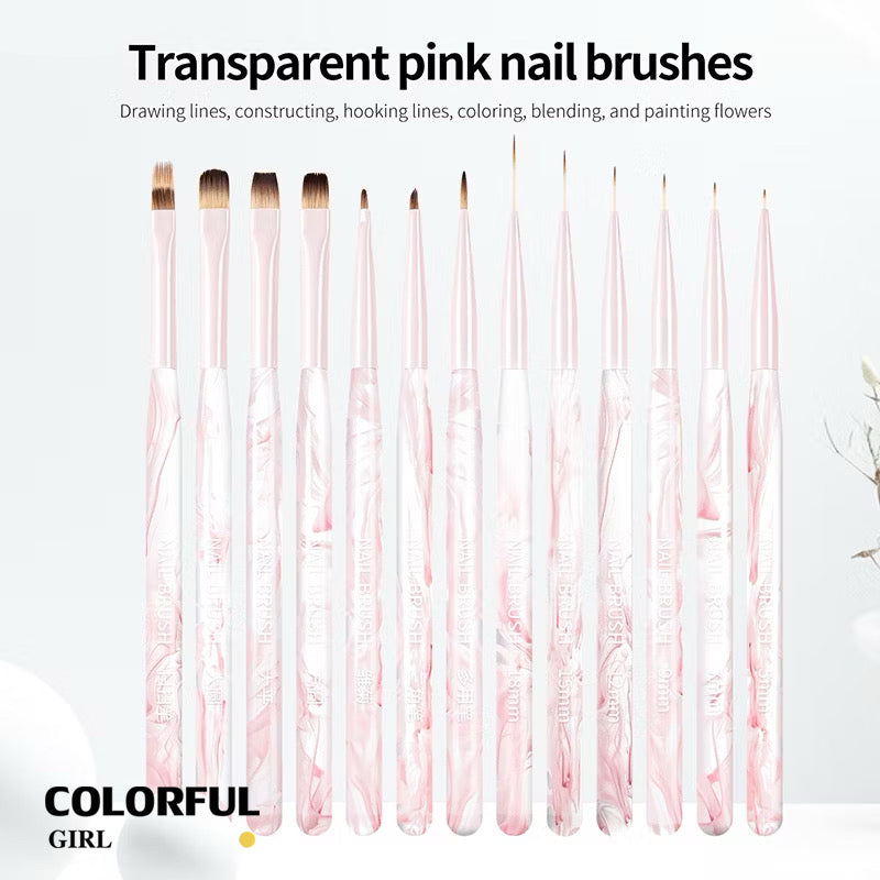 อะคริลิคเล็บแปรง 13 สไตล์ให้เลือก แปรงเล็บแปรงอะคริลิค Uv Gel Extension แปรงเล็บเครื่องมือ พู่กันไล่สี สําหรับตกแต่งเล็บ พร้อมฝาปิด