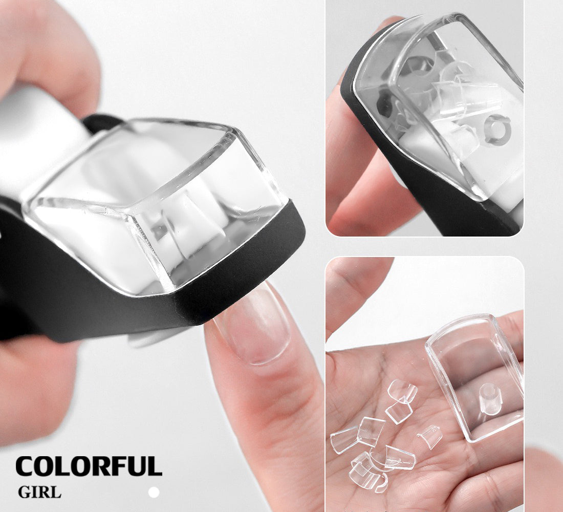 ✨พร้อมส่ง✨กรรไกรตัดเล็บปลอม สเตนเลส รูปตัว U สไตล์ฝรั่งเศส สําหรับตกแต่งเล็บ กรรไกรตัดเล็บปลอม มีกล่องเก็บเศษเล็บ วัดขนาดเล็บได้